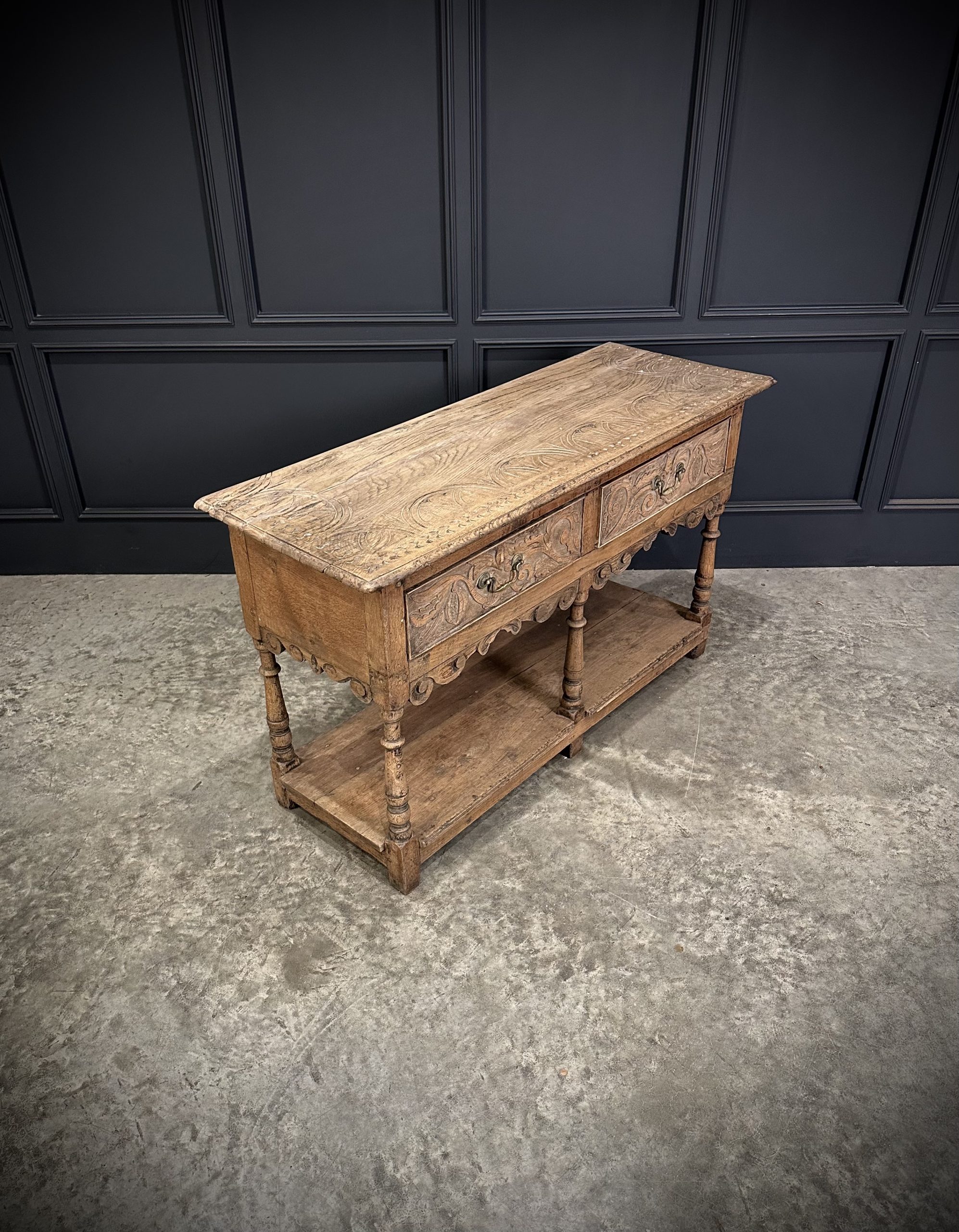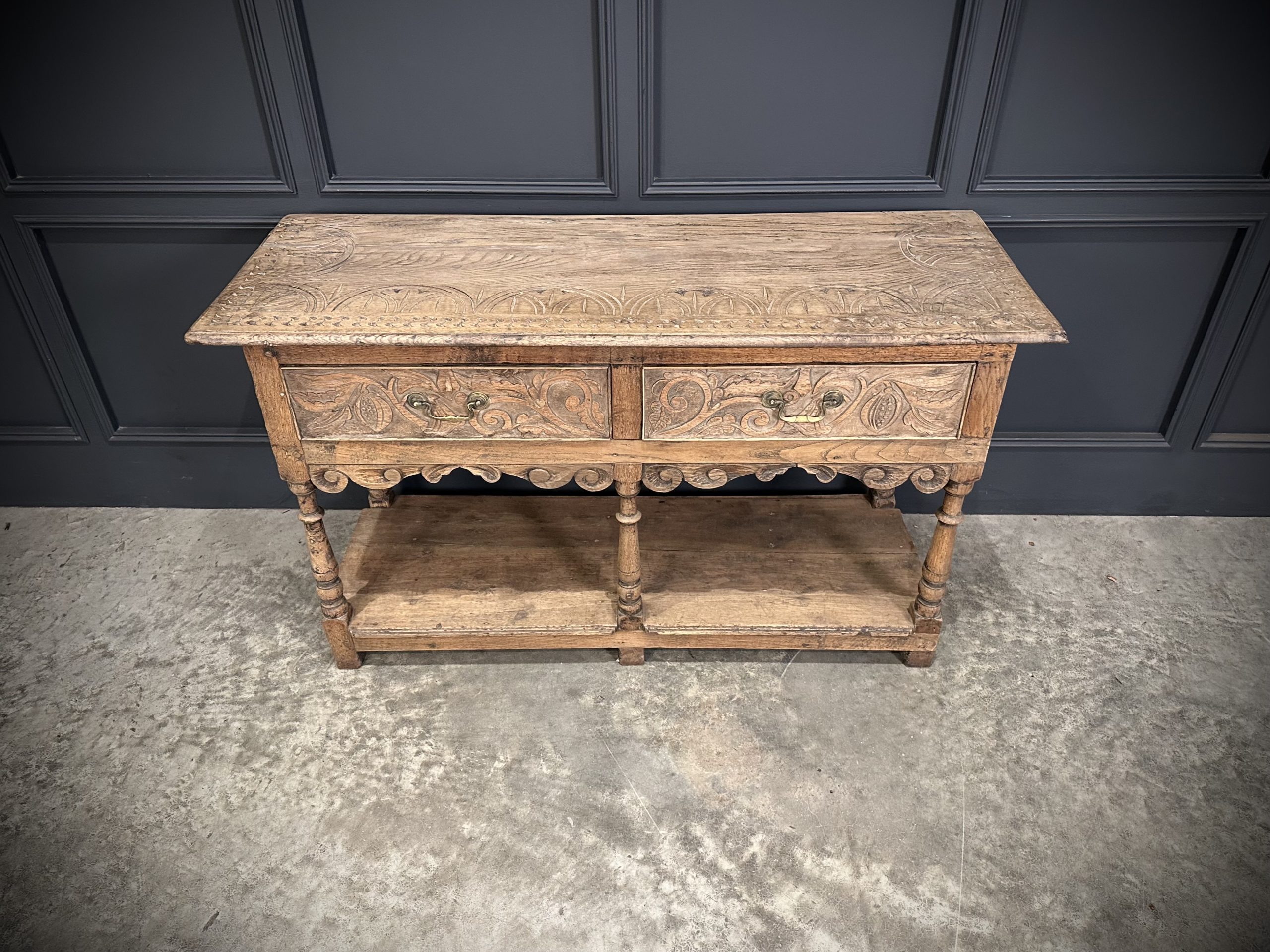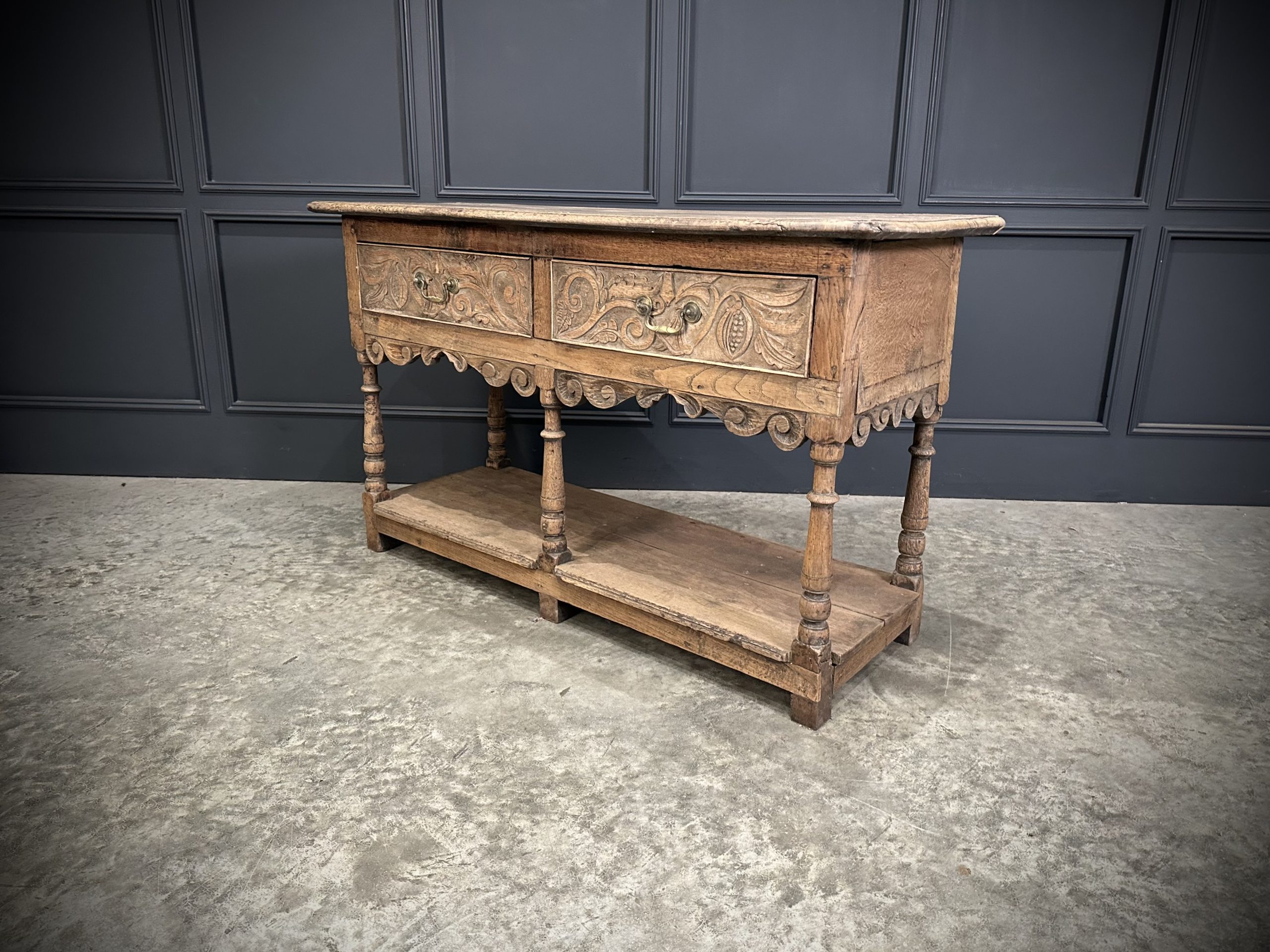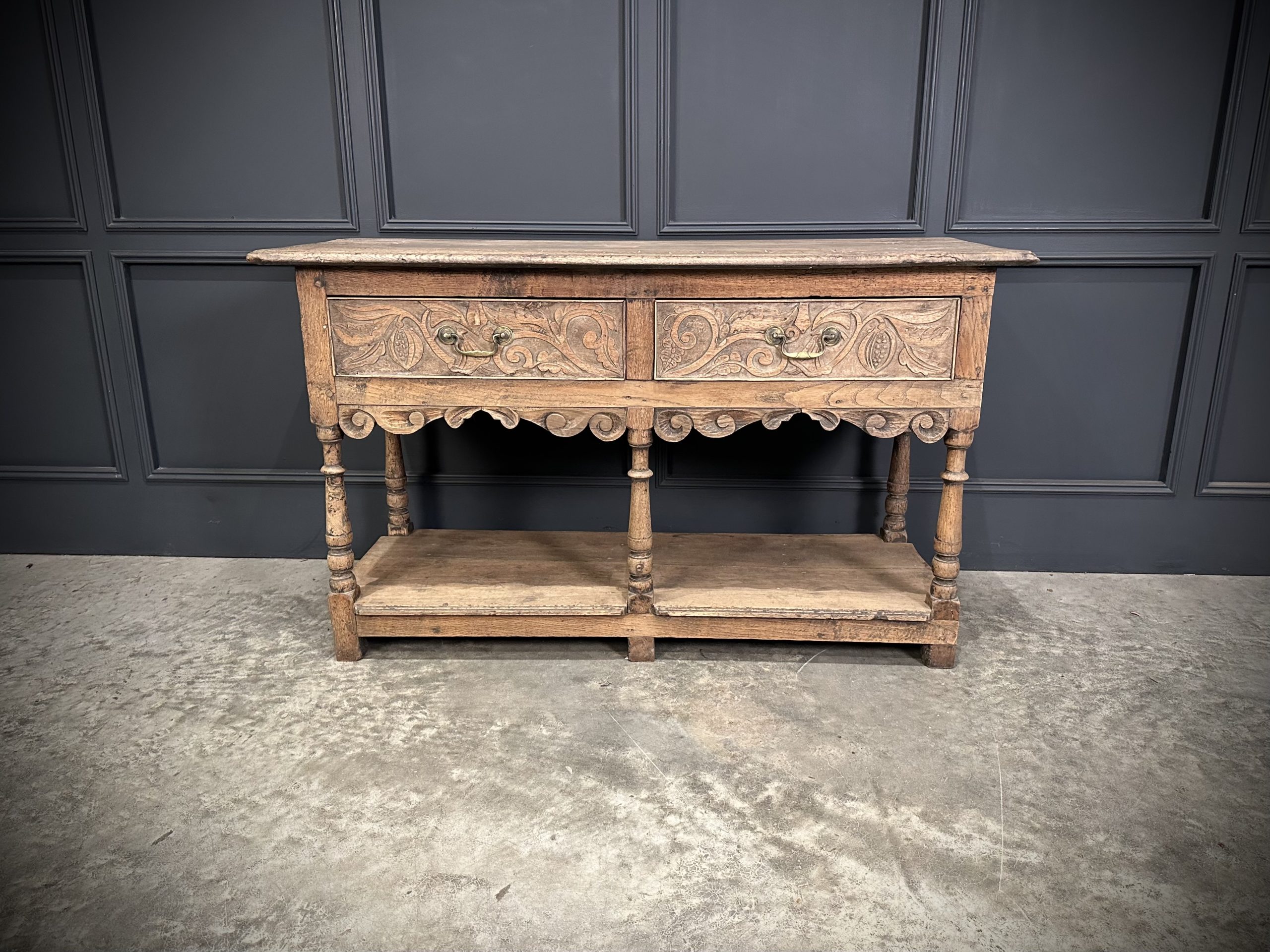 An attractive 18th century carved oak potboard dresser, circa 1740.