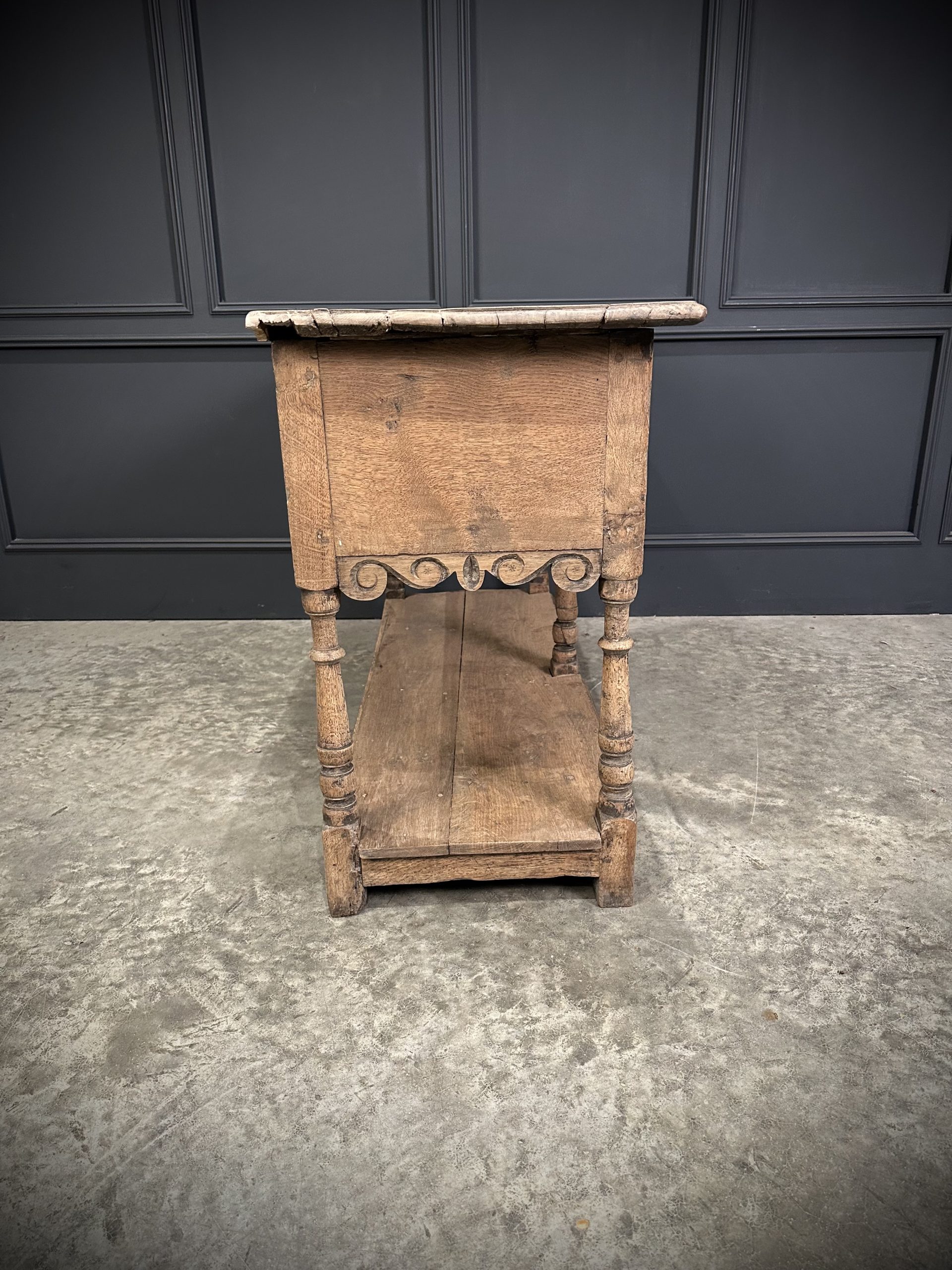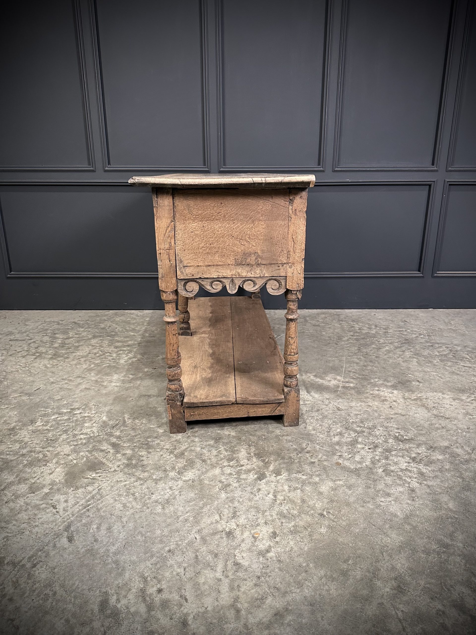 Crafted in solid oak and later bleached to enhance its natural grain and texture, this piece displays a warm, timeworn patina consistent with its age.