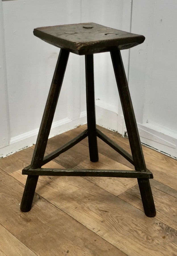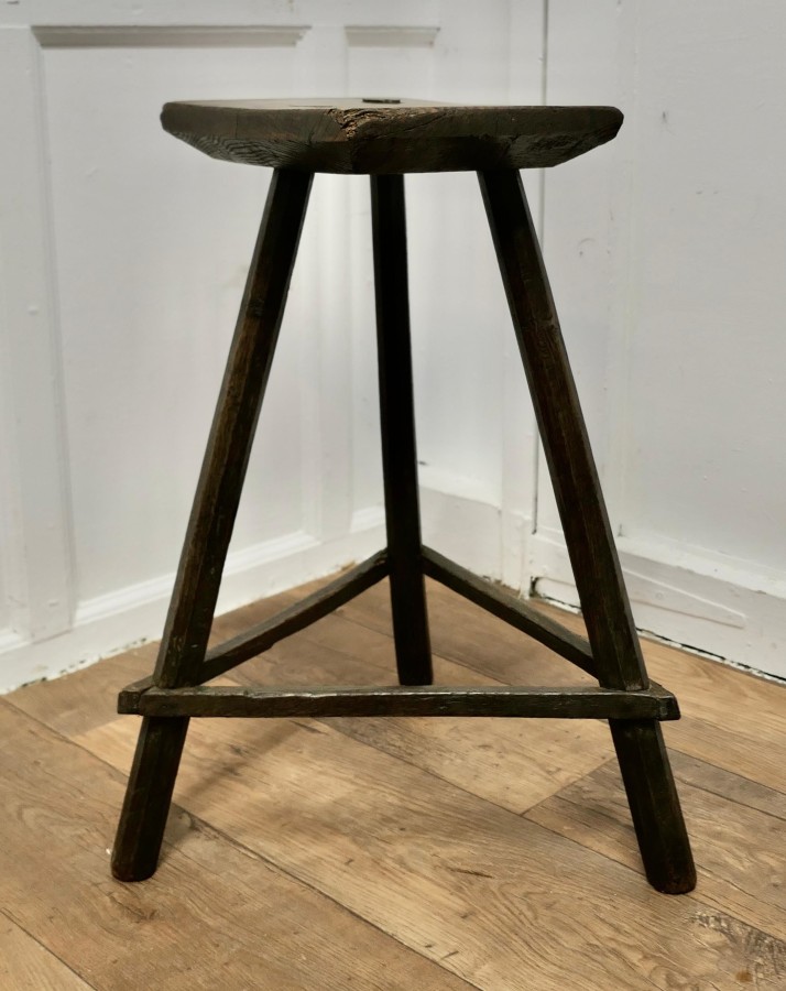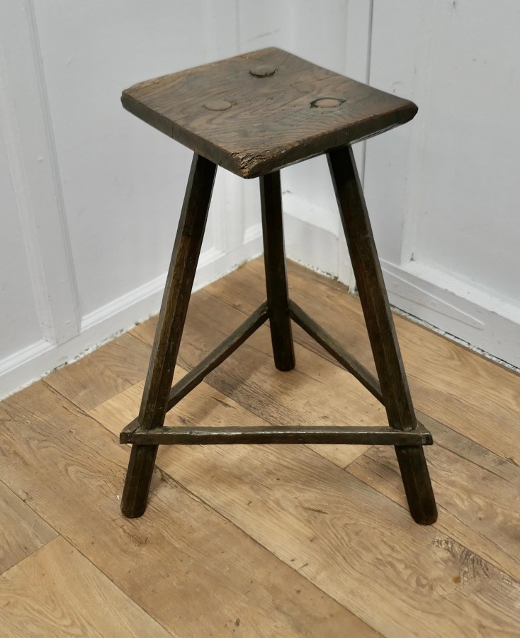 19th Century Ash and Elm Cricket Table Stool This is a very rare country piece, the stool is made in ash and elm, the seat is made from a solid slice of the tree you can see by the grain and the legs have faceted sides. The Stool is a very sturdy piece probably due to the unusual reinforced structure around the base The stool is in very sound condition with an aged patina The stool is 24.5” tall, 11” square seat and 15” across at the feet VY160 Manufacture Date : 1870 Materials : Elm