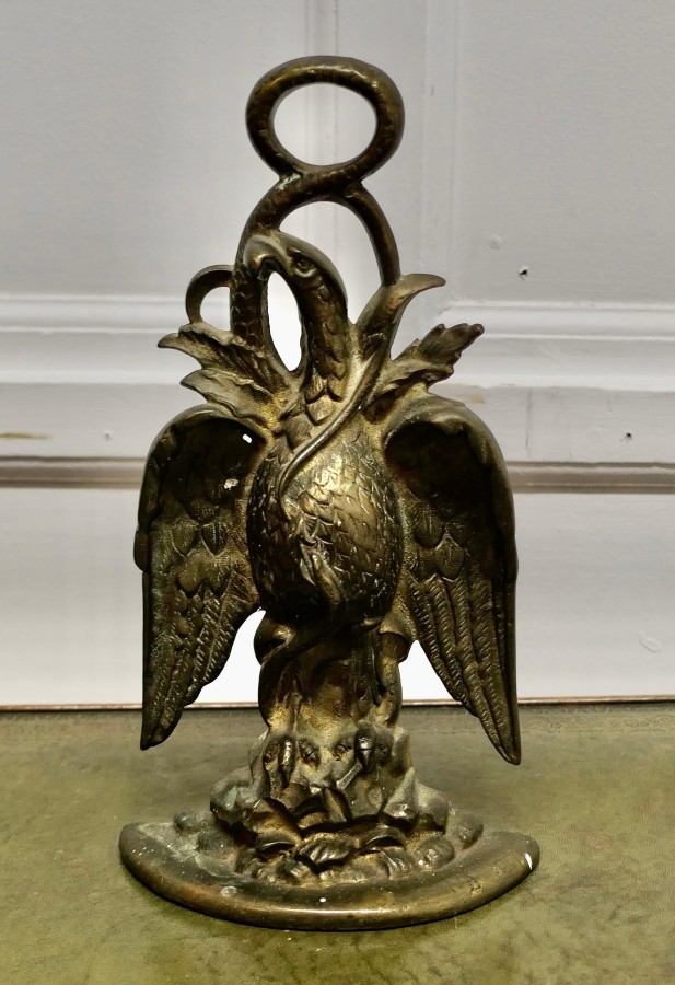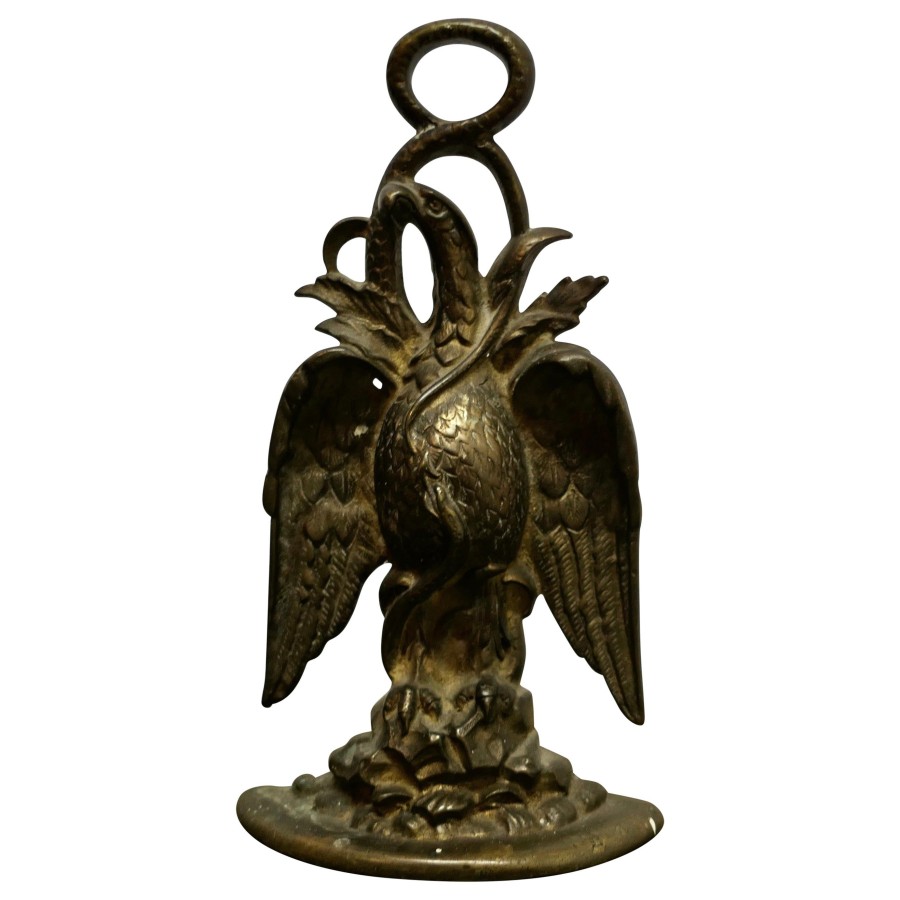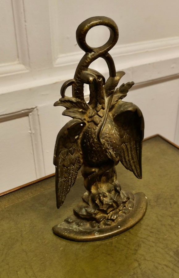 19th Century Eagle %26 Serpent Brass Door Stop Needless to say a heavy piece, is age darkened, the Eagle and snake fighting symbolise two sides of a conflict At the top the handle of the Door Porter is formed by the body of the snake, All in good sound contain with an aged patina The stop is 13” high, 8” wide and 3” deep VY198 Manufacture Date : 19th Century Materials : Brass