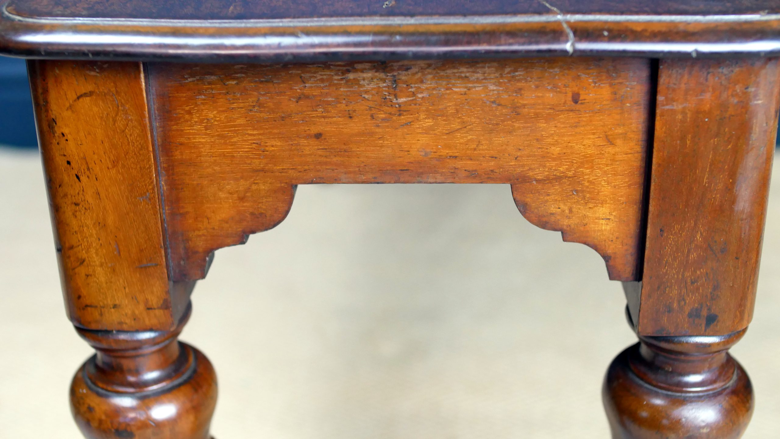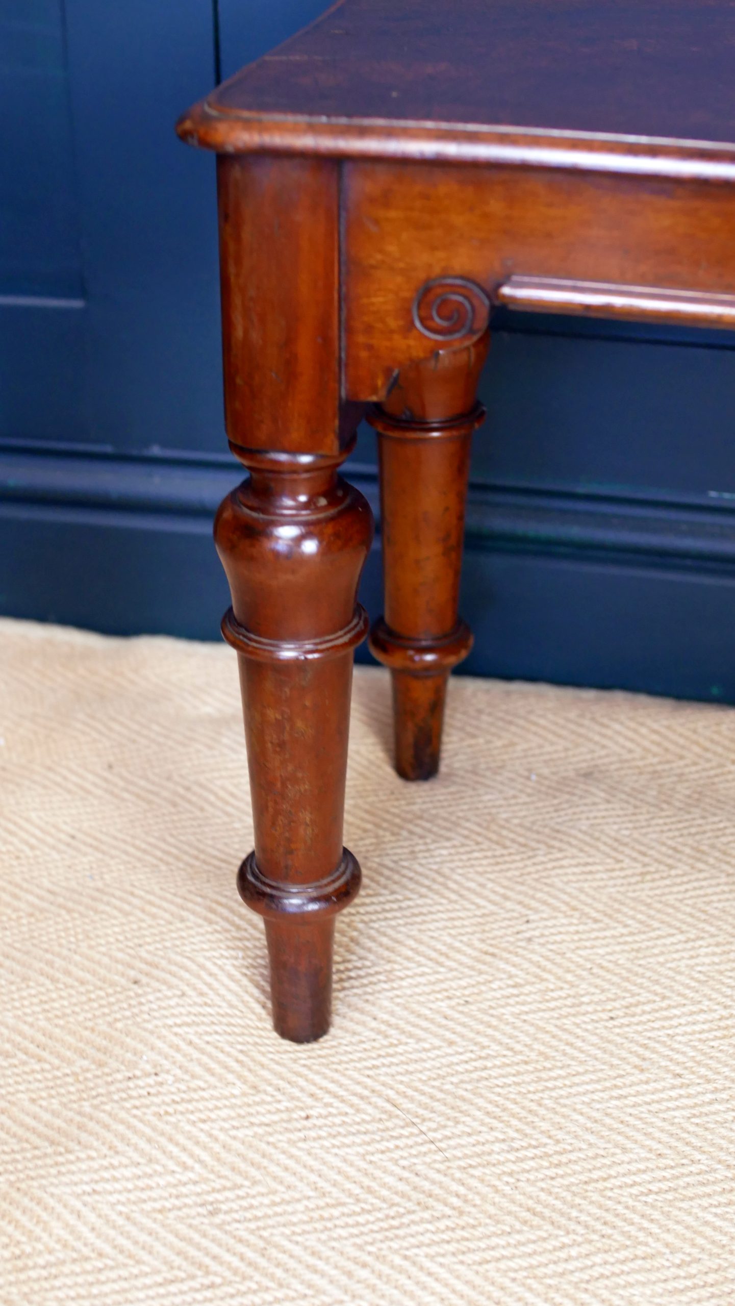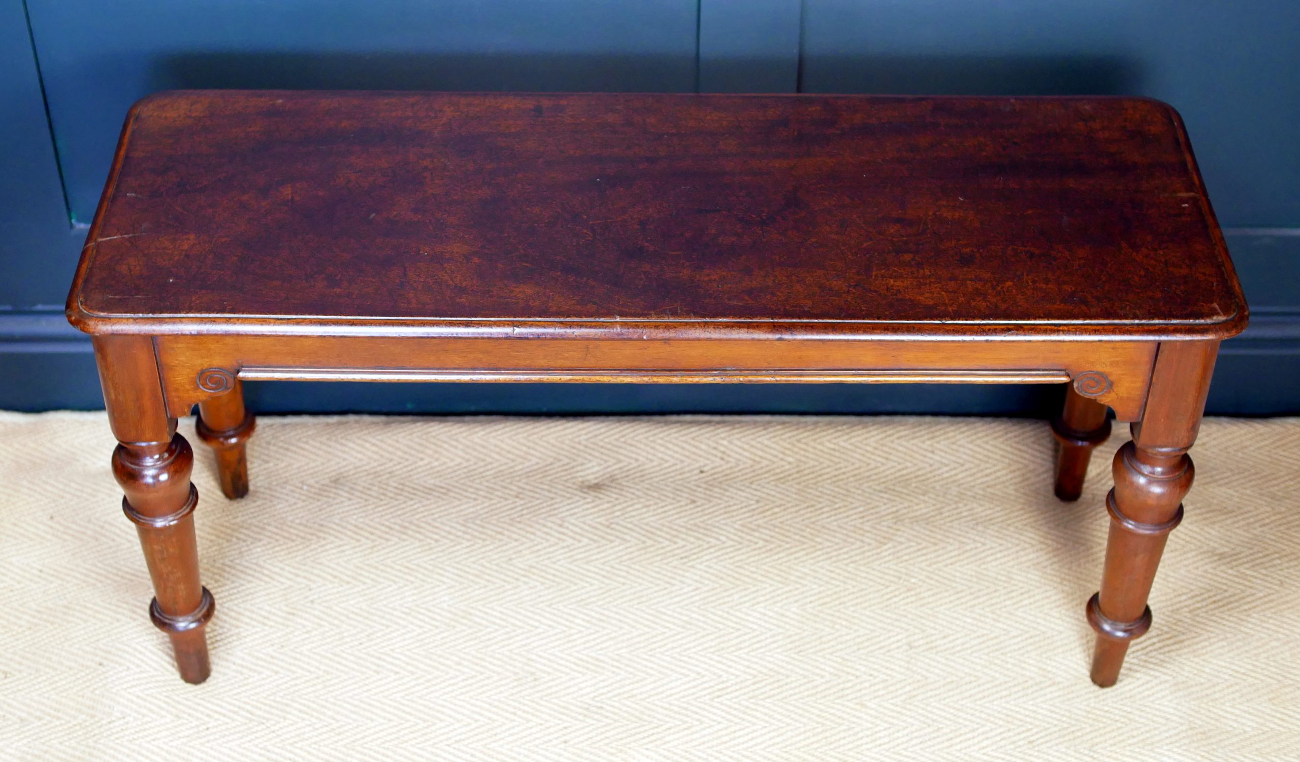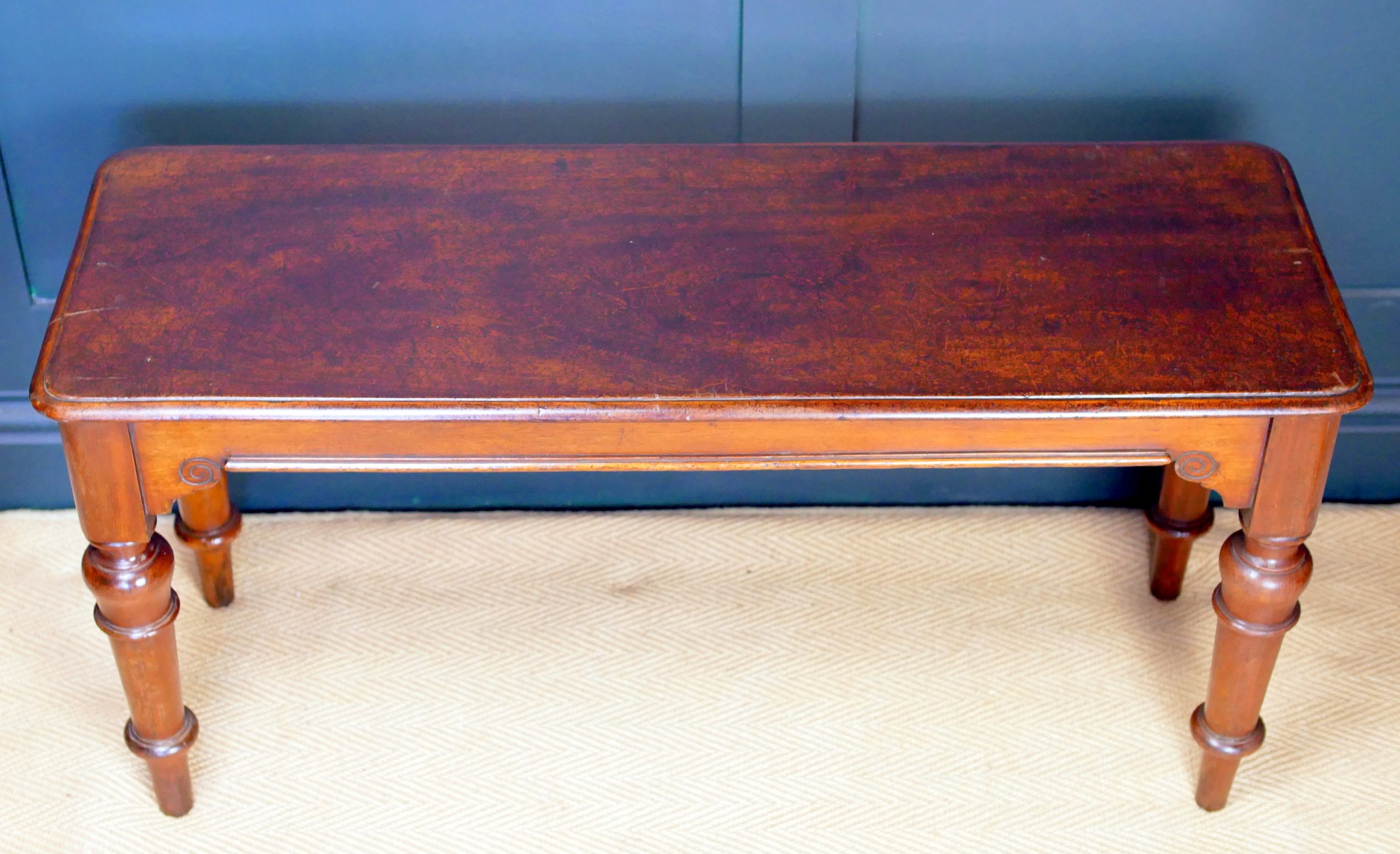 Masterful Turned Legs: The bench stands on beautiful, hand-turned legs featuring classic bolster detailing—a signature look of the period that offers both incredible structural integrity and visual poise.