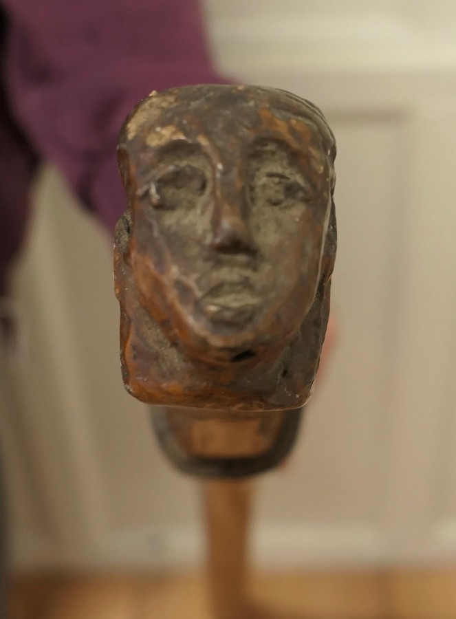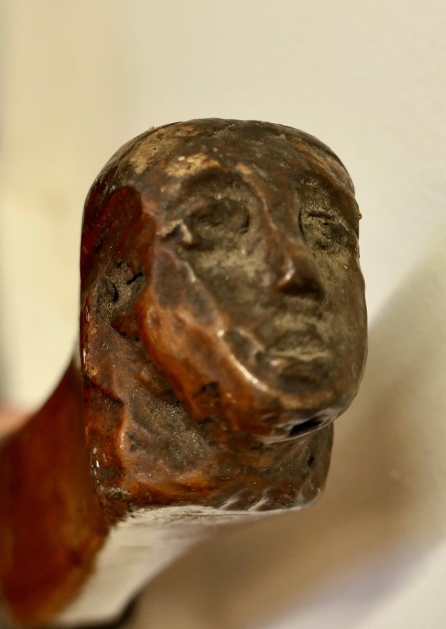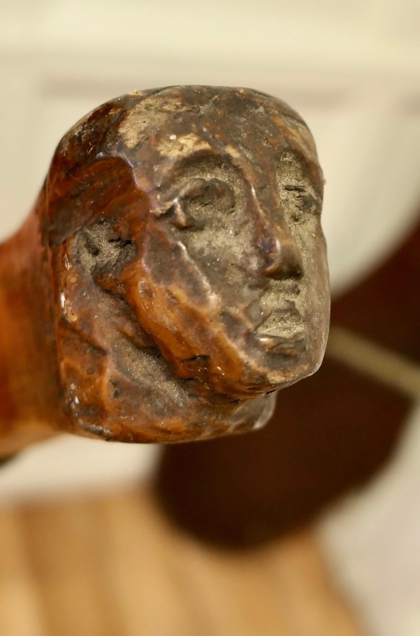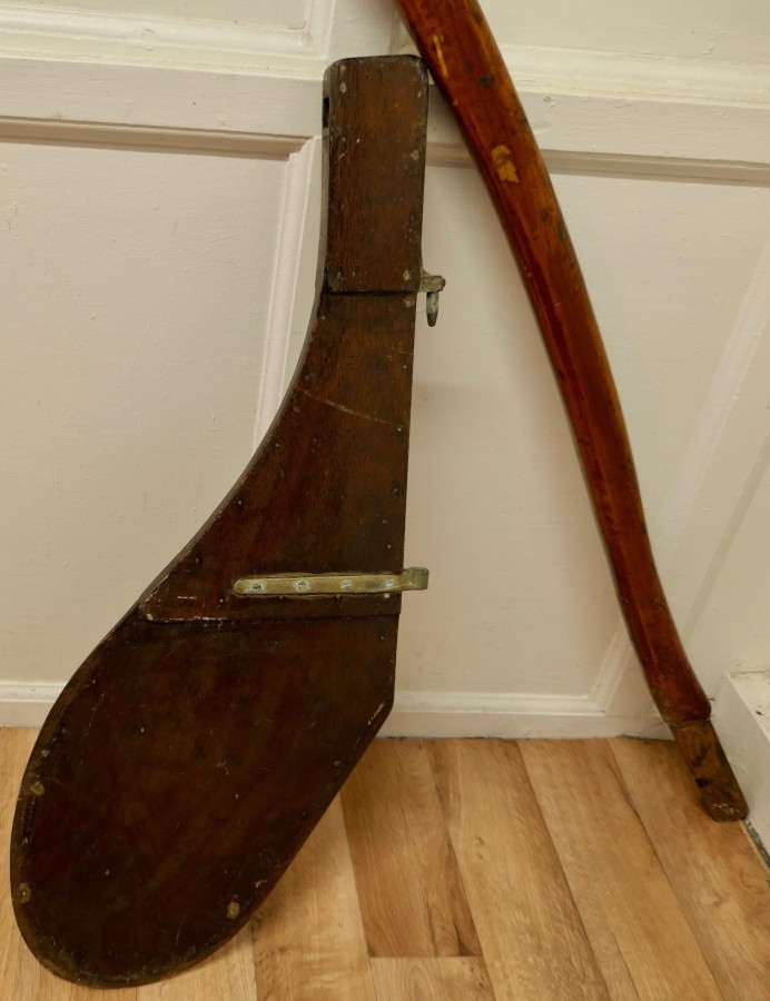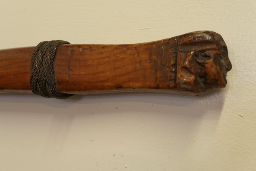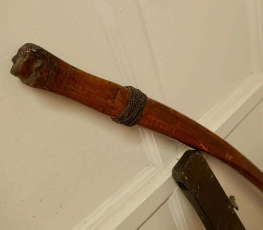19th Century Yacht Rudder and Carved Tiller The rudder is a good decorative piece as is the tiller which has a figure head carved on the end with a decorative rope binding The Tiller is made in 3” Ash, it is 50” long WD92. Manufacture Date : 1880 Materials : Ash