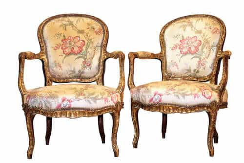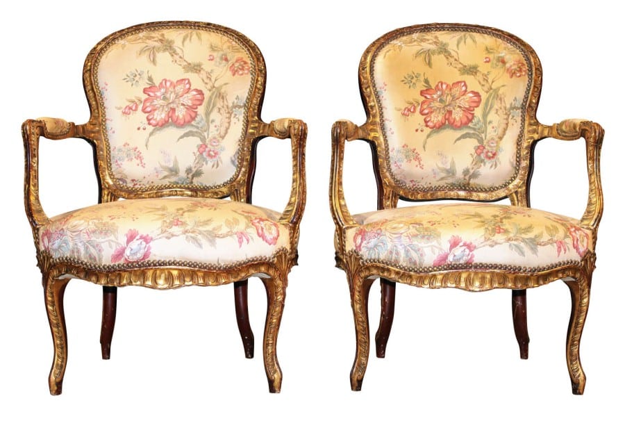 A pair of 19thc French arm chairs with pretty floral upholstery