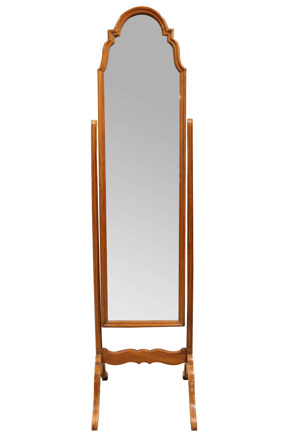 Well-proportioned and visually light, the mirror would make a versatile addition to a bedroom, dressing room, or hallway, providing both function and period character. Its free-standing form allows it to be positioned flexibly within an interior, while the warm tone of the timber frame complements a wide range of decorative schemes, from classic to more eclectic settings.