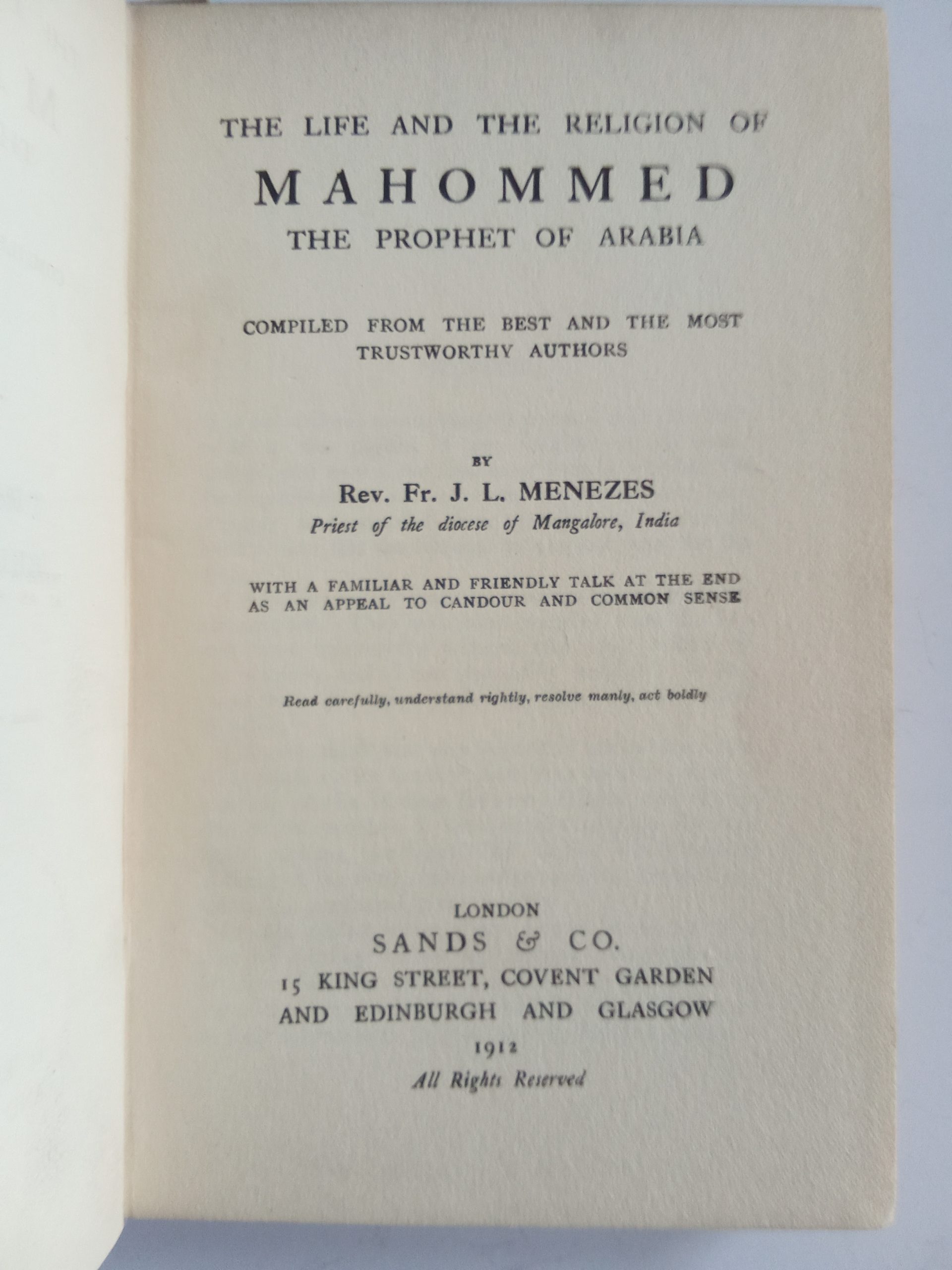 Rev. J. L. Menezes, London 1912.