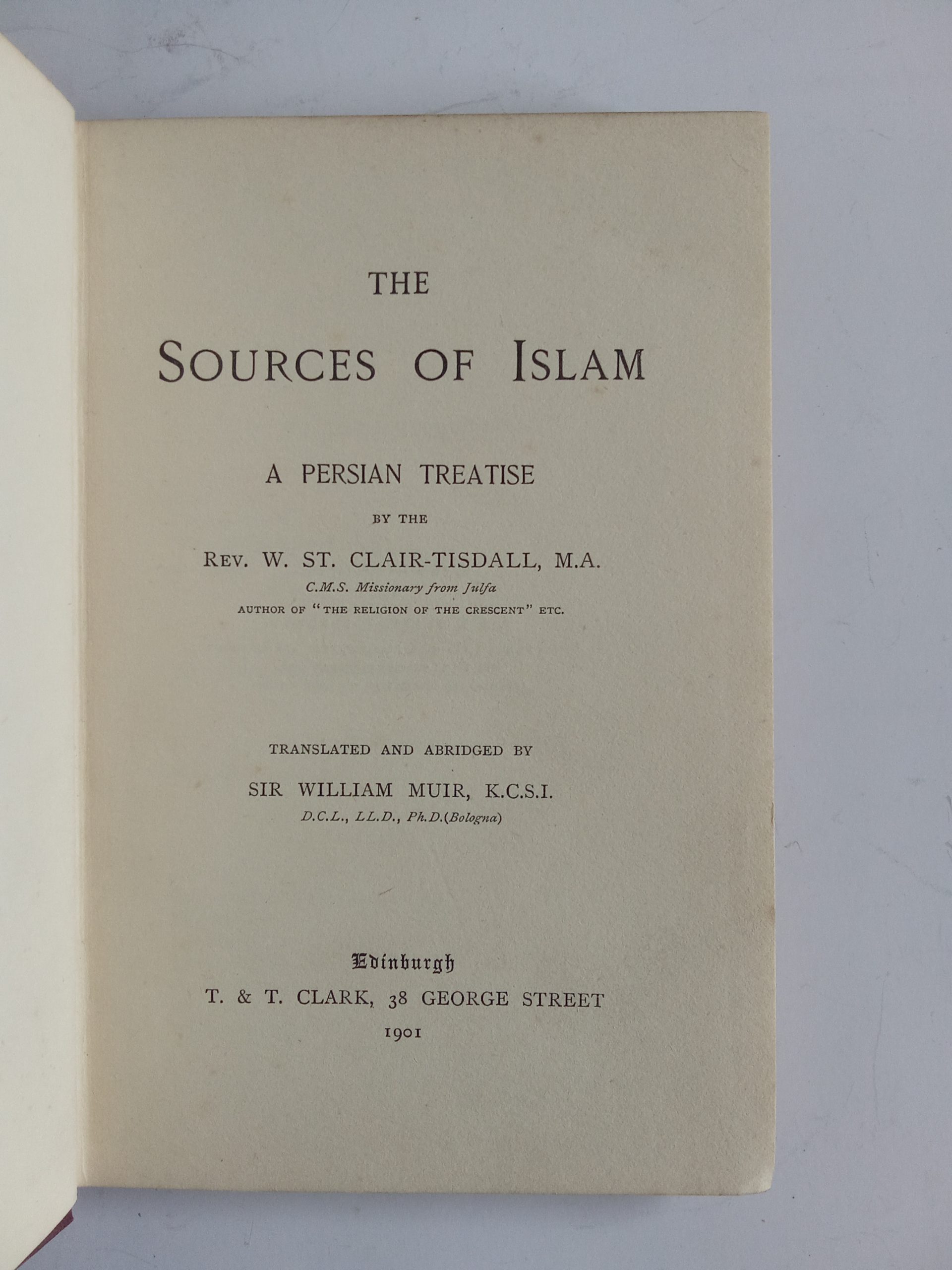 by W. St. Clair-Tisdall, translated and abridged by Sir William Muir