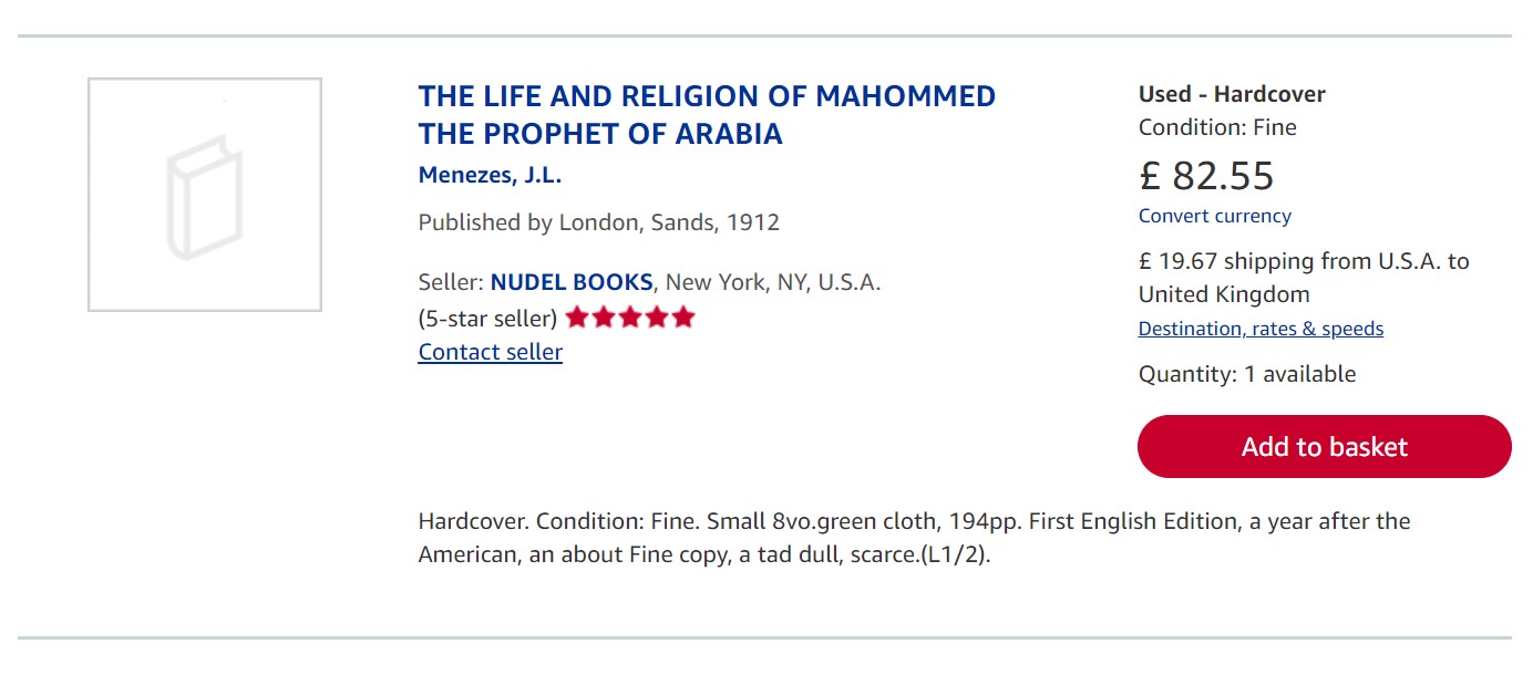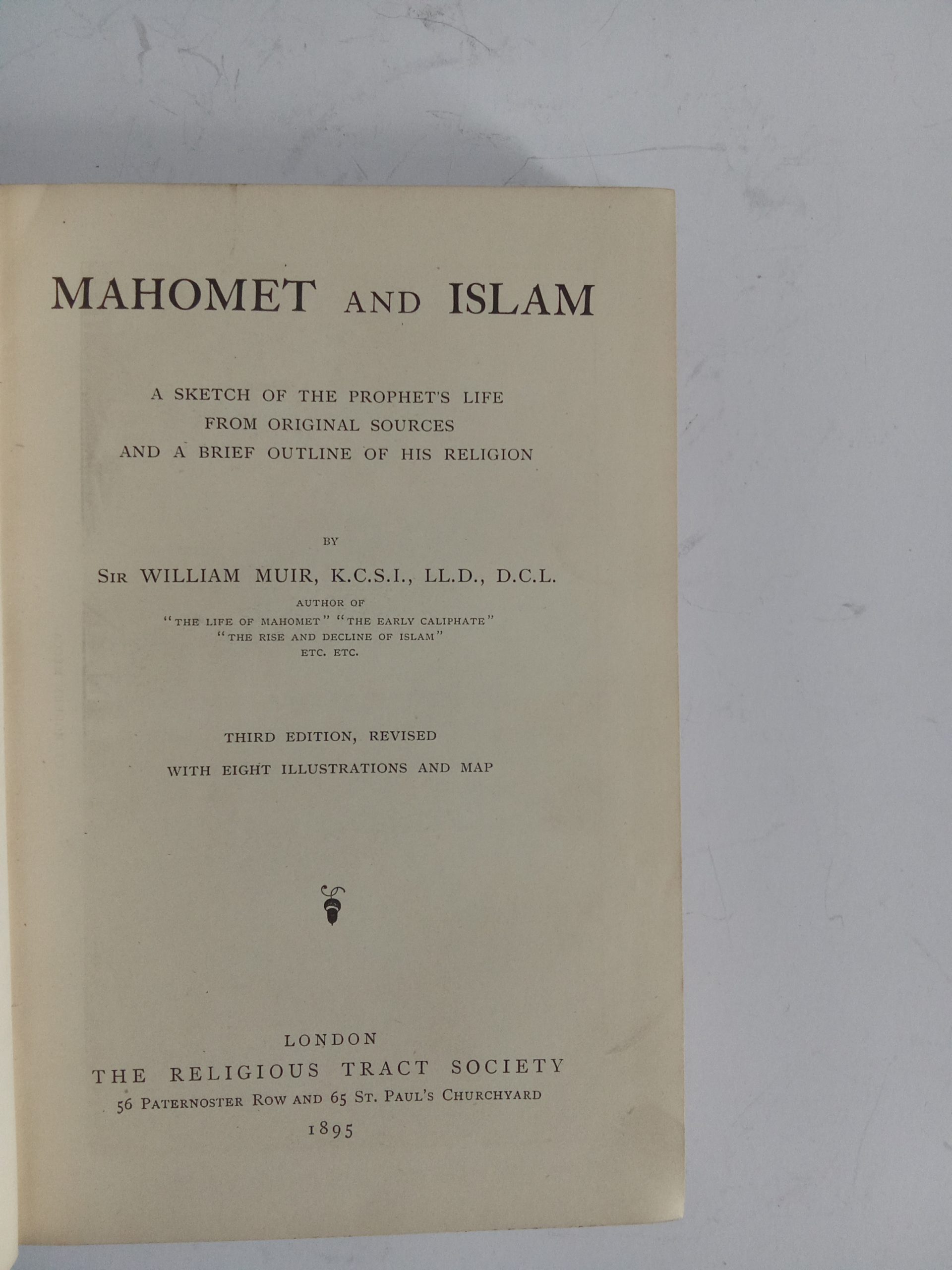 (1) “Mahomet and Islam: A Sketch of the Prophet’s Life from Original Sources and a Brief and a Brief Outline of His Religion”