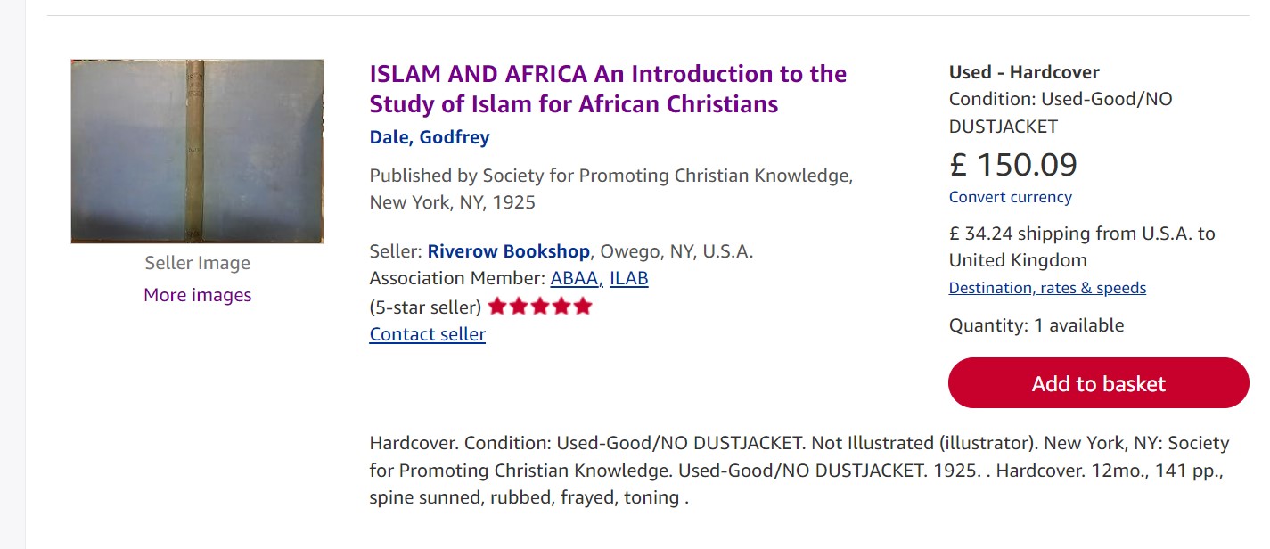 This book is a very rare 100 year old book and was written by Godfrey Dale who was Canon of Christ Church Cathedral in Zanzibar.