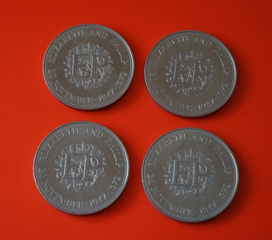 4 x QUEEN ELIZABETH AND PRINCE PHILIP SILVER WEDDING COMMEMORATIVE SILVER CROWN – 5 Shillings