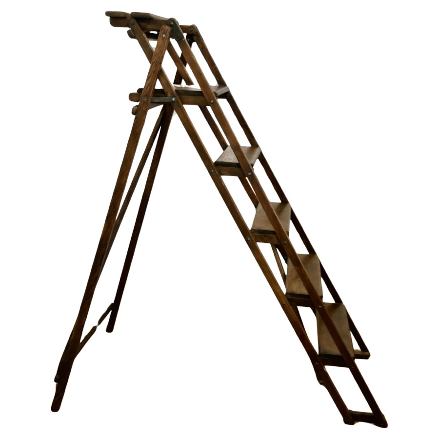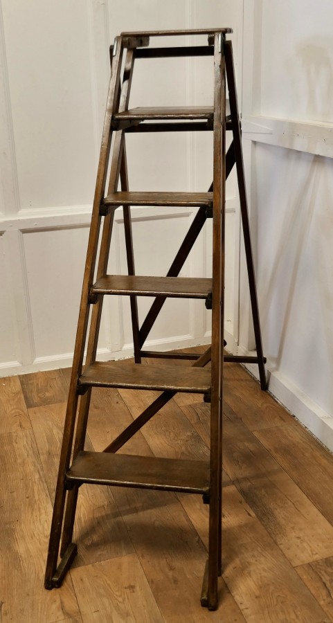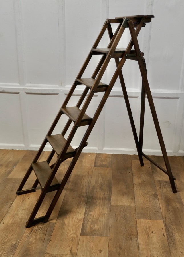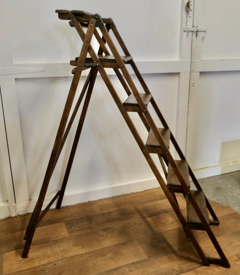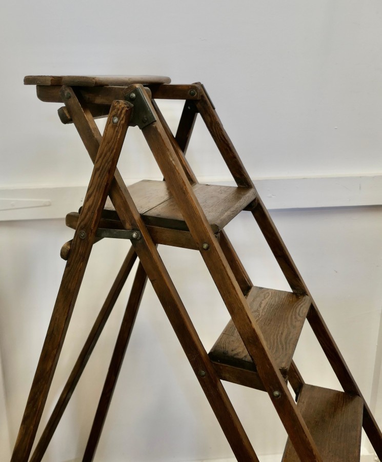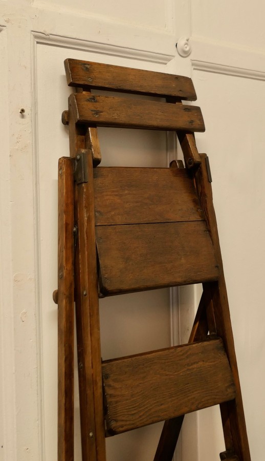 6ft Very Tall 19th Century Decorators Ladder This is a pretty big piece, it would make a superb decorative piece and has the original manufacturer’s label on the back The Ladder is made in Pitch Pine it is has darkened with age and has a polished finish When folded the ladder is 72” tall, when open it is 57” high, 52” deep on the floor and it is 23” wide VY191 Manufacture Date : 1880 Materials : Pine