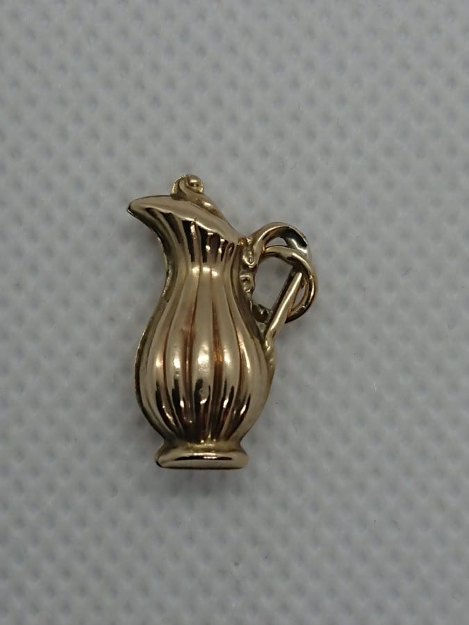9ct Gold jug charm. Unmarked but tested for 9ct and on an unsoldered jump ring.