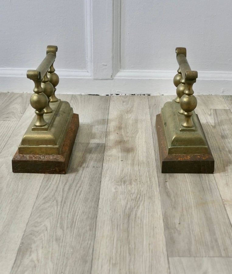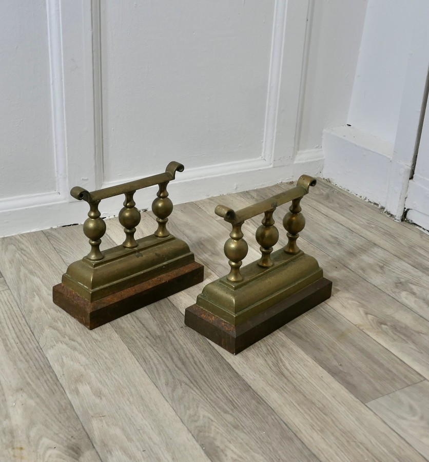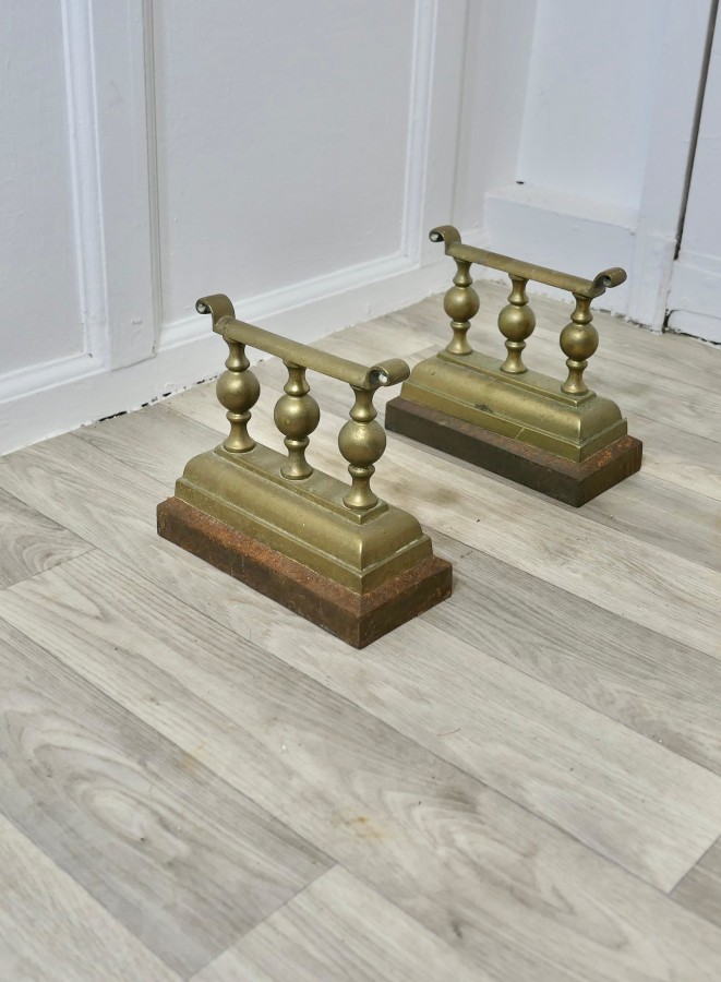 A Heavy and Attractive Pair of Victorian Brass Andirons or Fire Dogs This very attractive pair of brass Andirons are 7” high, 8” long and 4” wide across the front, they are in excellent but obviously used condition, just what you fire tools need to keep them safe and handy NG56 Manufacture Date : 1870 Materials : Brass