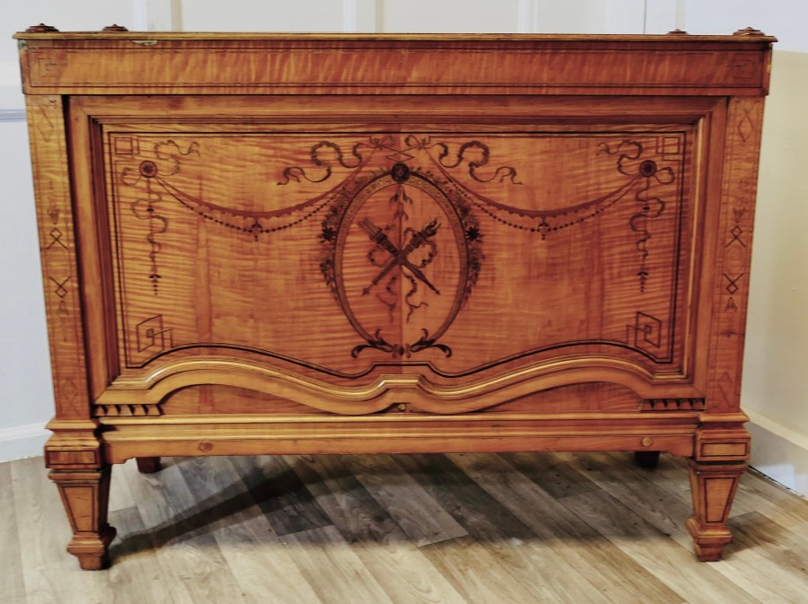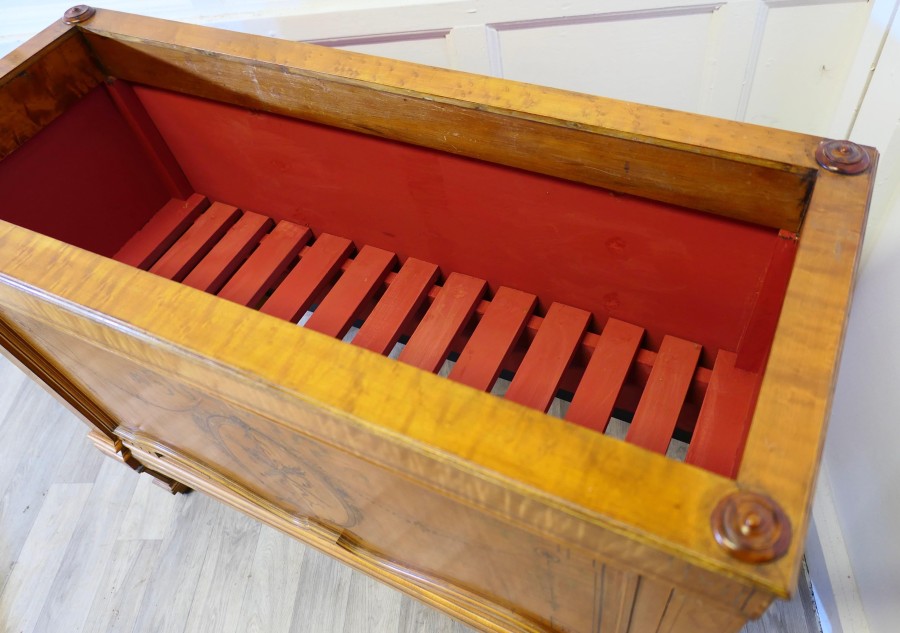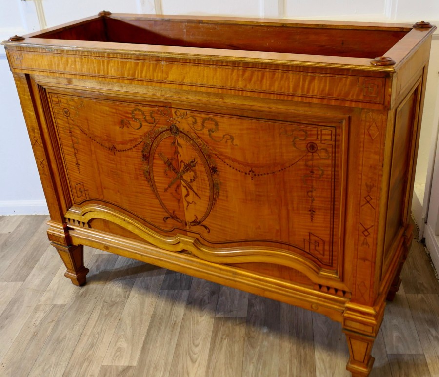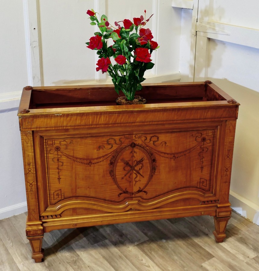 A Large French Satin Walnut Planter Jardinière The planter is a real stand alone statement piece, it is made in Satin Walnut, this piece has a wonderful colour and patina, it stands on small legs. The interior of the planter is very large and slatted to support even large plants The planter is in good condition it is a good quality and very attractive piece and would look superb especially in a vestibule or hallway The Jardinière is 33” high and 42”wide and 17” NG268 Manufacture Date : 19th Century Materials : Walnut