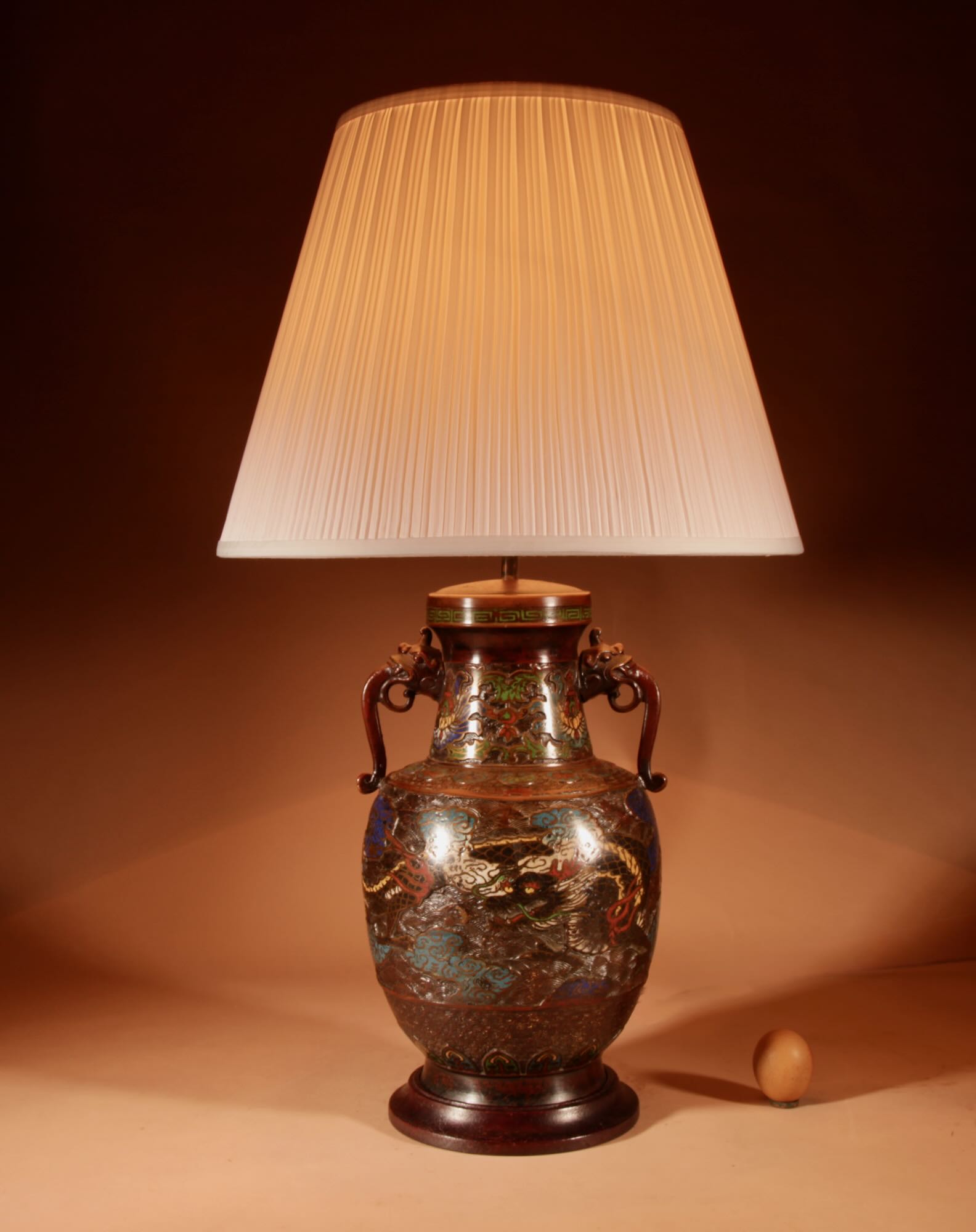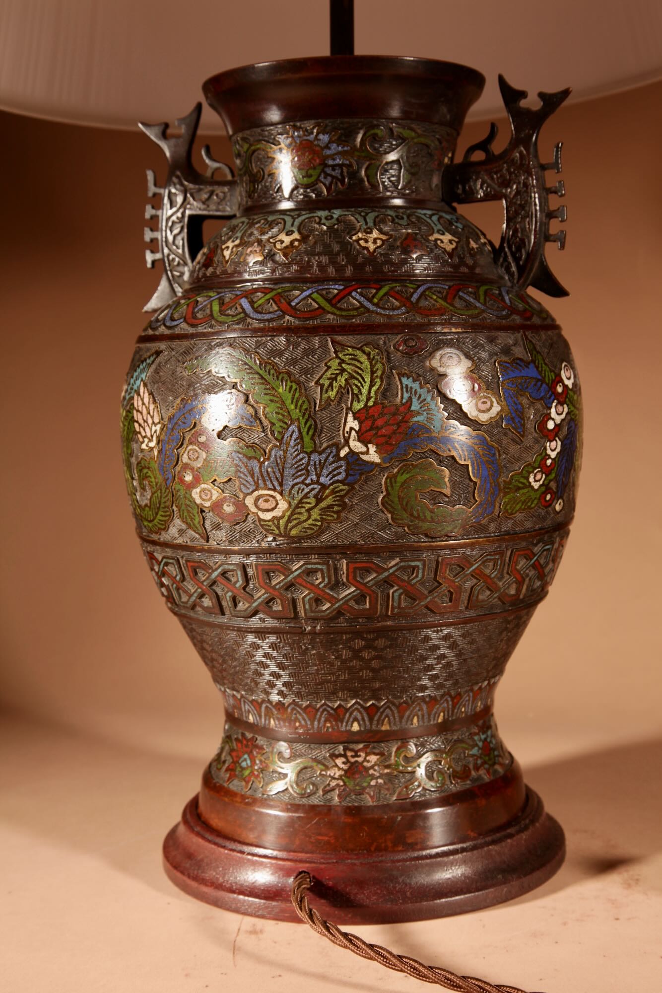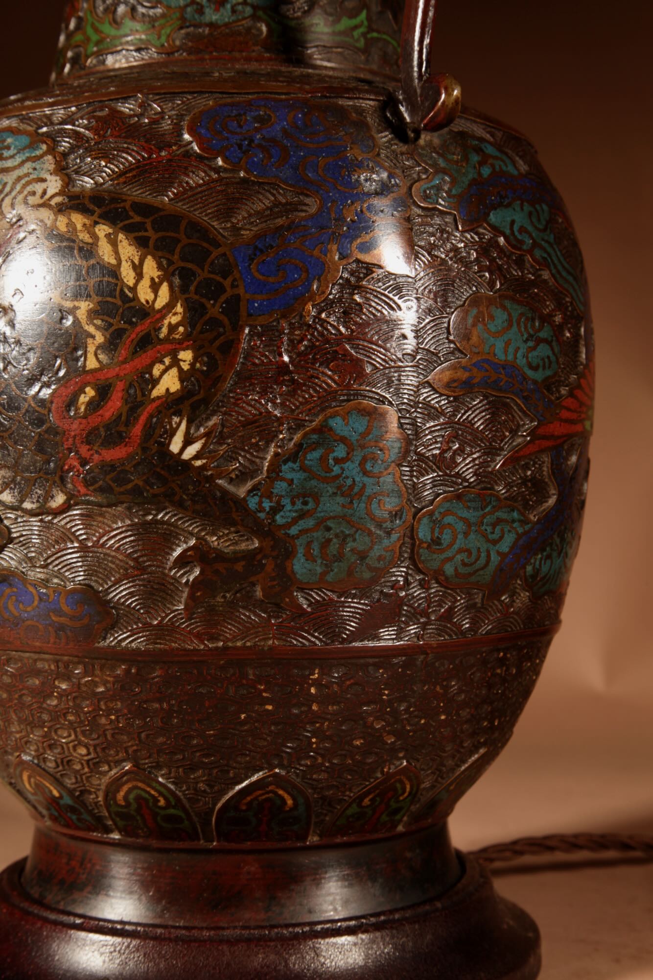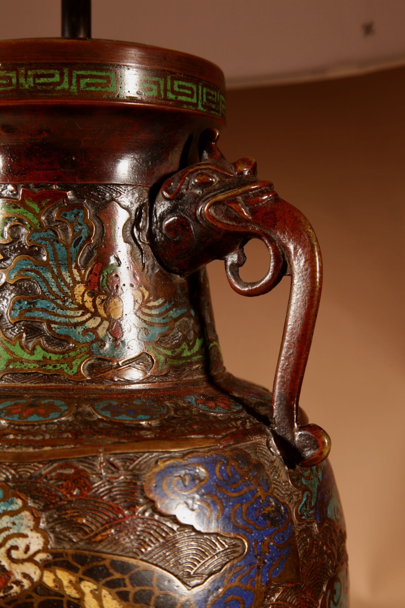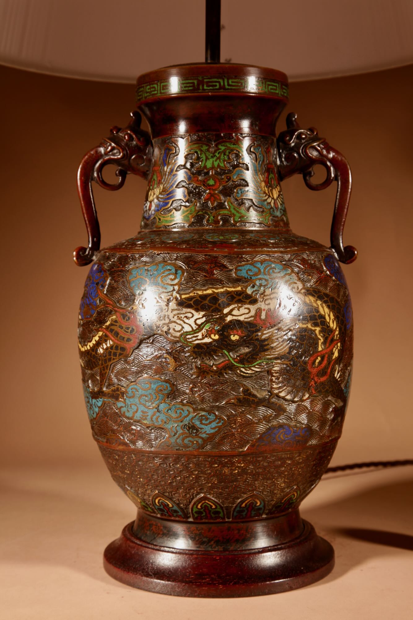 A Large Impressive Champlevé Japanese bronze table lamp.