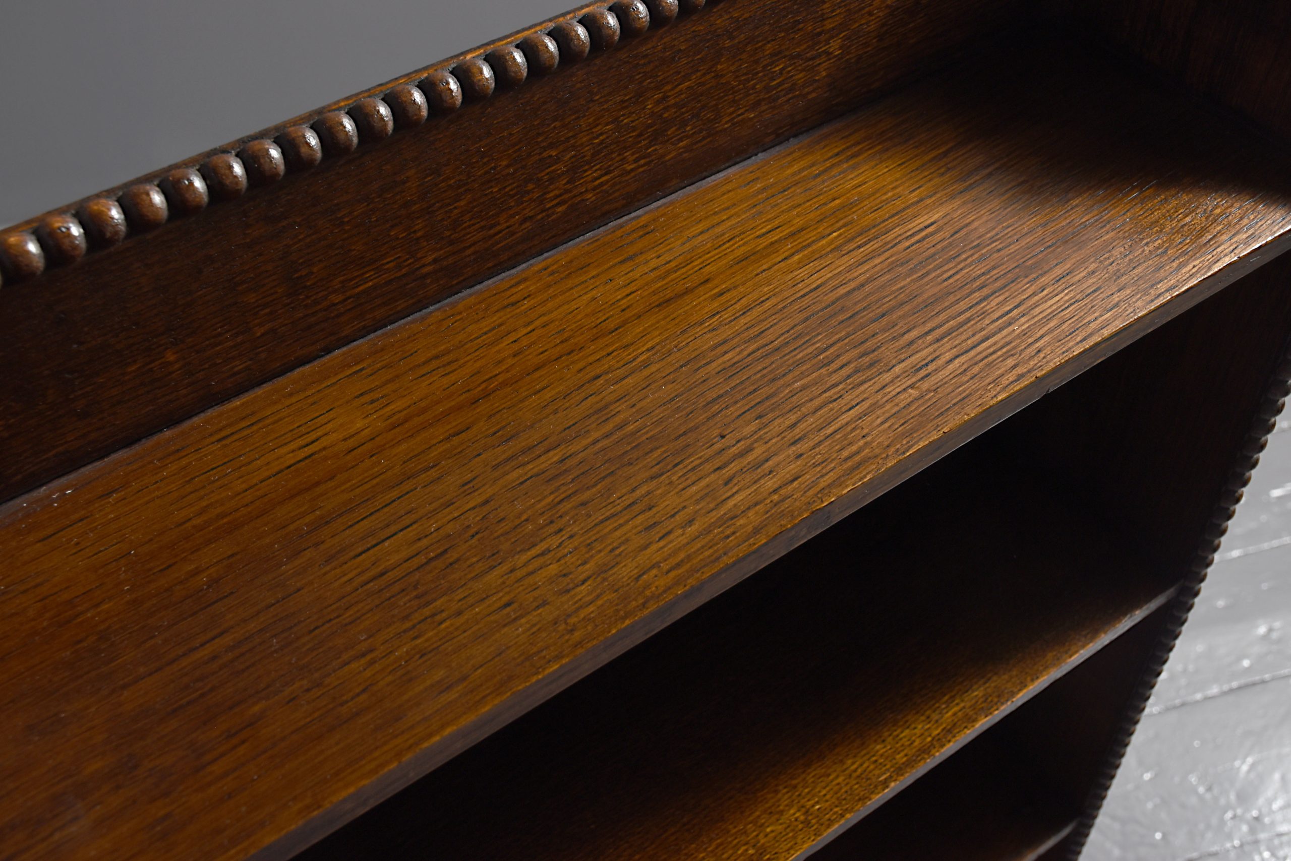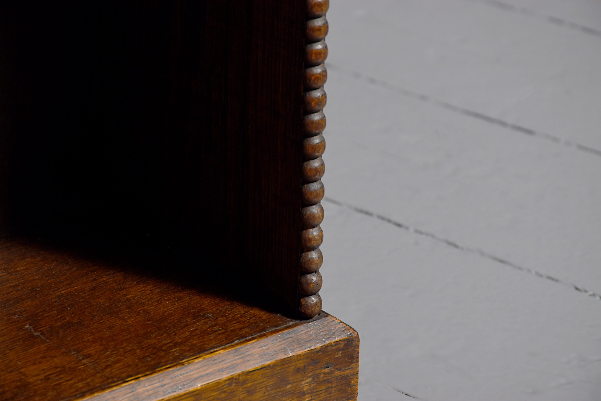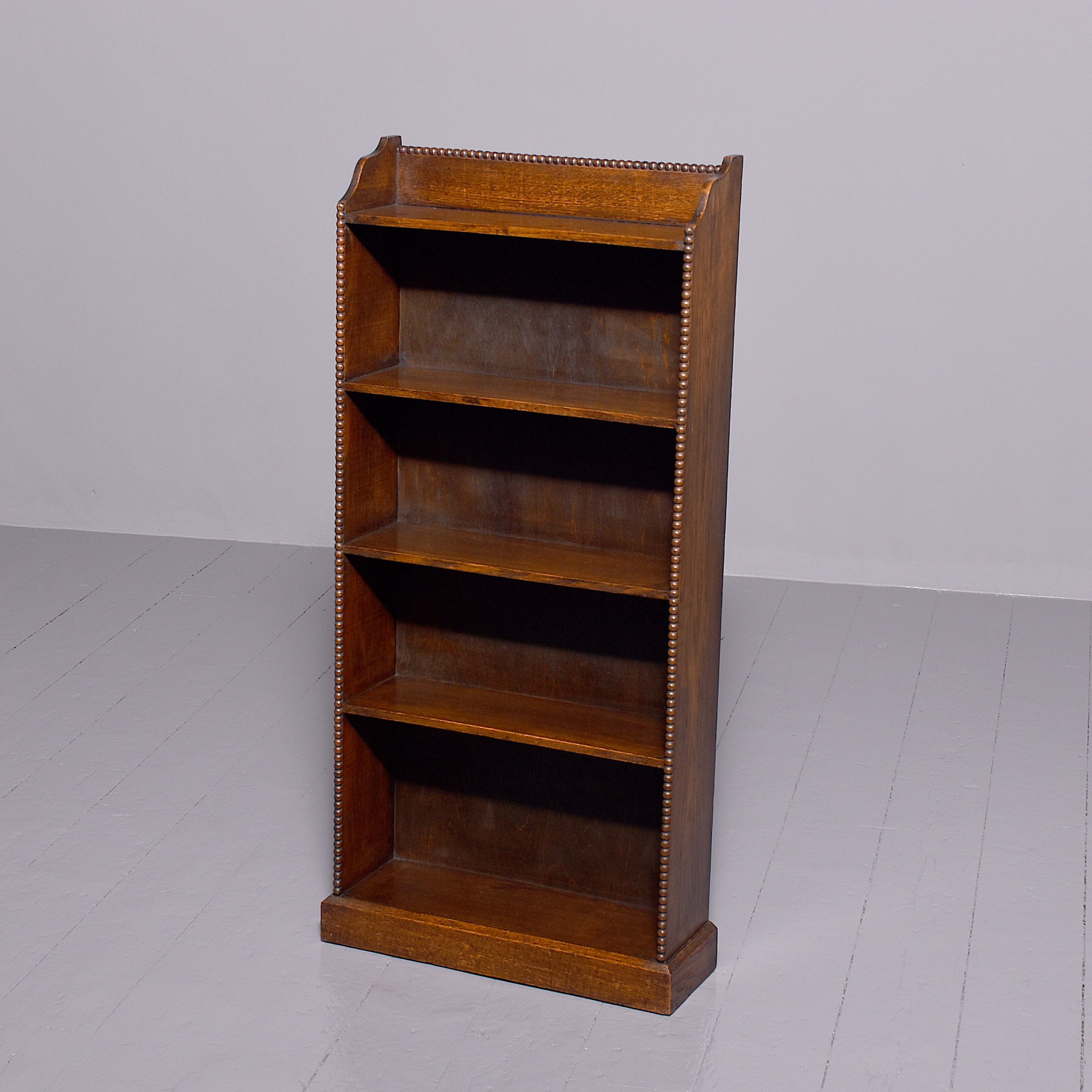 Circa 1900. A narrow Edwardian Oak open bookcase with five shelves and a beaded back and sides over an enclosed plinth base