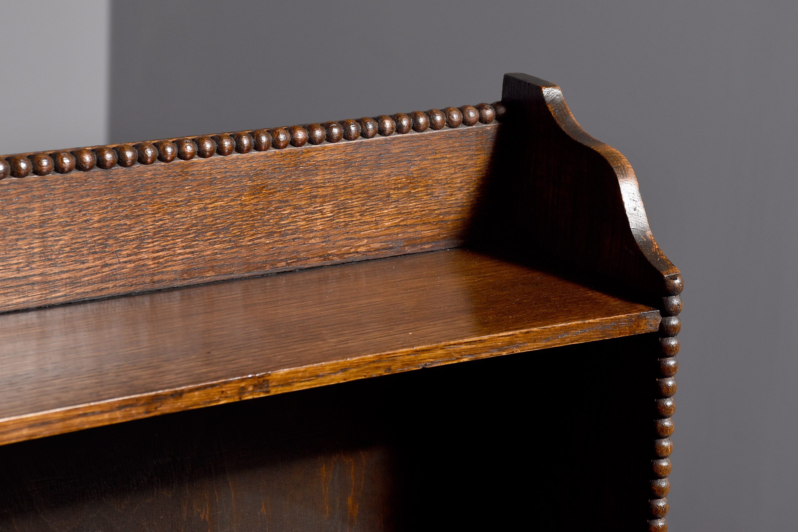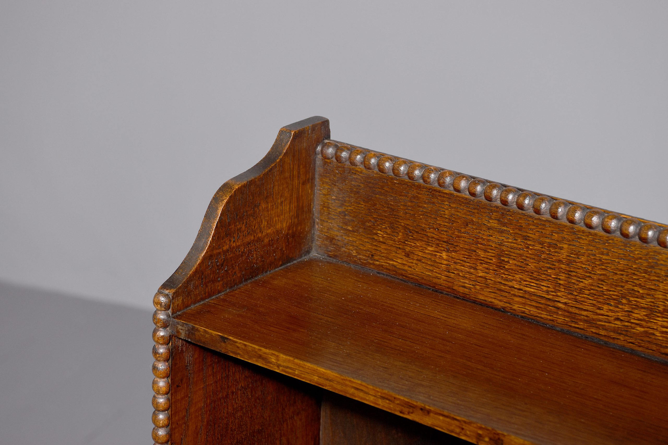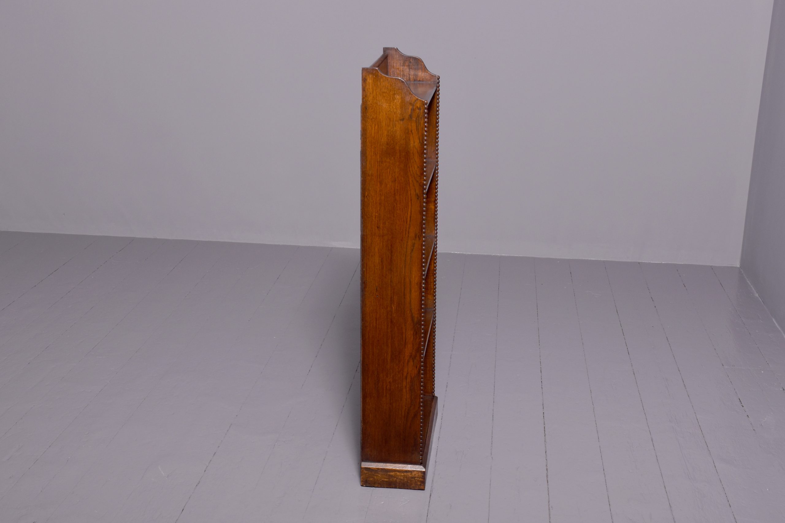Circa 1900. A narrow Edwardian Oak open bookcase with five shelves and a beaded back and sides over an enclosed plinth base