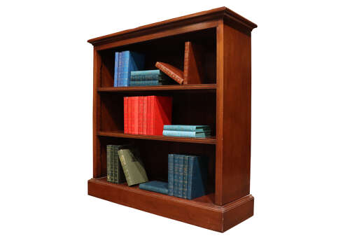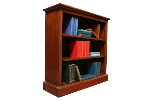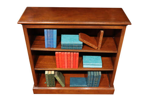 A small, good quality mahogany open bookcase, circa 1900, the rectangular moulded top above three fully adjustable shelves, each retaining the original saw-tooth supports. Of compact proportions and excellent warm colour, the bookcase stands on a plinth base and is finished in a rich, well-polished mahogany throughout. A practical and elegant piece, ideal for a study, sitting room or hallway.