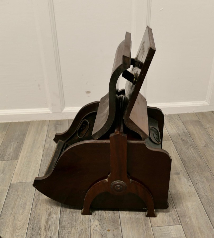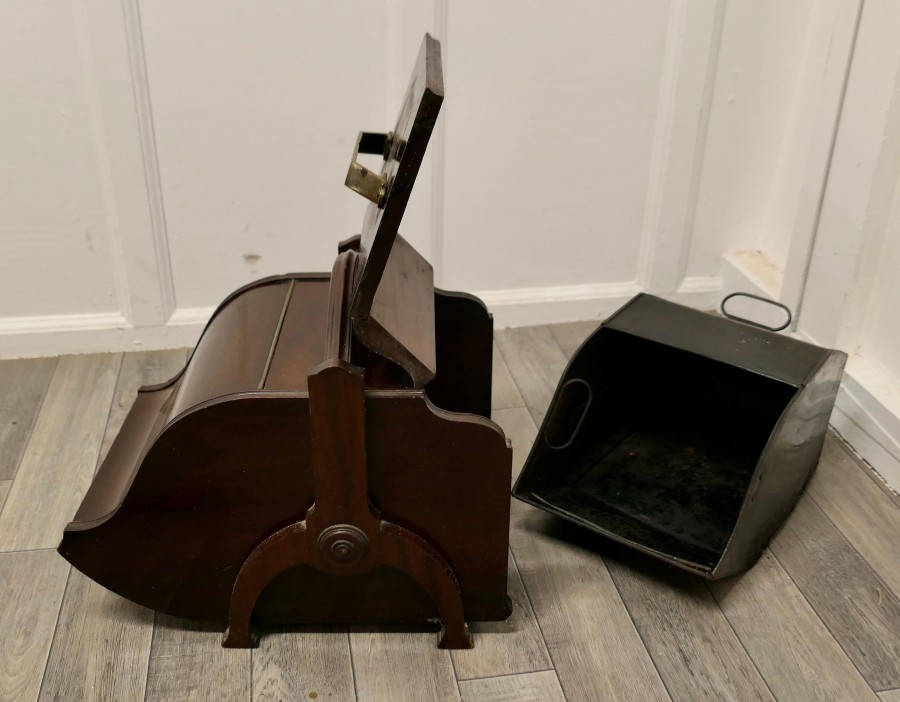 A Victorian Double Ended Coal Box with Liner and Shovel A charming piece of useful Victorian furniture, the box has a piano shaped opening front it also opens at the back with a shovel and holder and a metal liner which is removable from the back for filling It is in good antique condition with a repair to the metal liner The Scuttle is 15” high, 13” wide and 19” deep TJK51 Manufacture Date : 1880 Materials : Mahogany