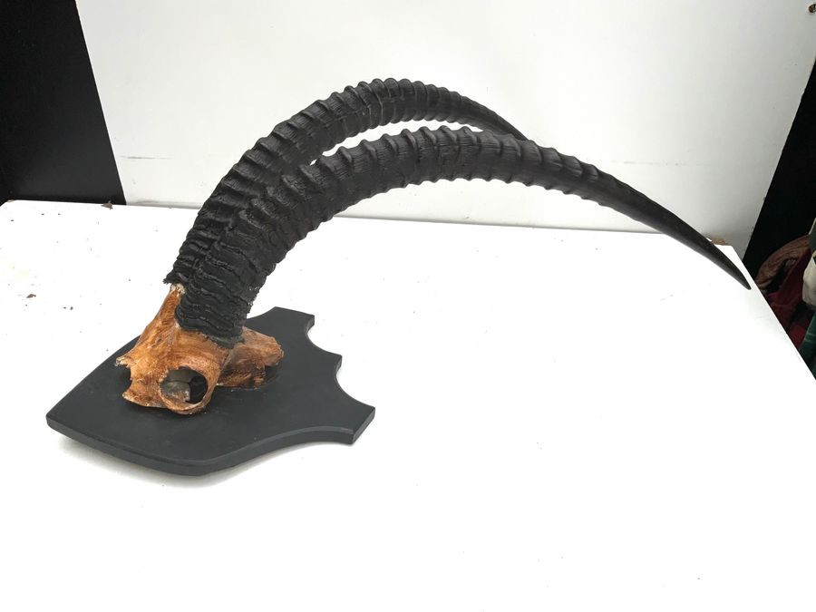 Mounted on wood shield and horns are in excellent condition, the magnificent Sables horns being some 90 cm long, obviously from large male, offering free delivery reference DMELS Tel: +44 7505 165 843 We accept online payments for all our items listed: Bank transfer cash on collection or if wishing over the phone using your debit or credit cards, also doing layby payments plan, or email giving your address details & contact number and we shall send you your items invoice to make payment with your card. Send your request to – john.strong2@gmail.com
