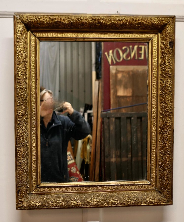 An Elegant 19th Century Gilt Wall Mirror This is a lovely old mirror it is set in a Deeply Moulded Decorative Gilt 4” wide Frame, The looking Glass is in good condition, the frame is very attractive with deep moulding it has a few minor knocks but is still a very attractive piece The overall size is 30” high, 25” wide an it is 2” deep SW90 Manufacture Date : 19th Century Materials : Mirror