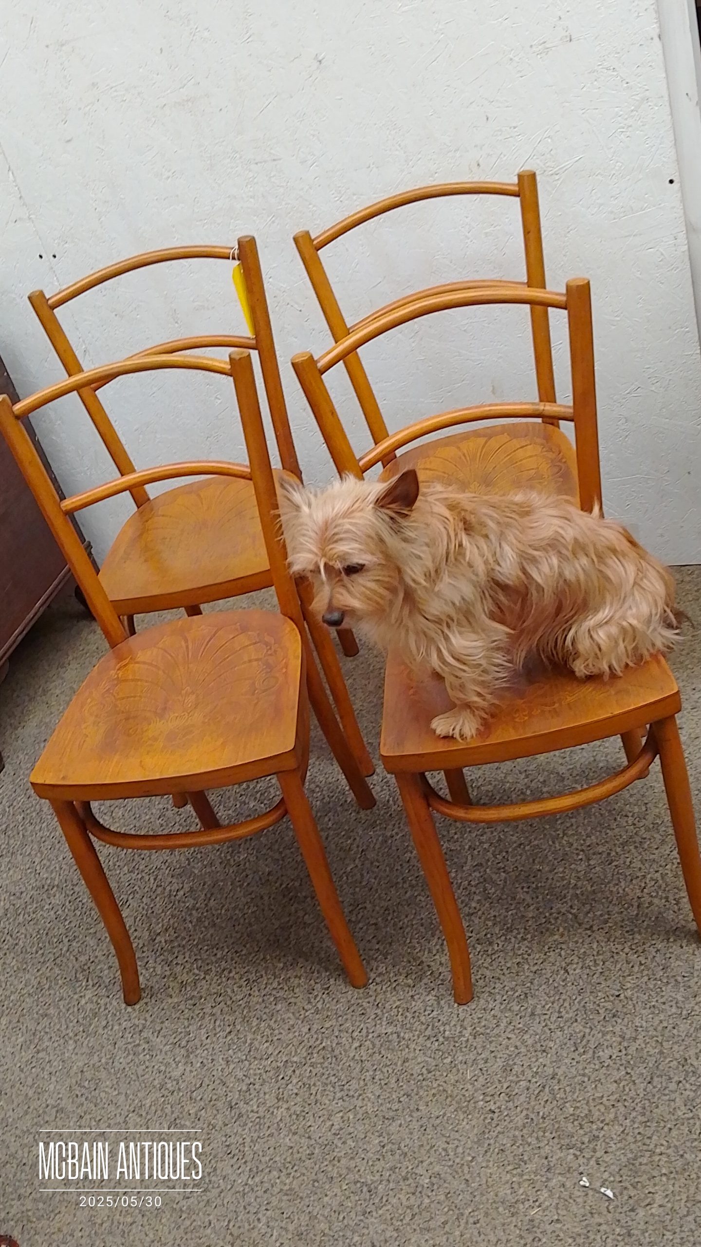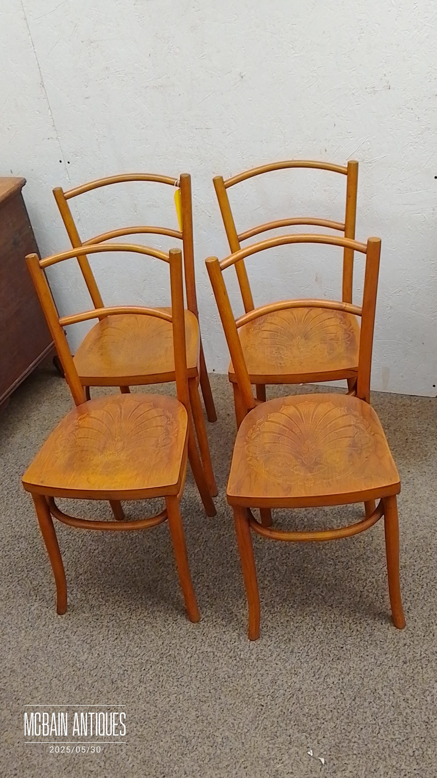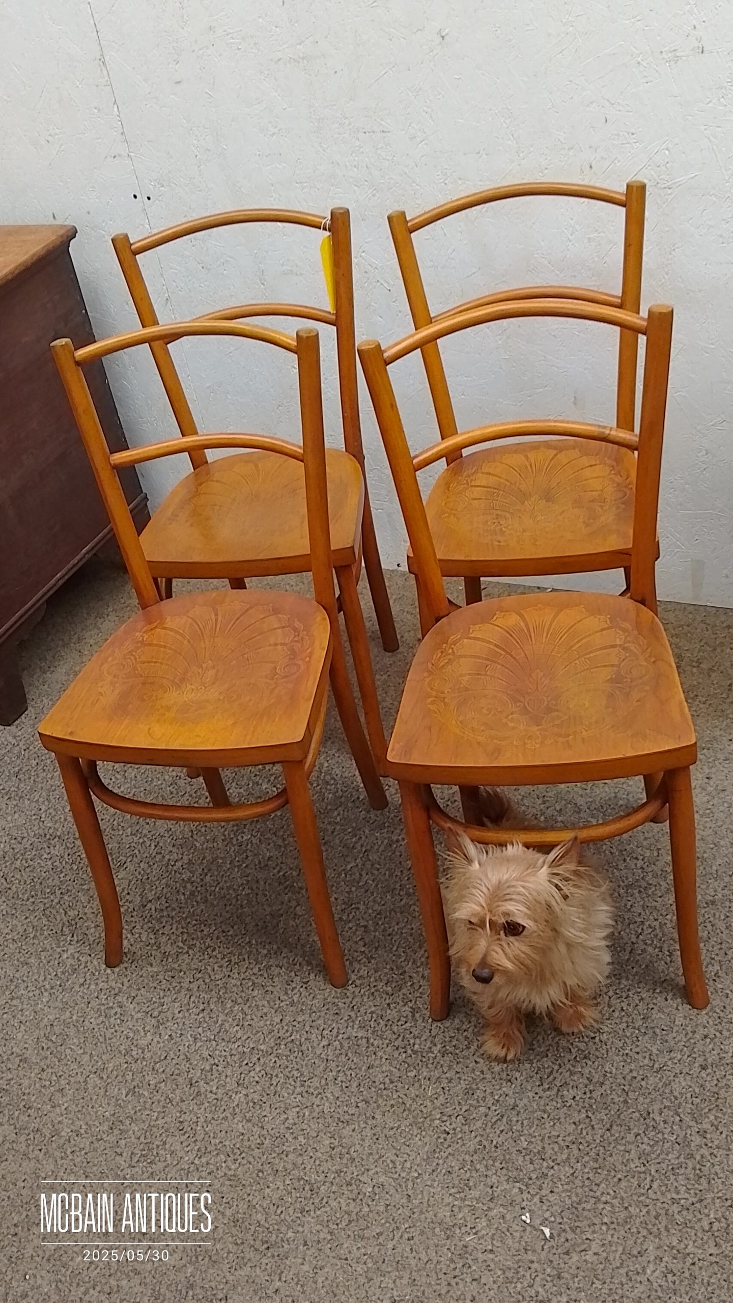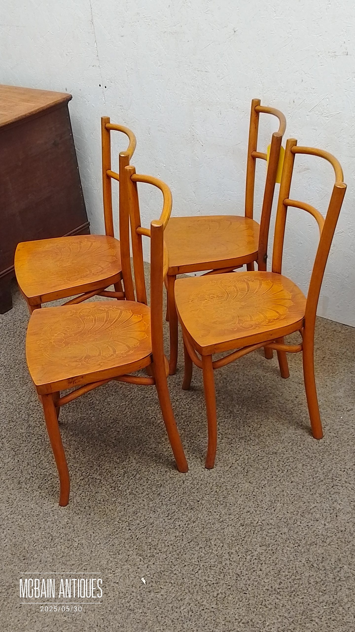 Good antique 1930’s set of four bentwood kitchen dining chairs.