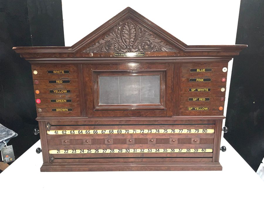 Superb burr walnut score board by the most famous of all billiards makers, overall conditions good, offering free Worldwide delivery, reference DMELS. Tel: +44 7505 165 843 We accept online payments for all our items listed: Bank transfer cash on collection or if wishing over the phone using your debit or credit cards, also doing layby payments plan, or email giving your address details & contact number and we shall send you your items invoice to make payment with your card. Send your request to – john.strong2@gmail.com