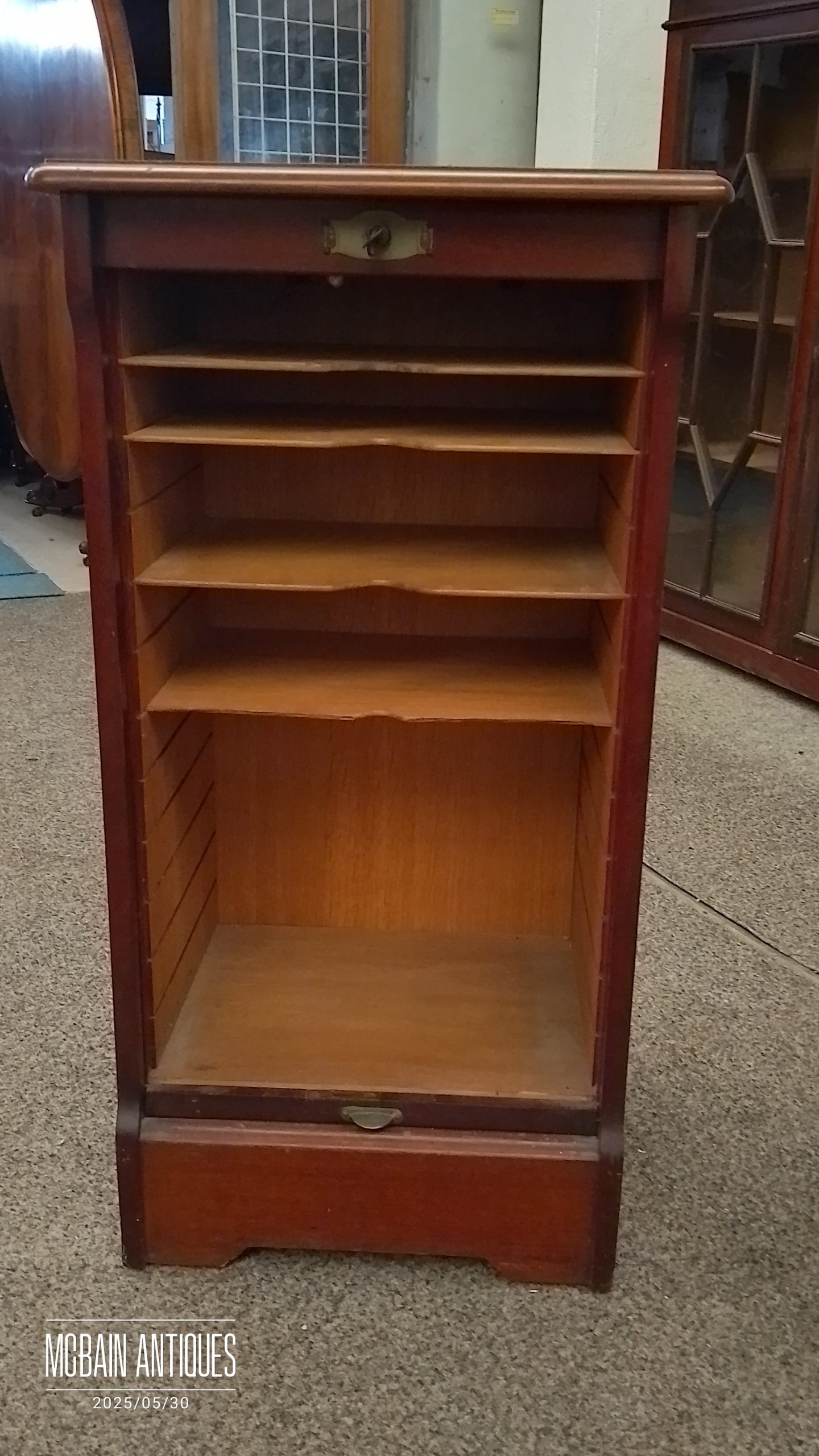 Antique Edwardian Tambour Front Filing Cabinet