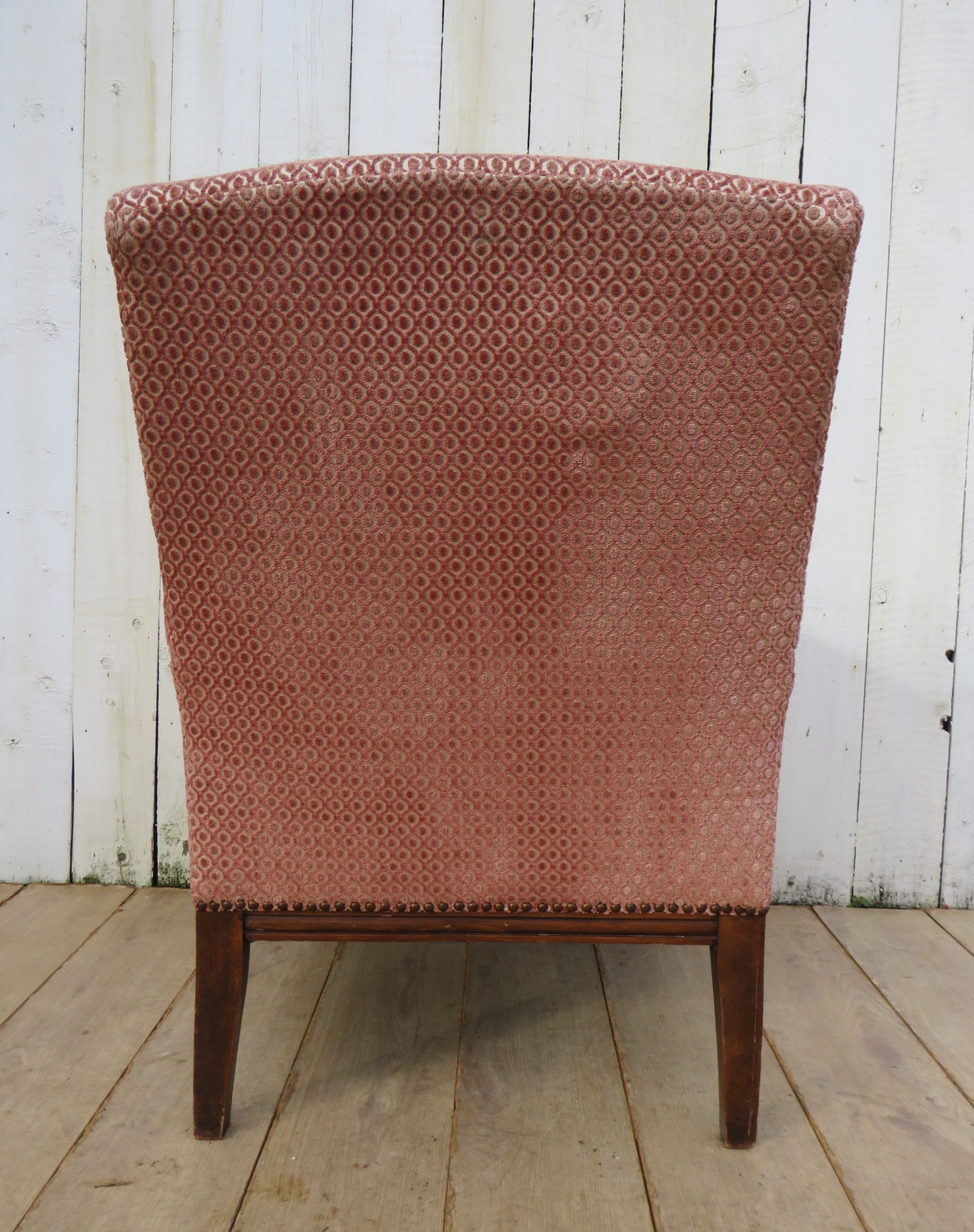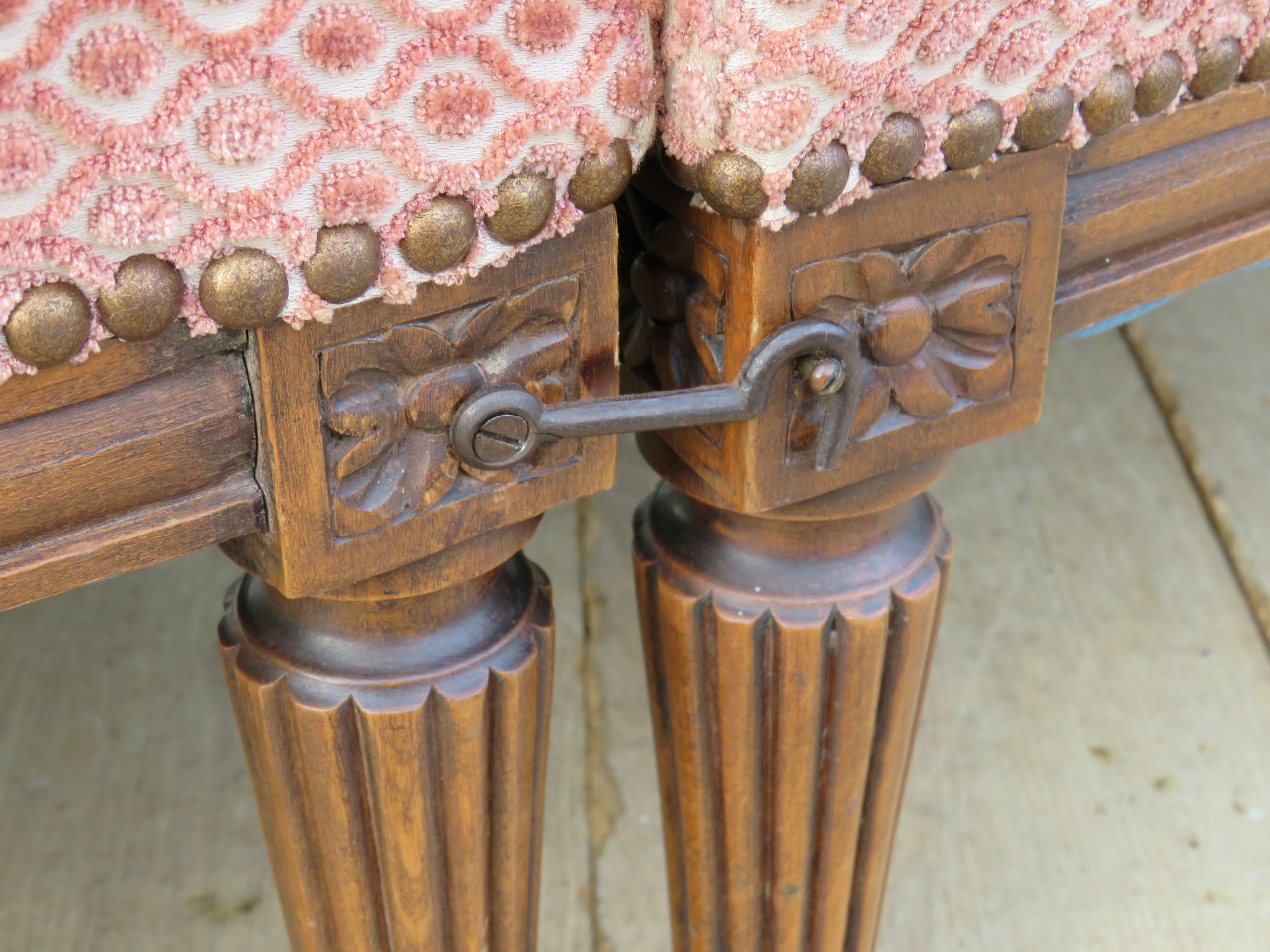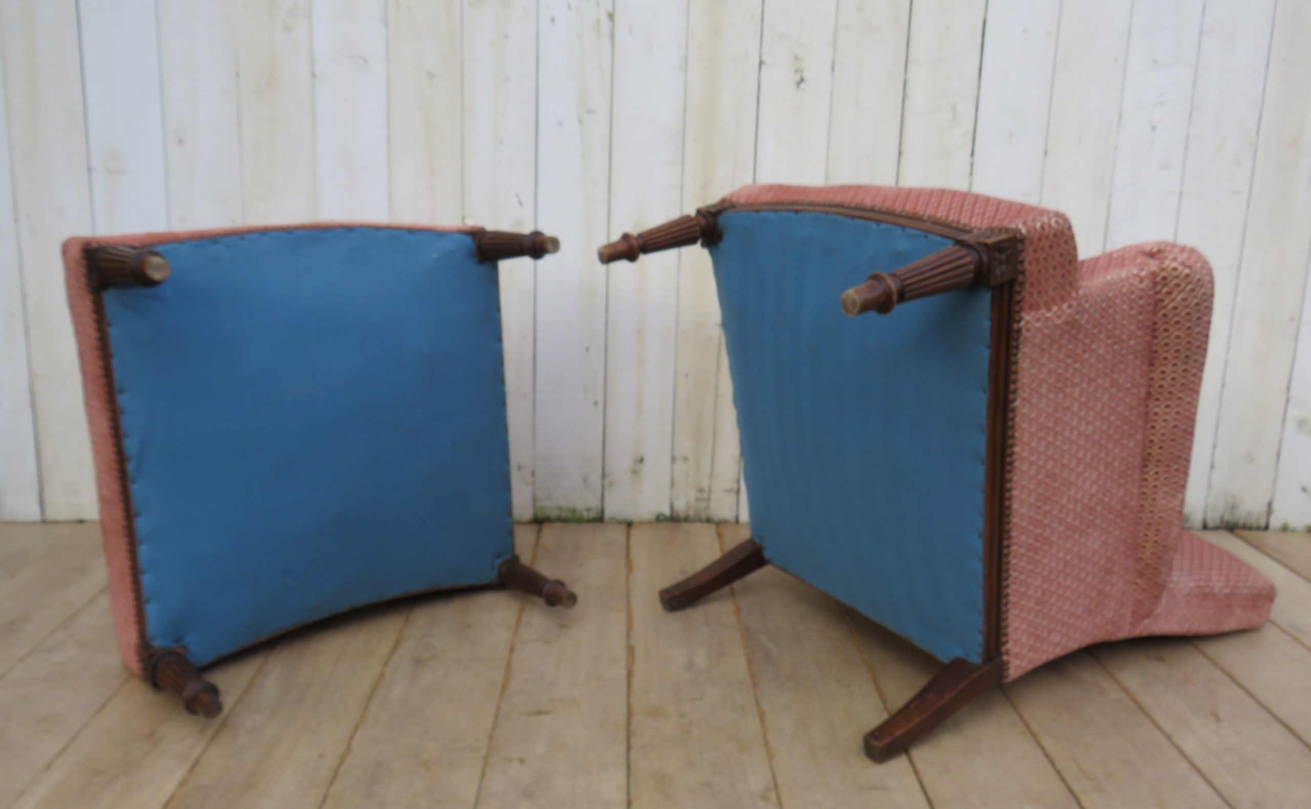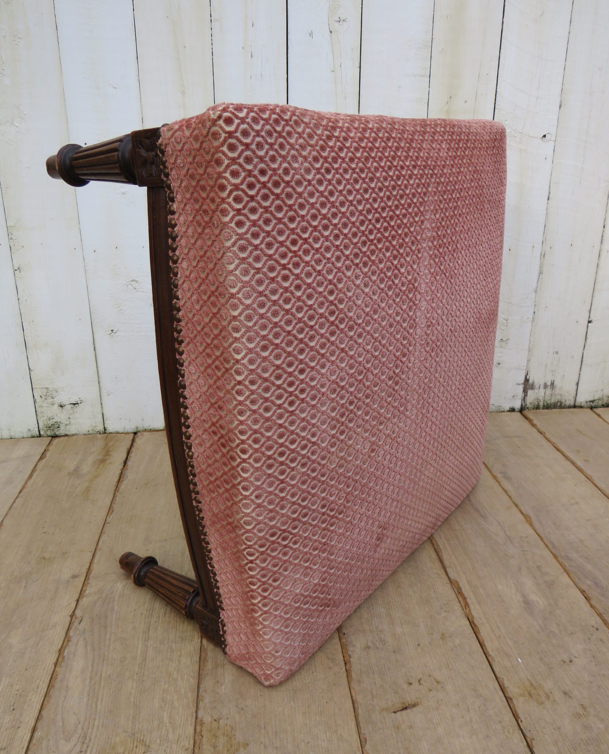 Shapely, sound, sturdy and sprung 19th century French armchair and matching foot stool on oak legs for re-upholstery or used as is with a clean to the fabric. Can be used as a daybed. Overall length 152cm.
