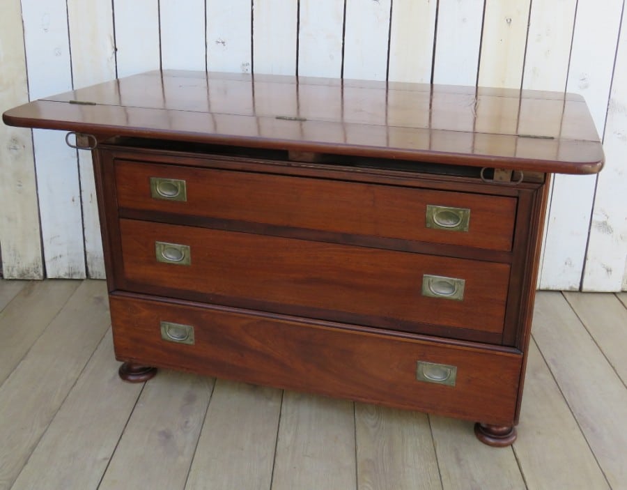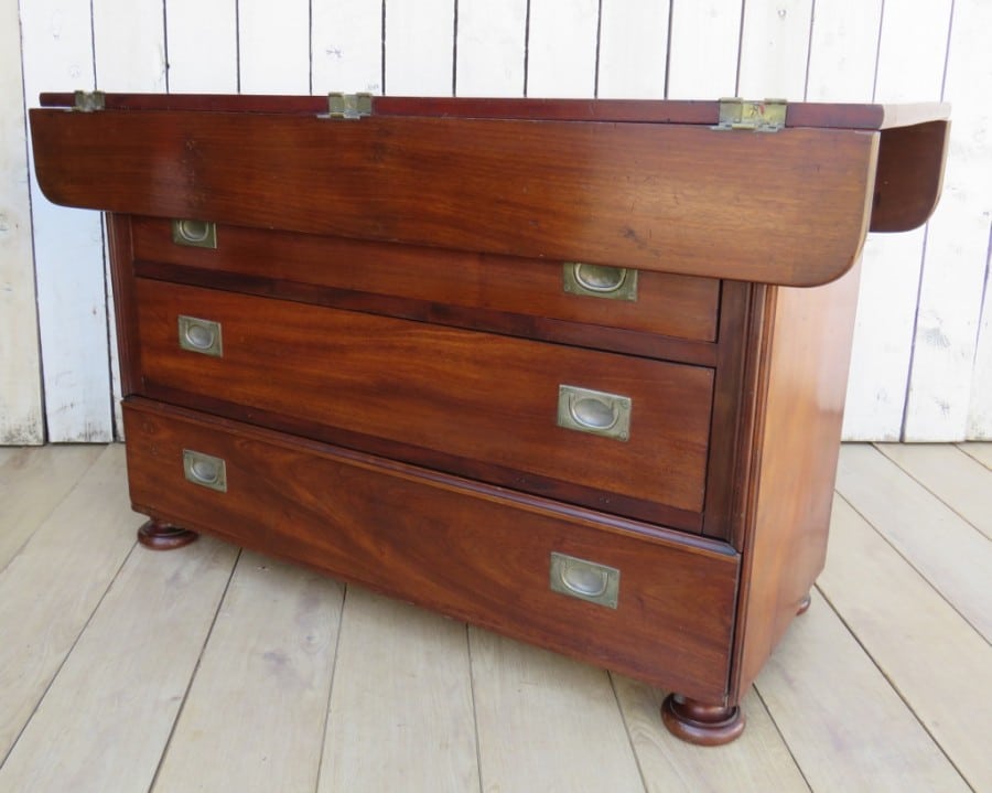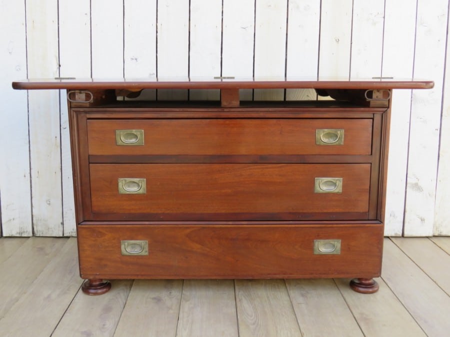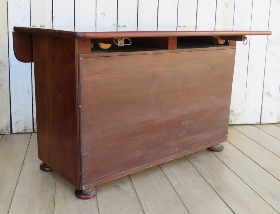 19th century French three drawer mahogany industrial haberdashery drapers commode, chest of drawers with double sided hinged top.