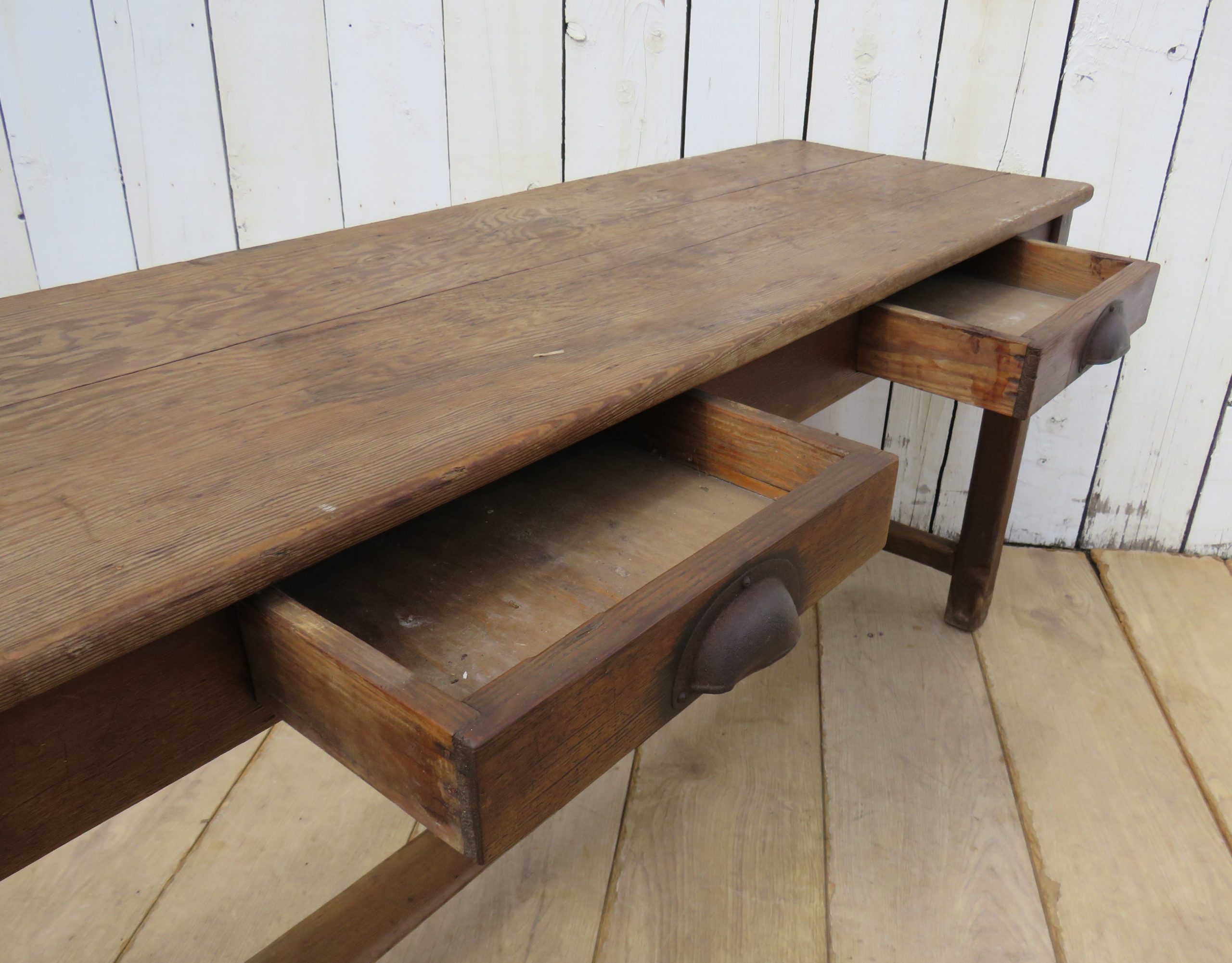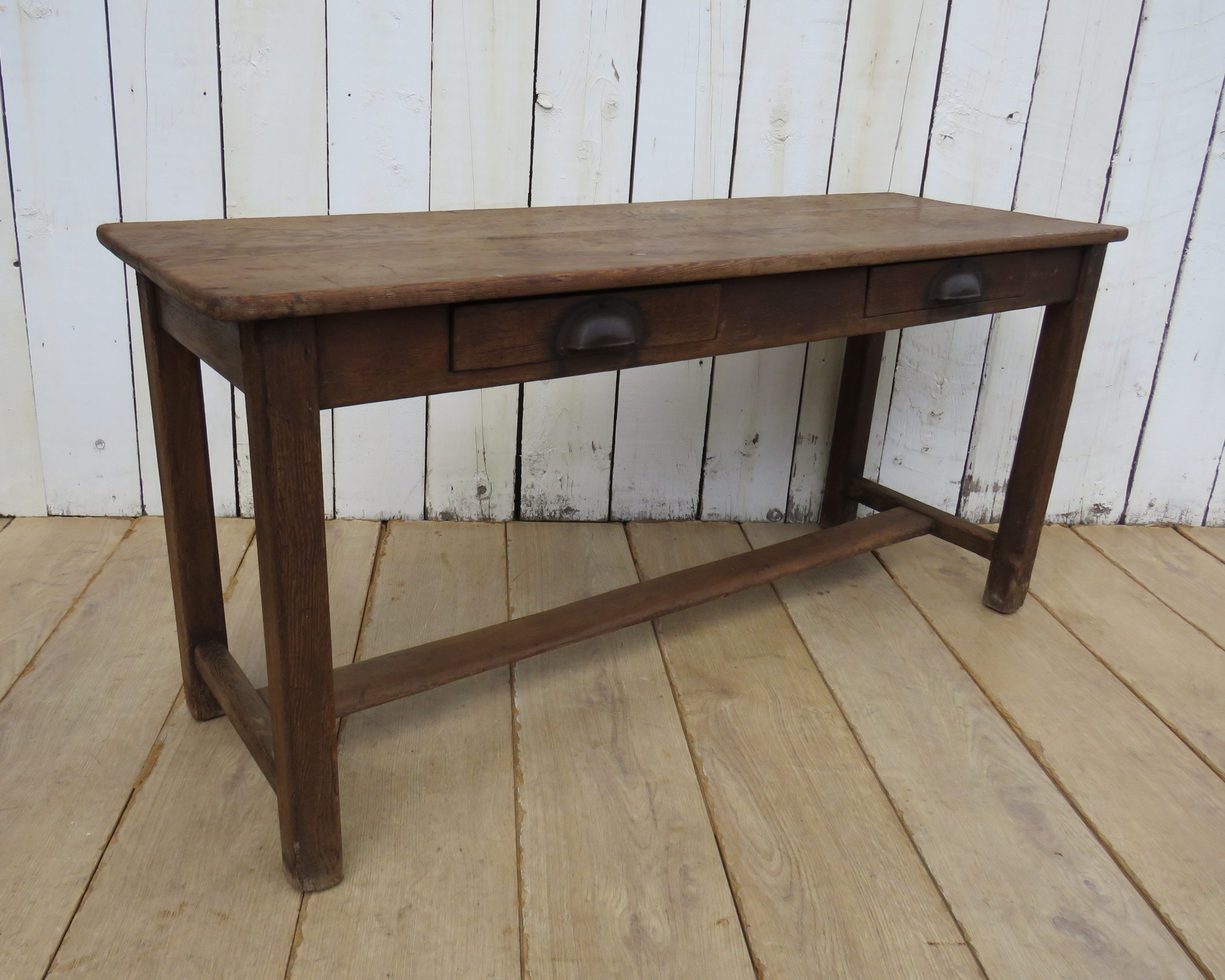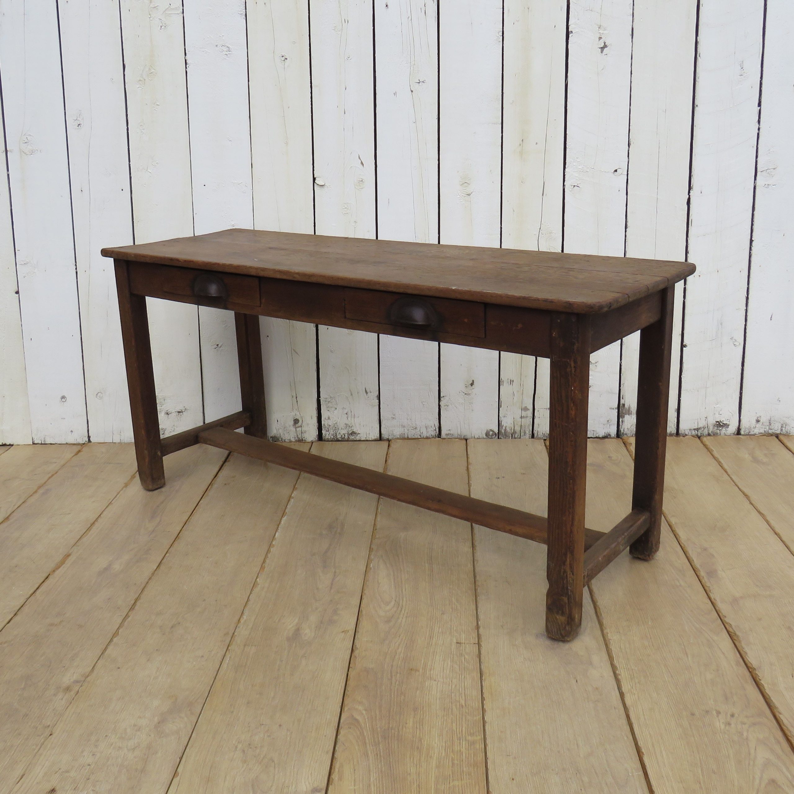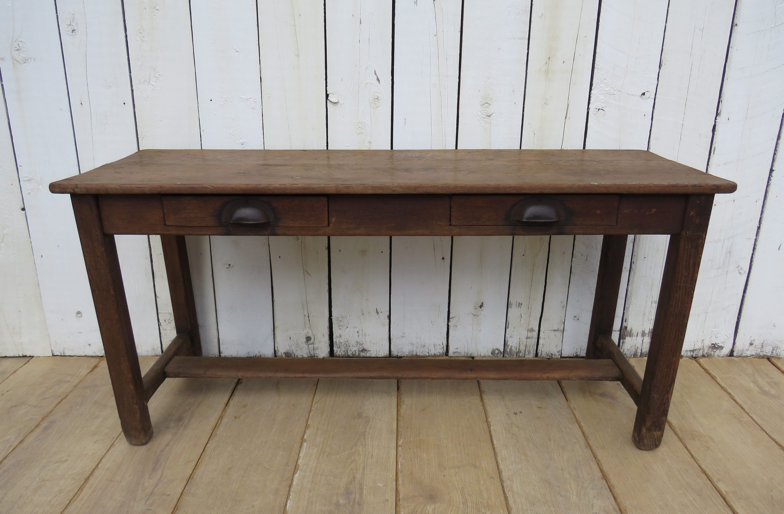 Shapely, sound and sturdy 19th century French side, lamp, sofa, coffee table with two handy drawers. Height 54cm, width 115cm, depth 38cm.