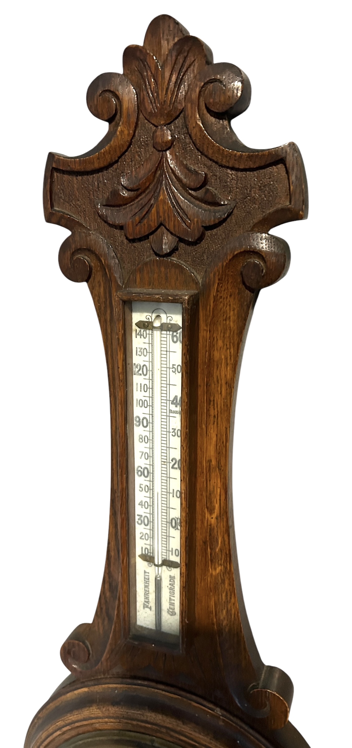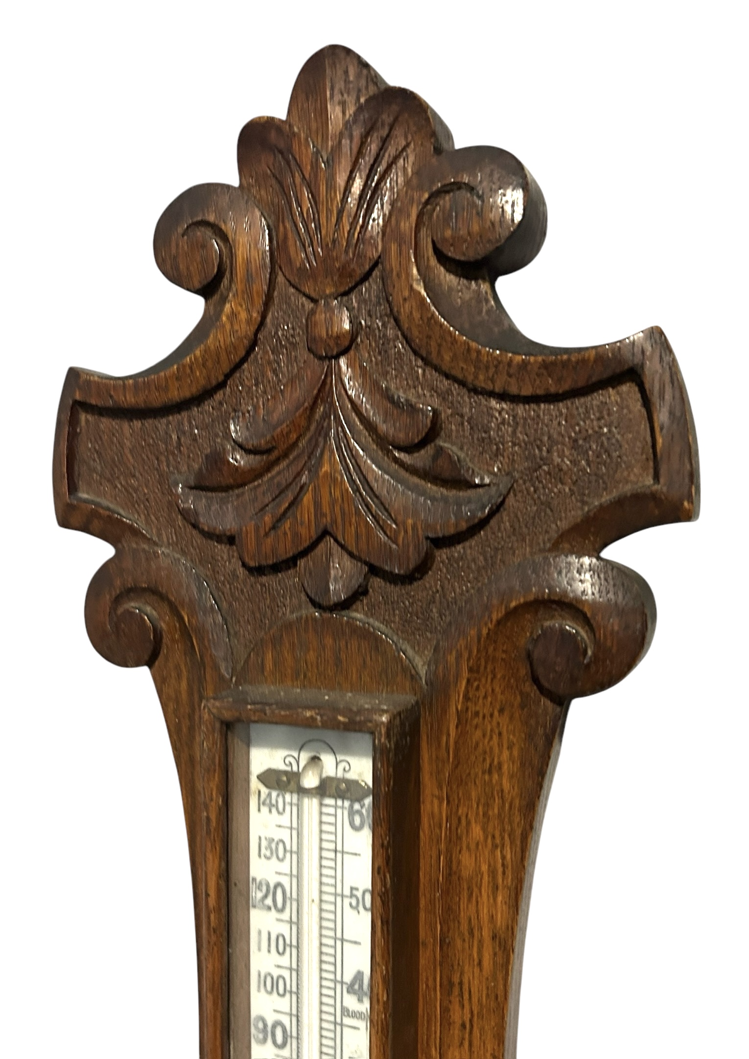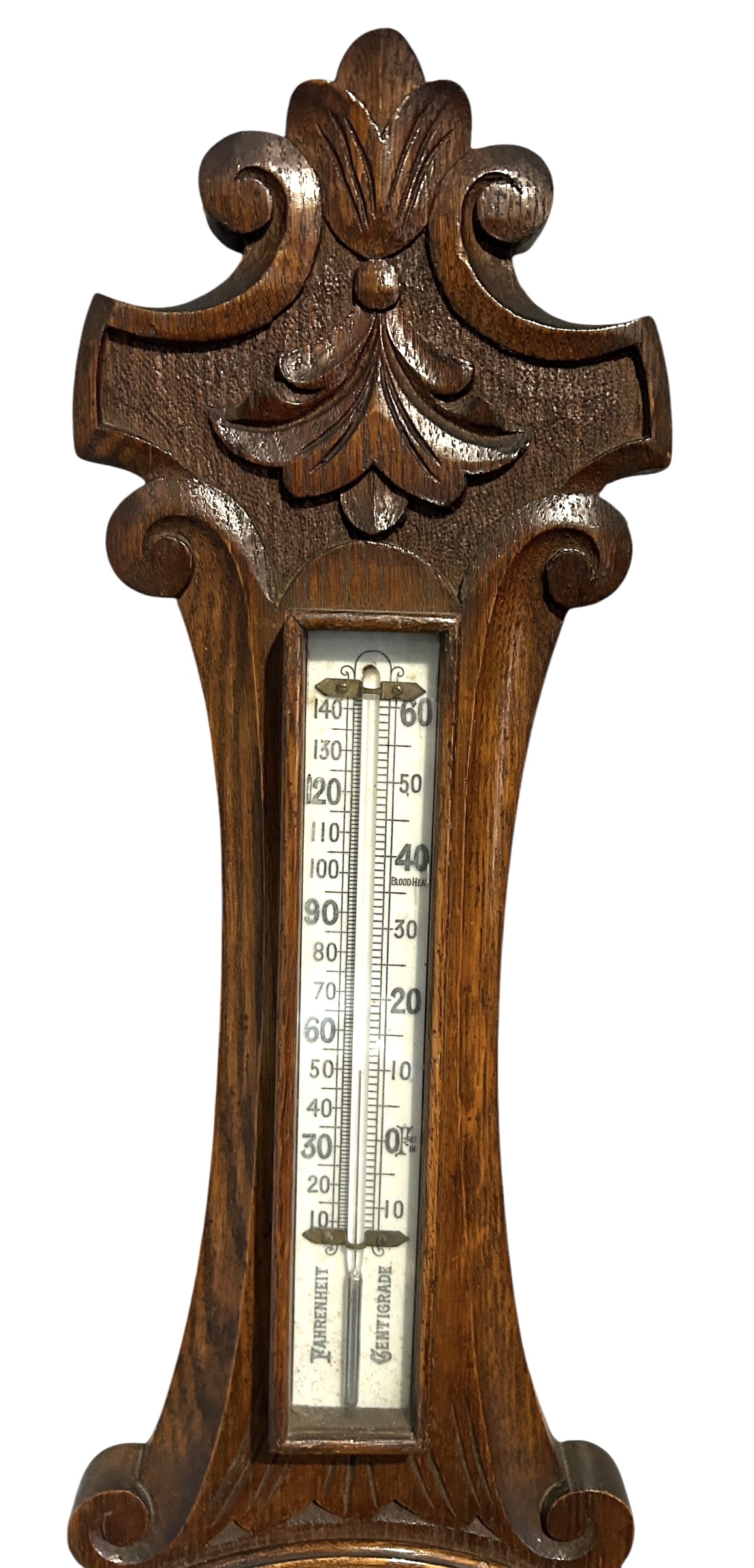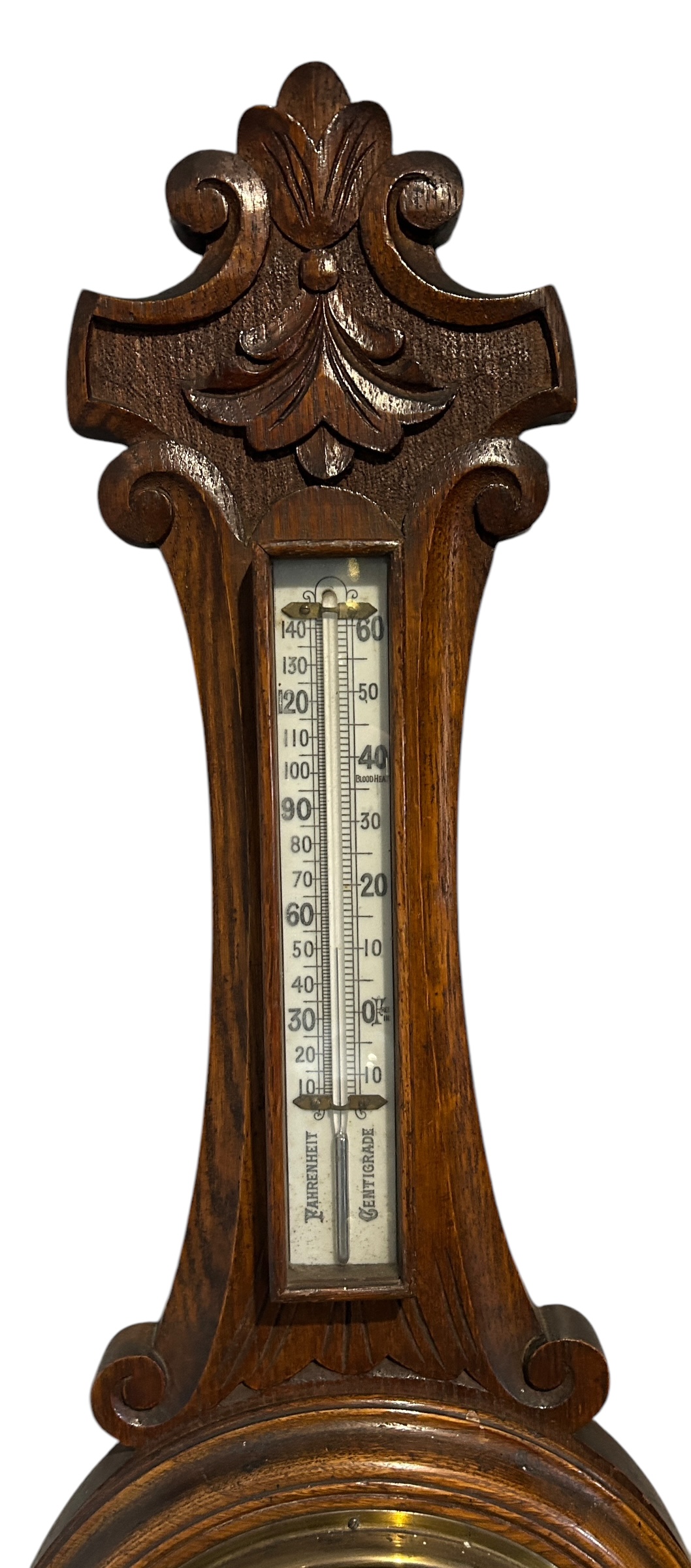Antique Oak Banjo Barometer Thermometer -ca 1900