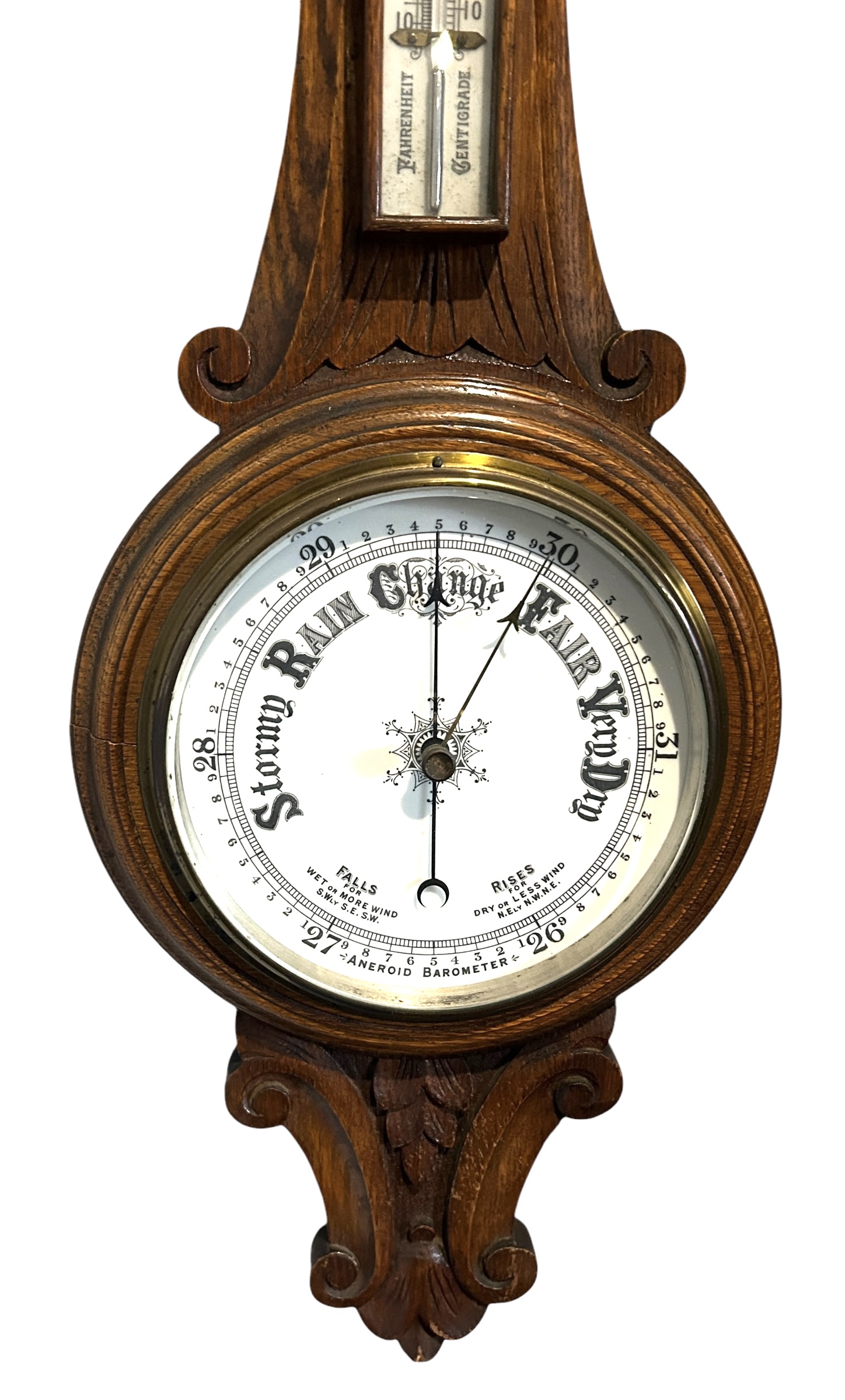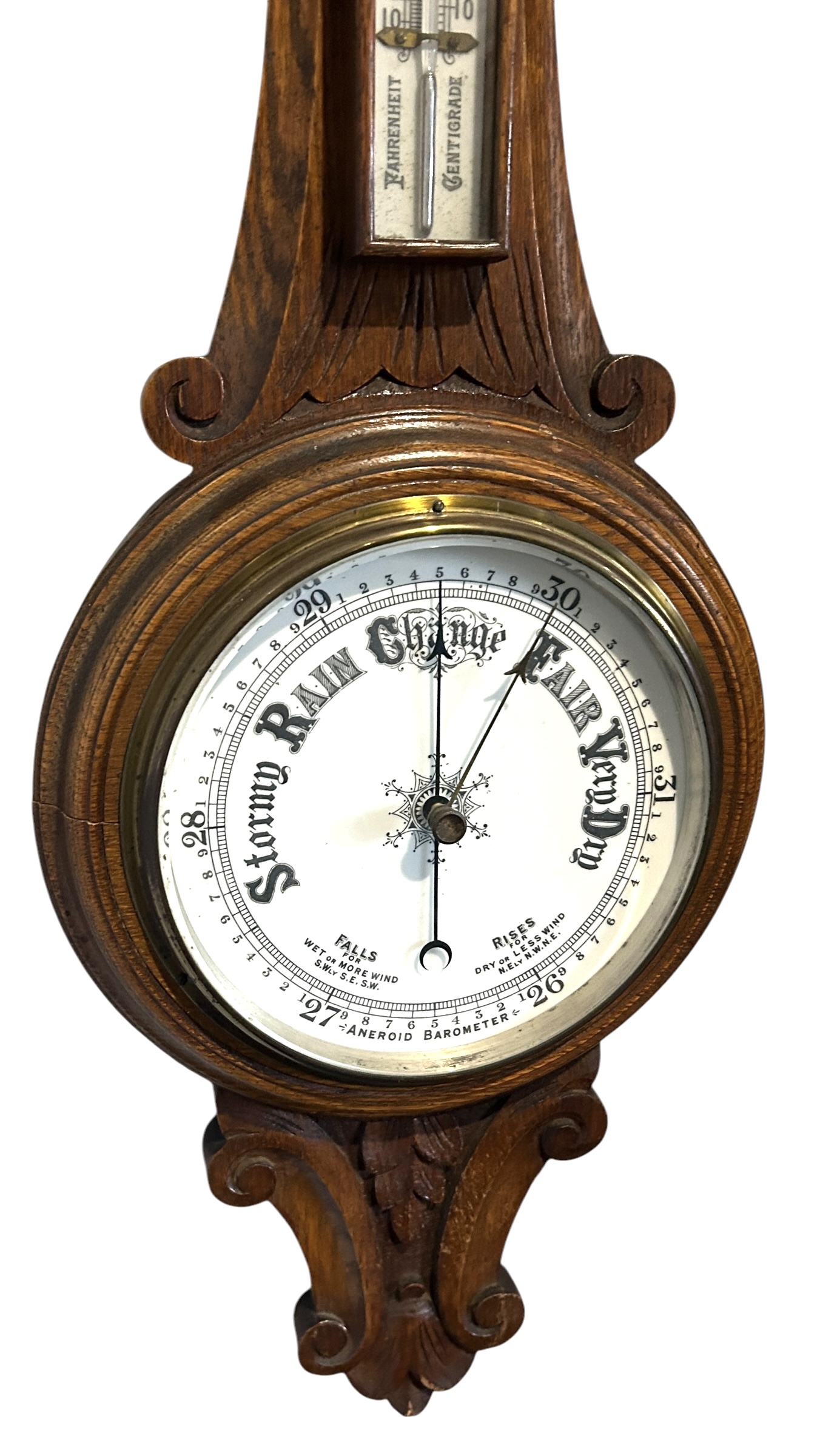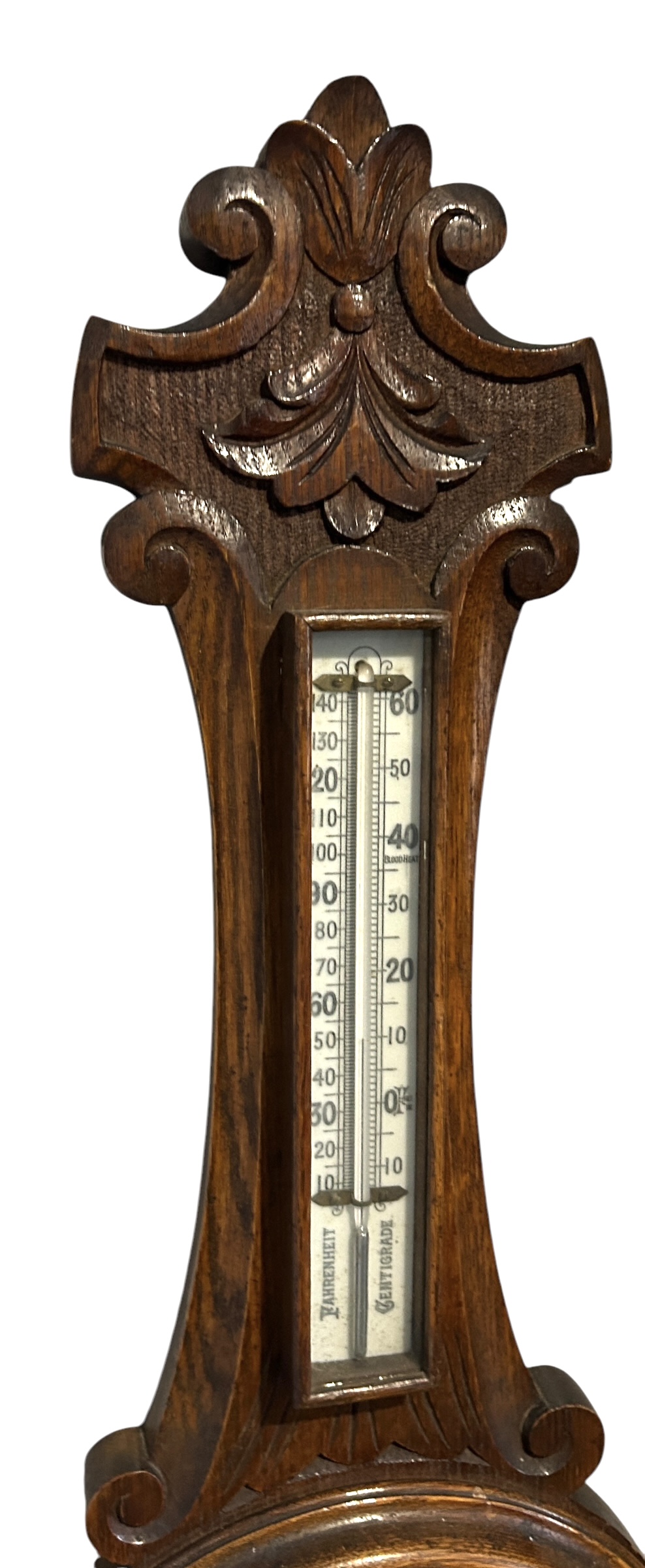 Antique Oak Banjo Barometer Thermometer -ca 1900