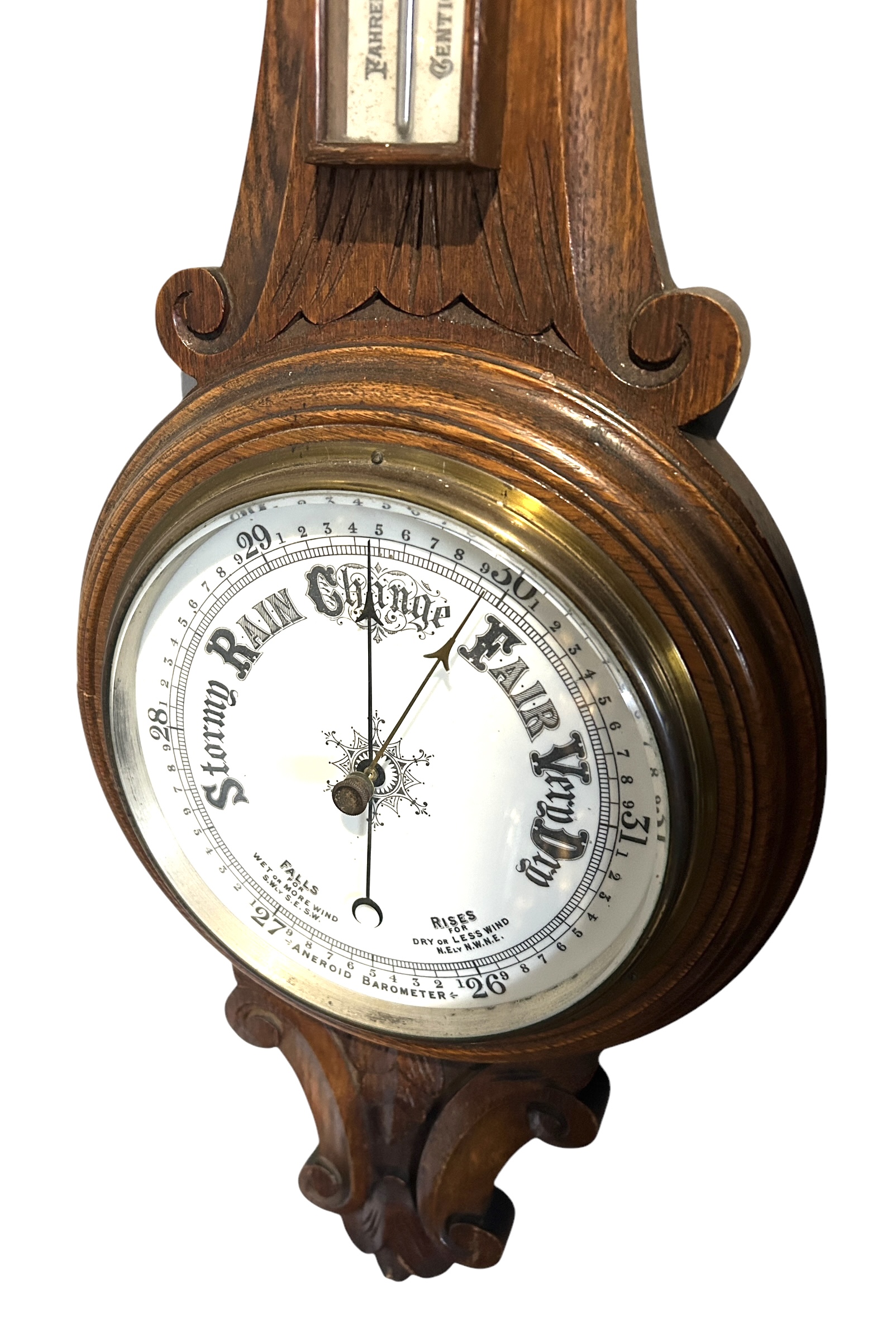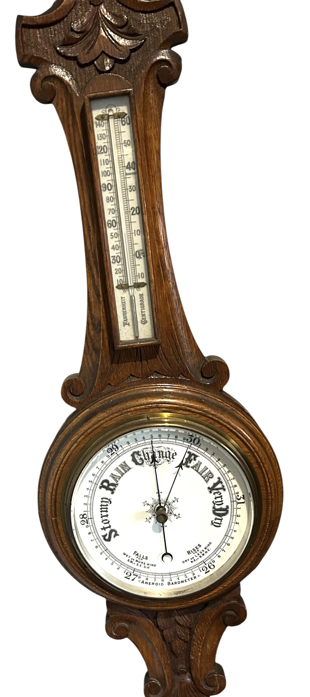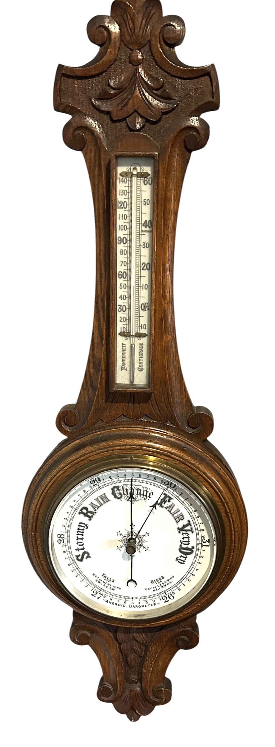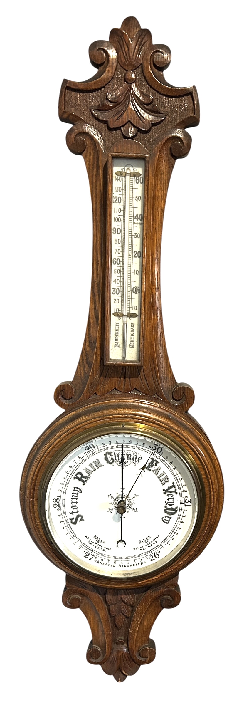 Antique Oak Banjo Barometer Thermometer -ca 1900