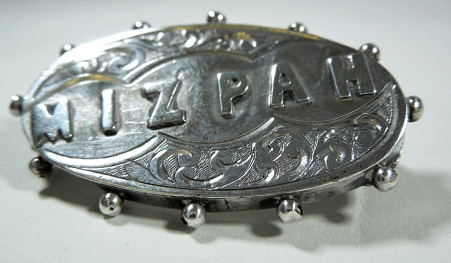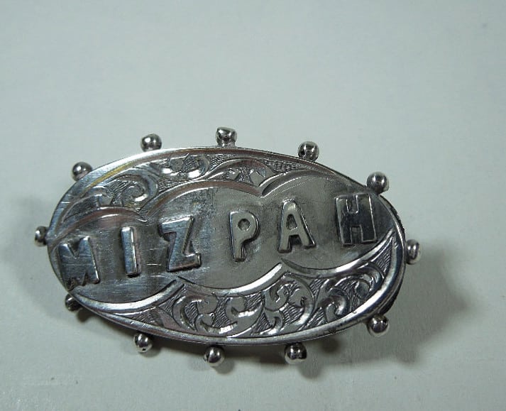 The connotation of the word MIZPAH implied an emotional bond between people who become separated from each other and Mizpah jewellery was worn to emphasize this bond. The interpretation of the word was ”the Lord watch between me and thee when we are absent one from another”.