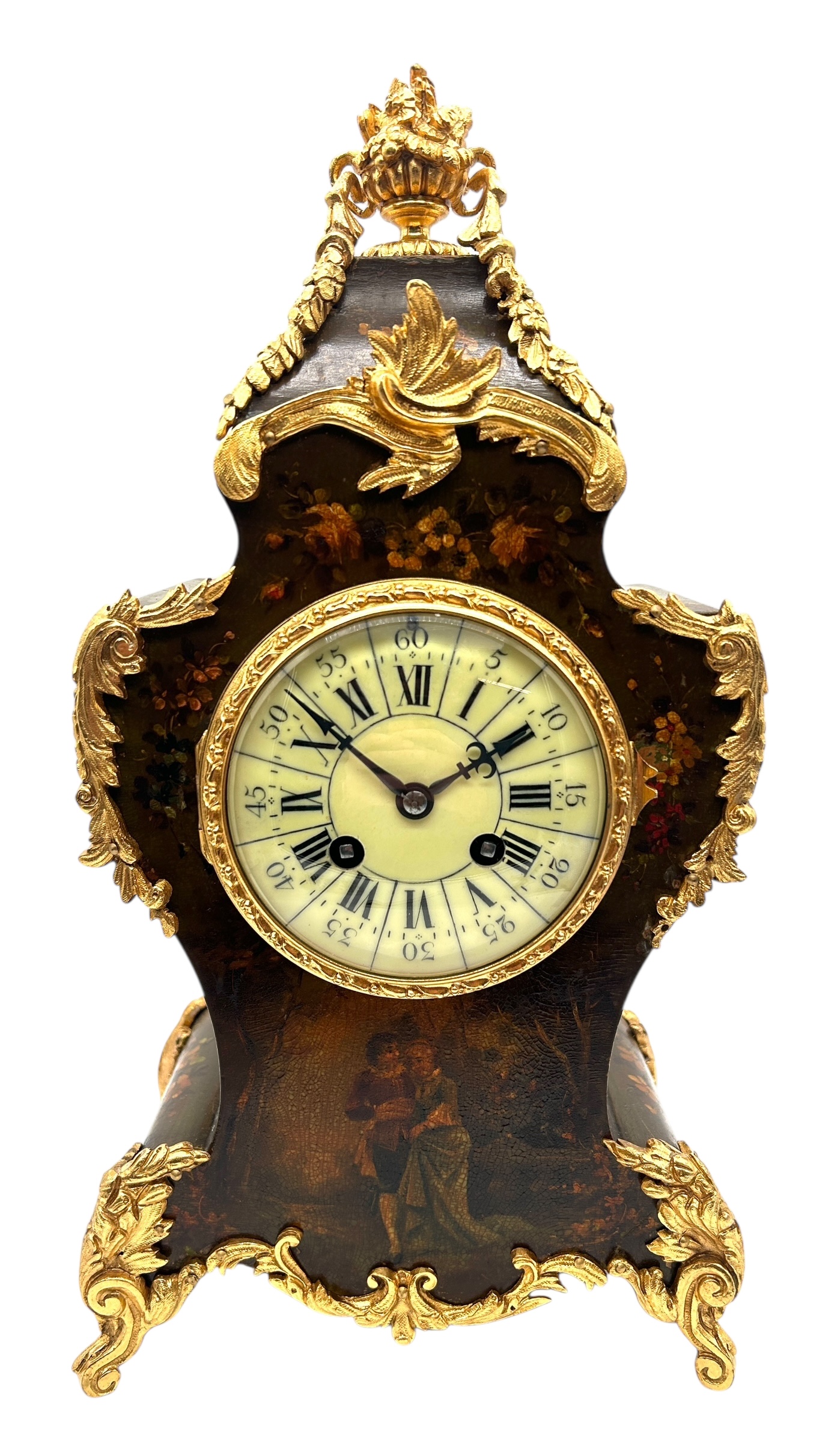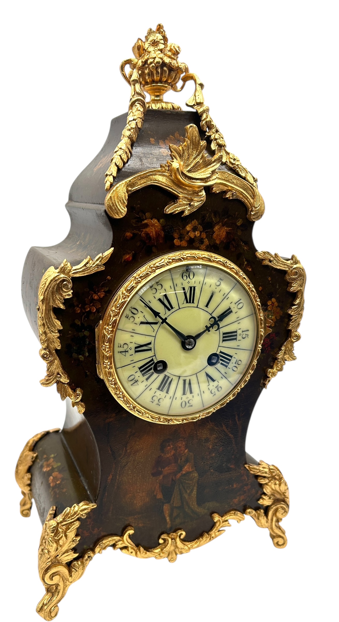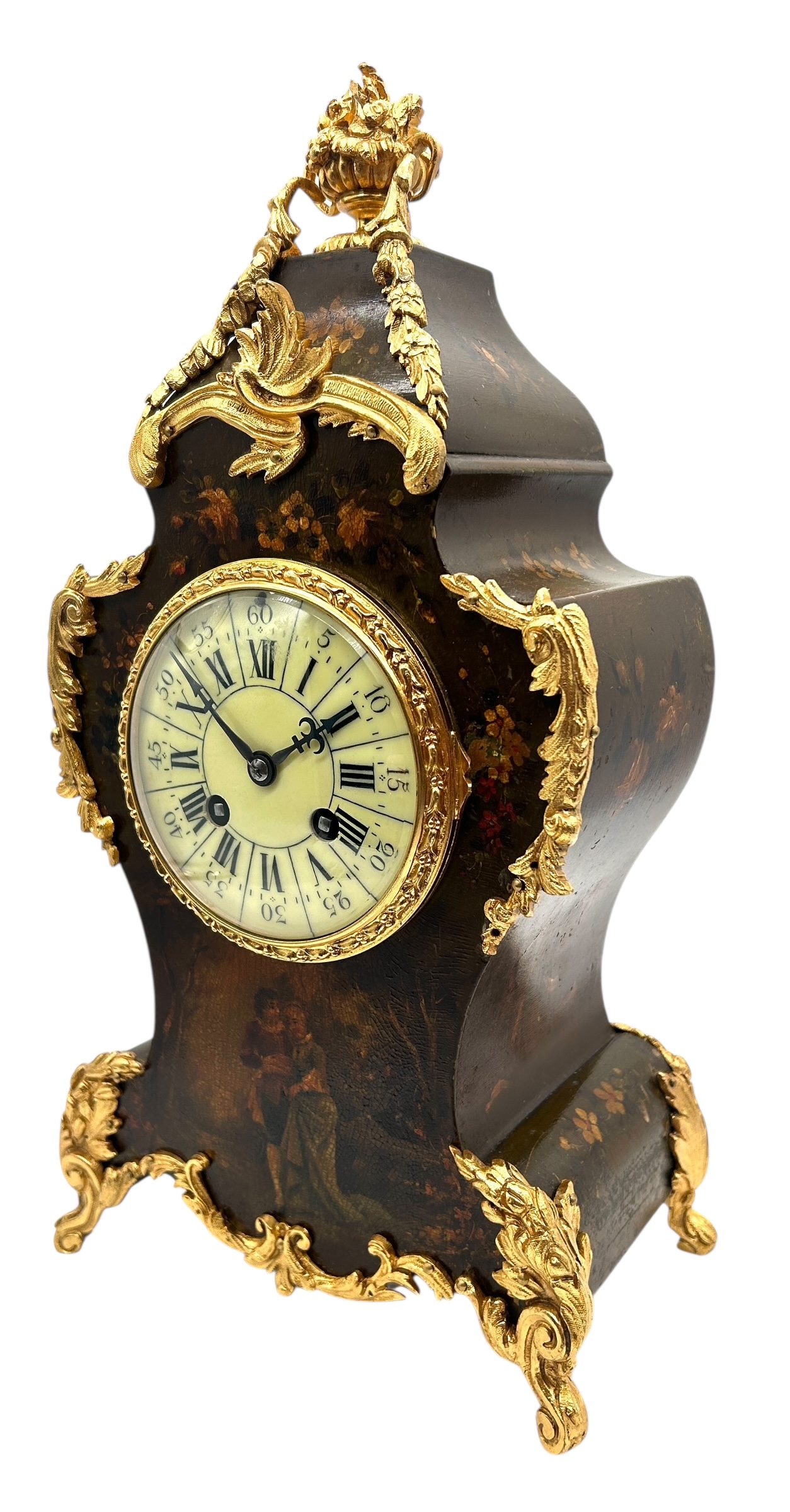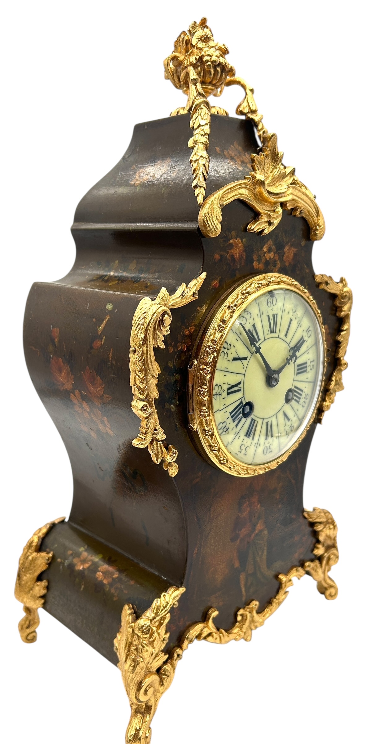 Antique Vernis Martin French Painted Boulle Mantel Clock – Circa 1860