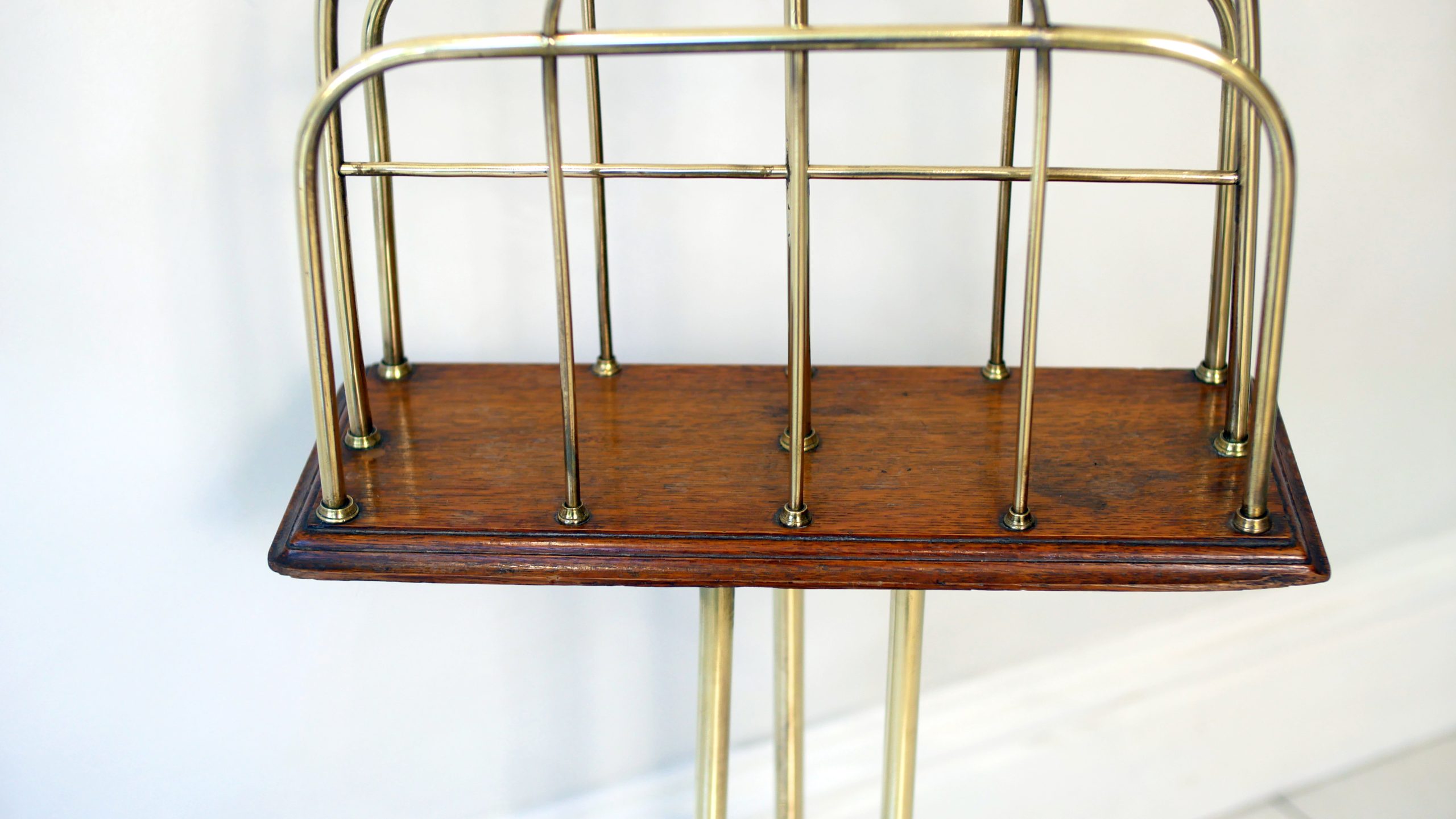 Antique brassware by established makers like Hall is increasingly difficult to source in such original, unrestored condition. This magazine rack offers a rare opportunity to own a piece of functional social history that remains as practical today as it was over a century ago.