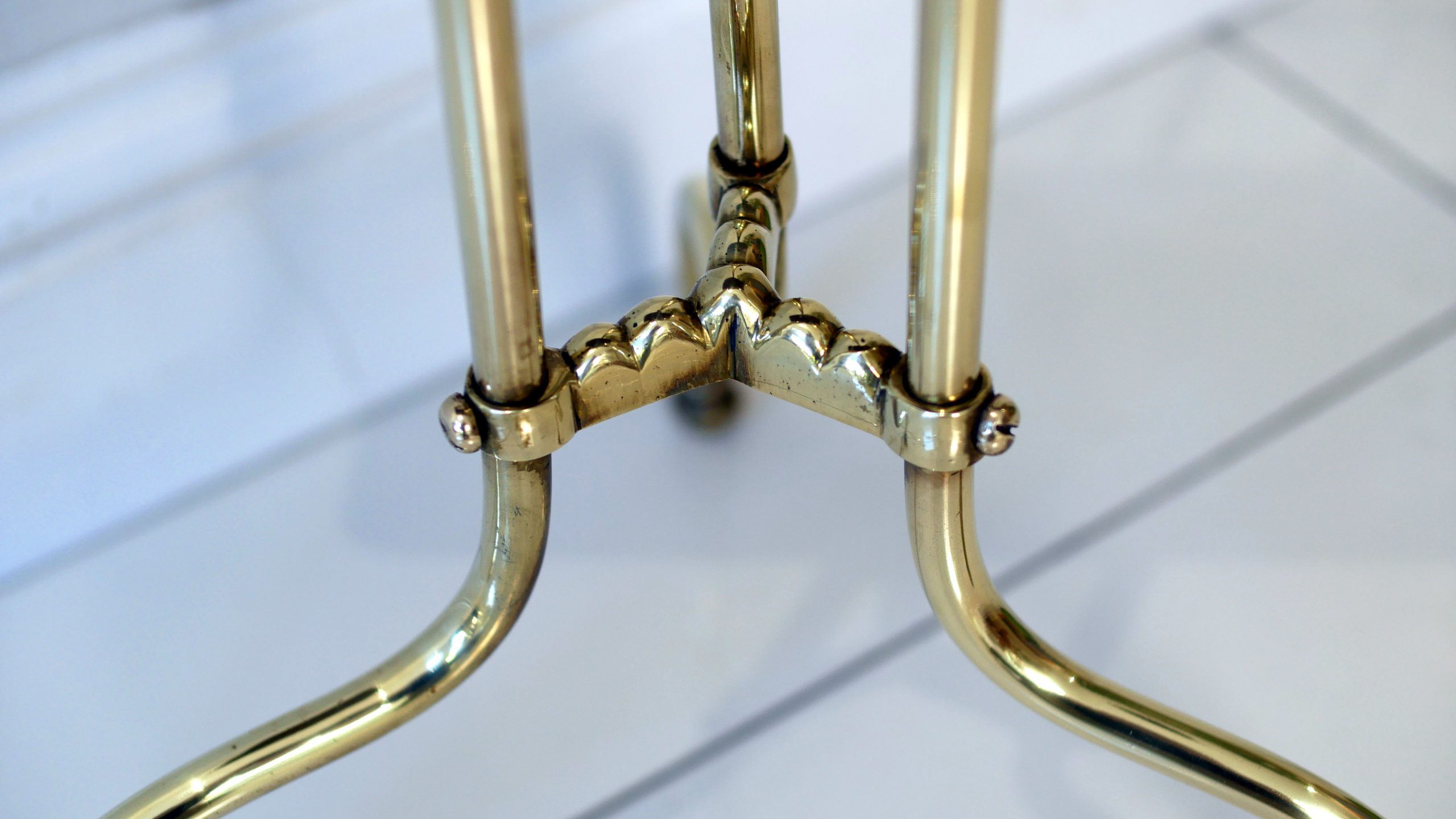 Form: Pedestal-style tripod base with graduated arched dividers.