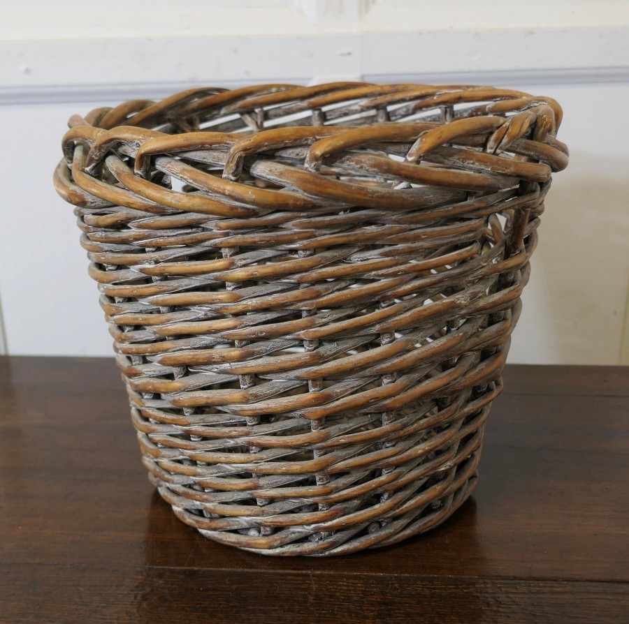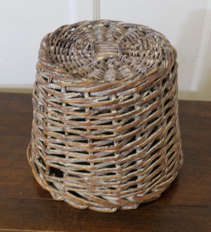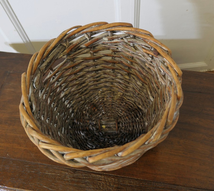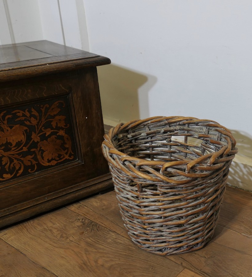 Antique Wicker Waste Paper Basket This is an excellent example and in remarkably good condition for its age, the basket is very clean inside and out would make a good storage piece The basket is 12” tall and 13” in diameter TFB162 Manufacture Date : 19th Century Materials : Willow