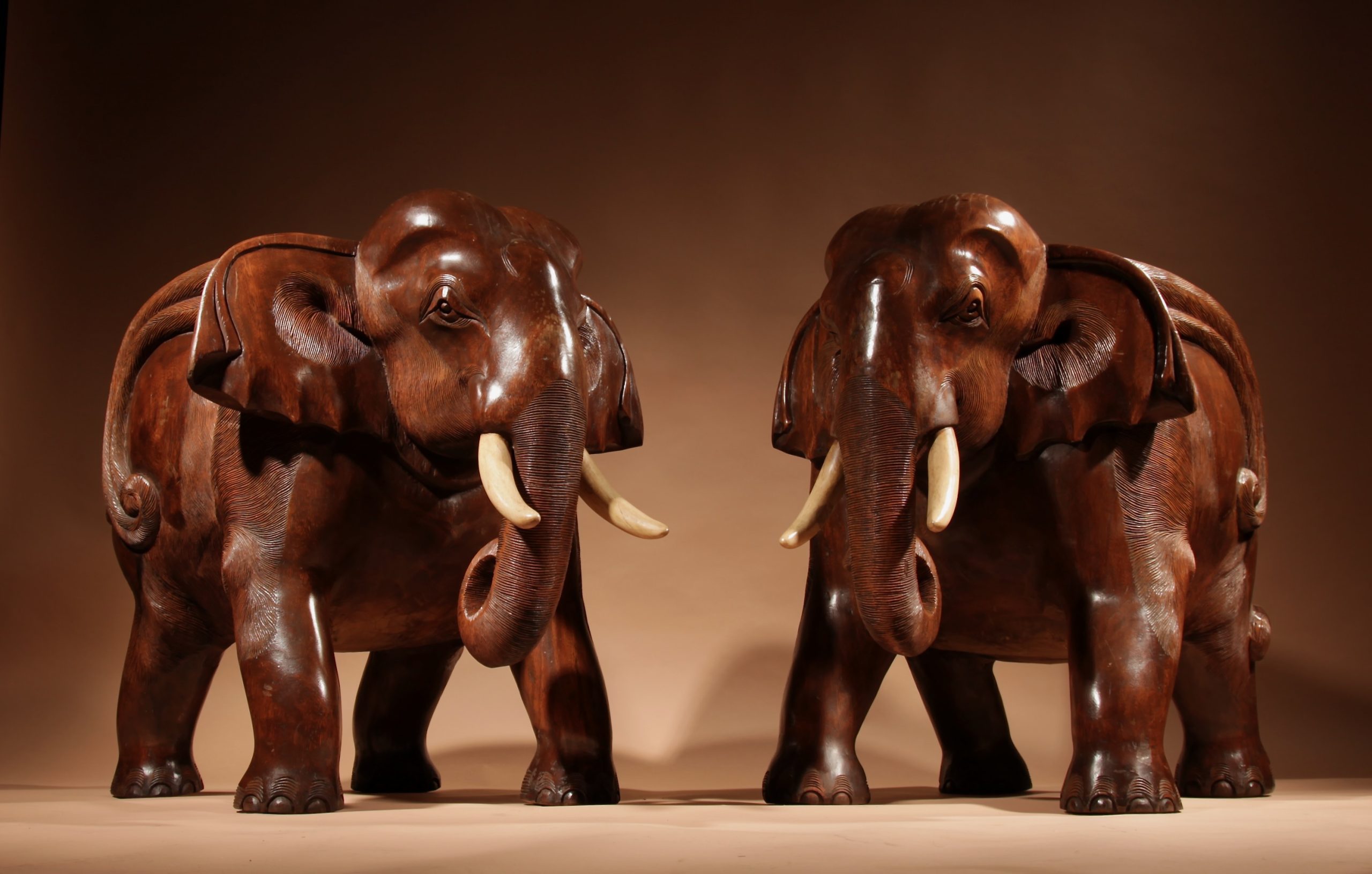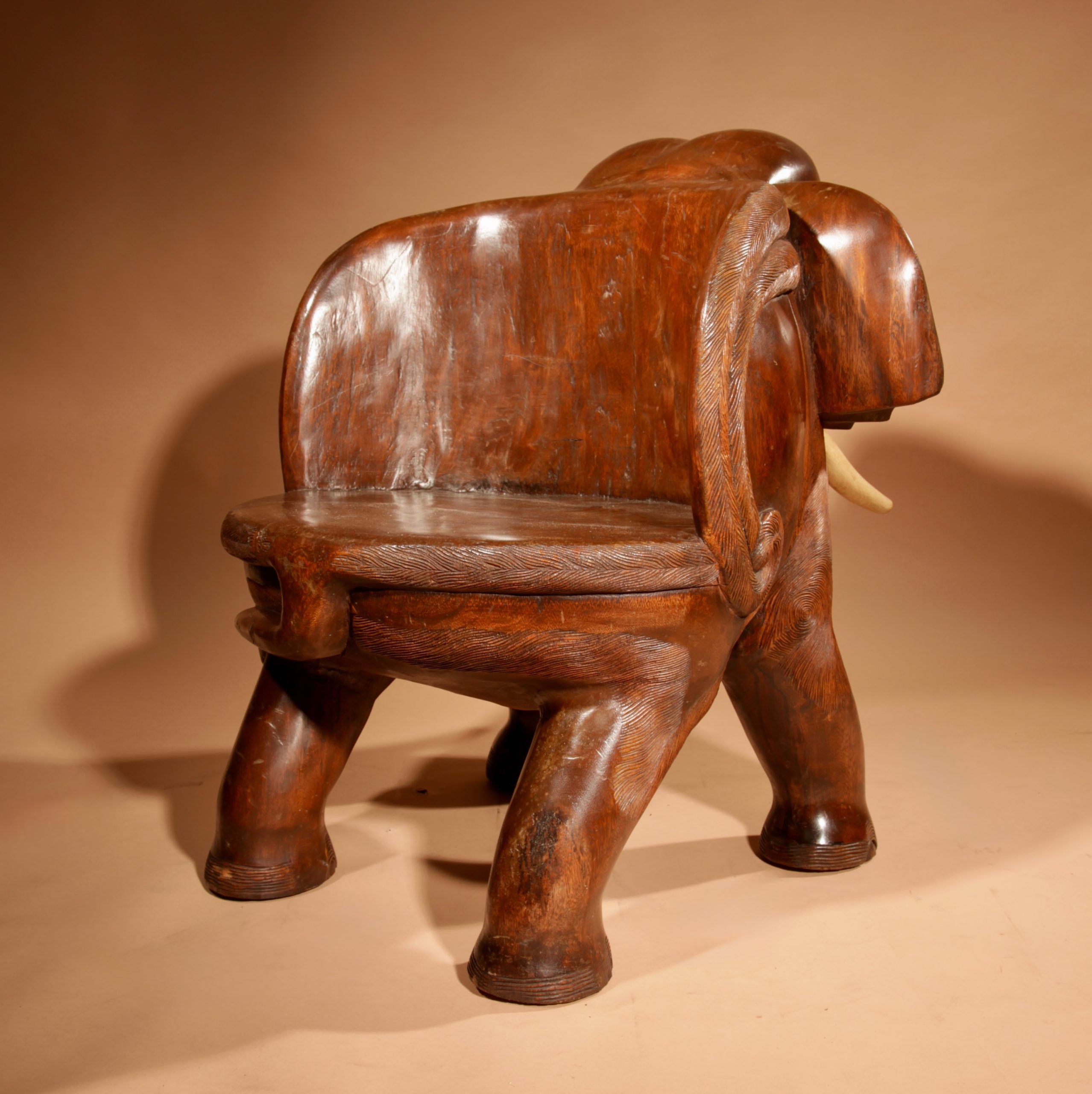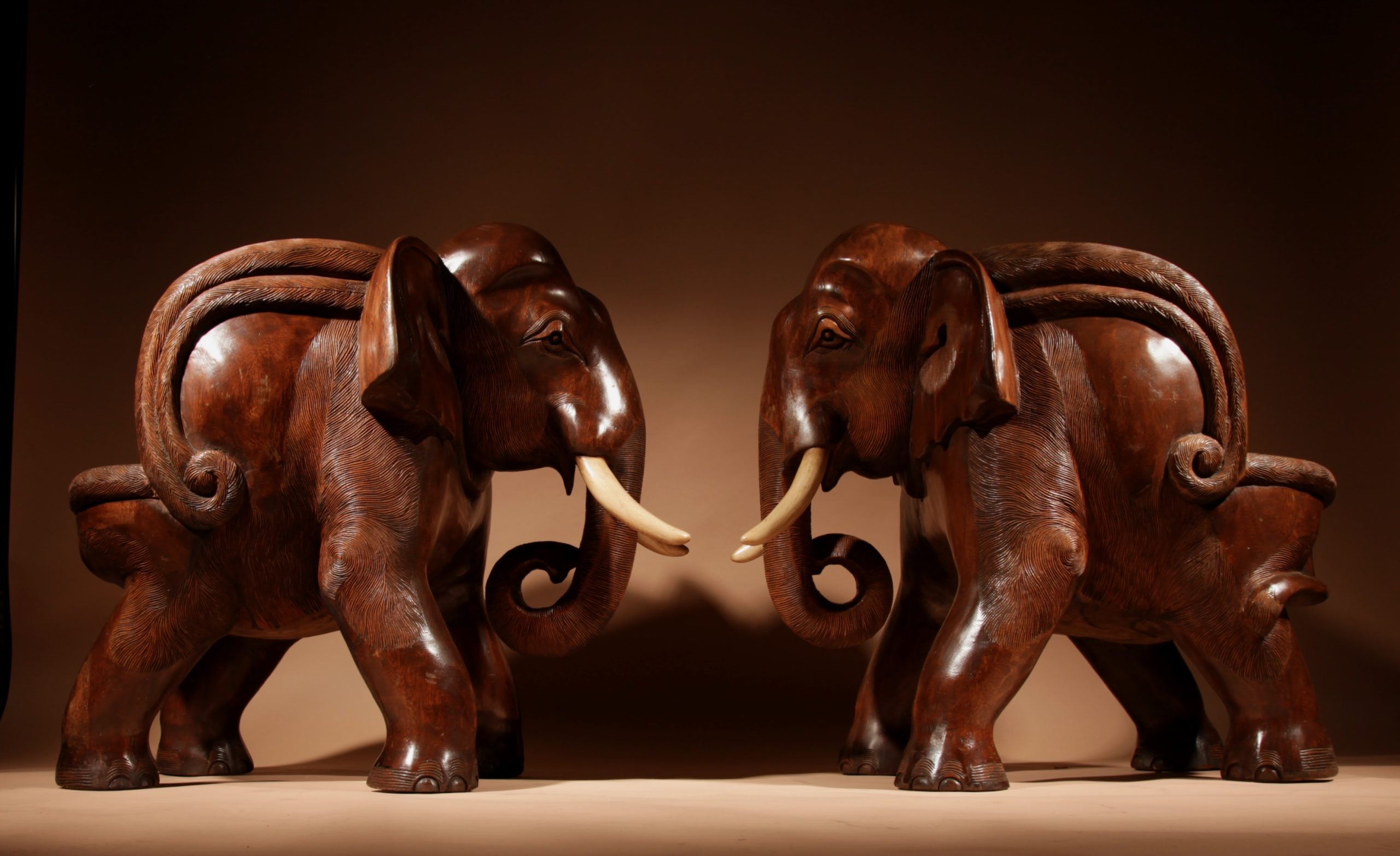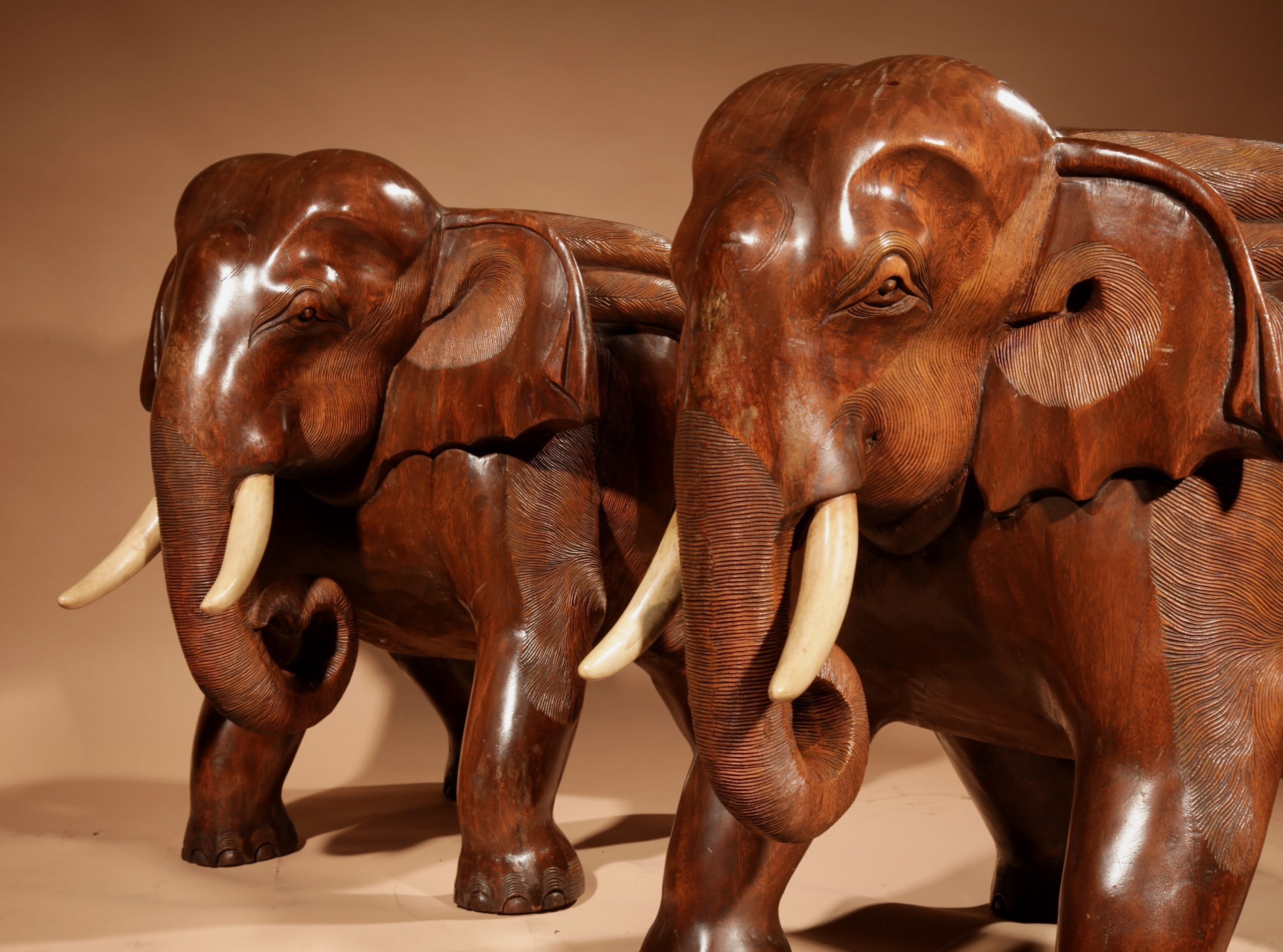 Very finely carved out of one block of hardwood, the tusks carved from a different kind of wood.