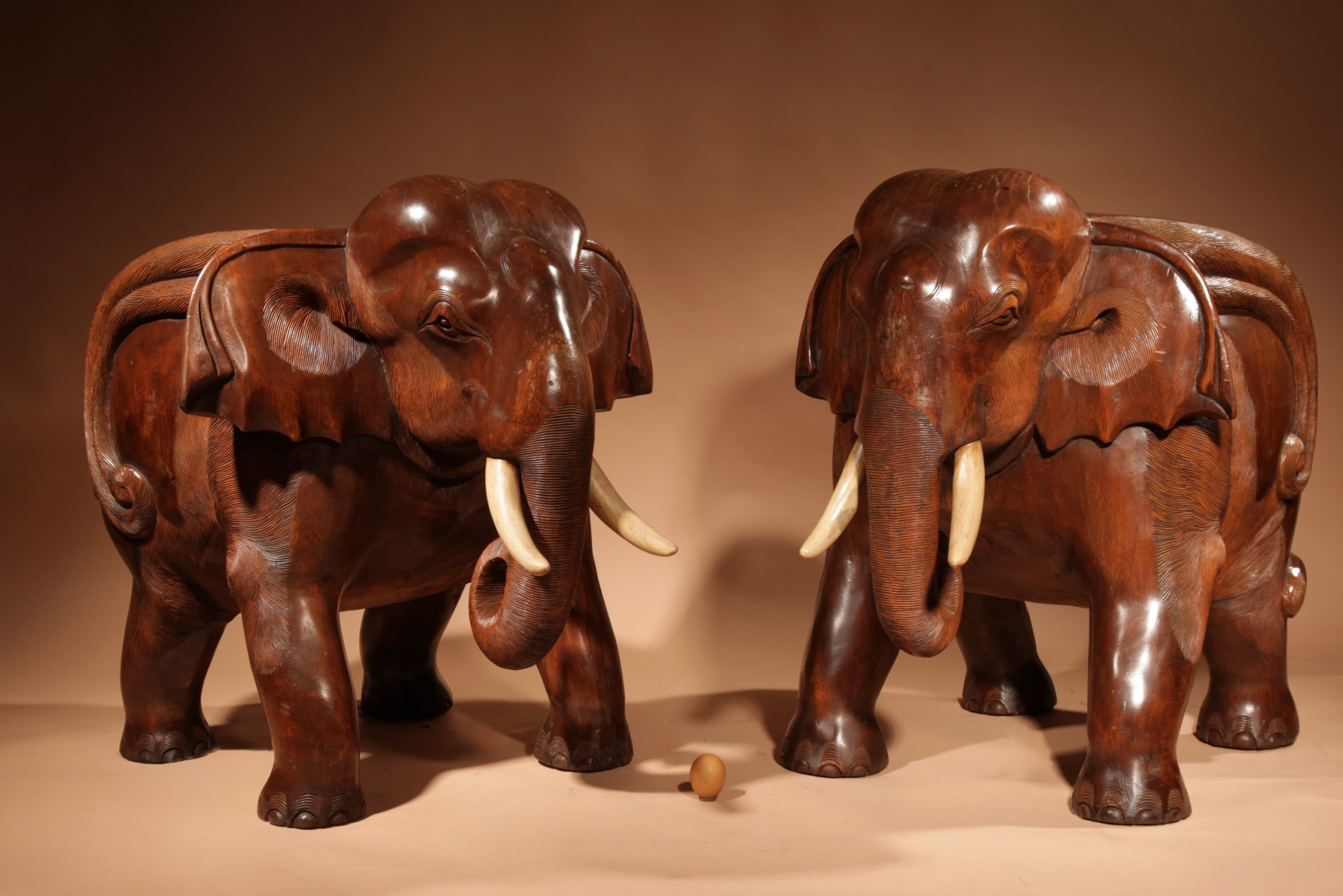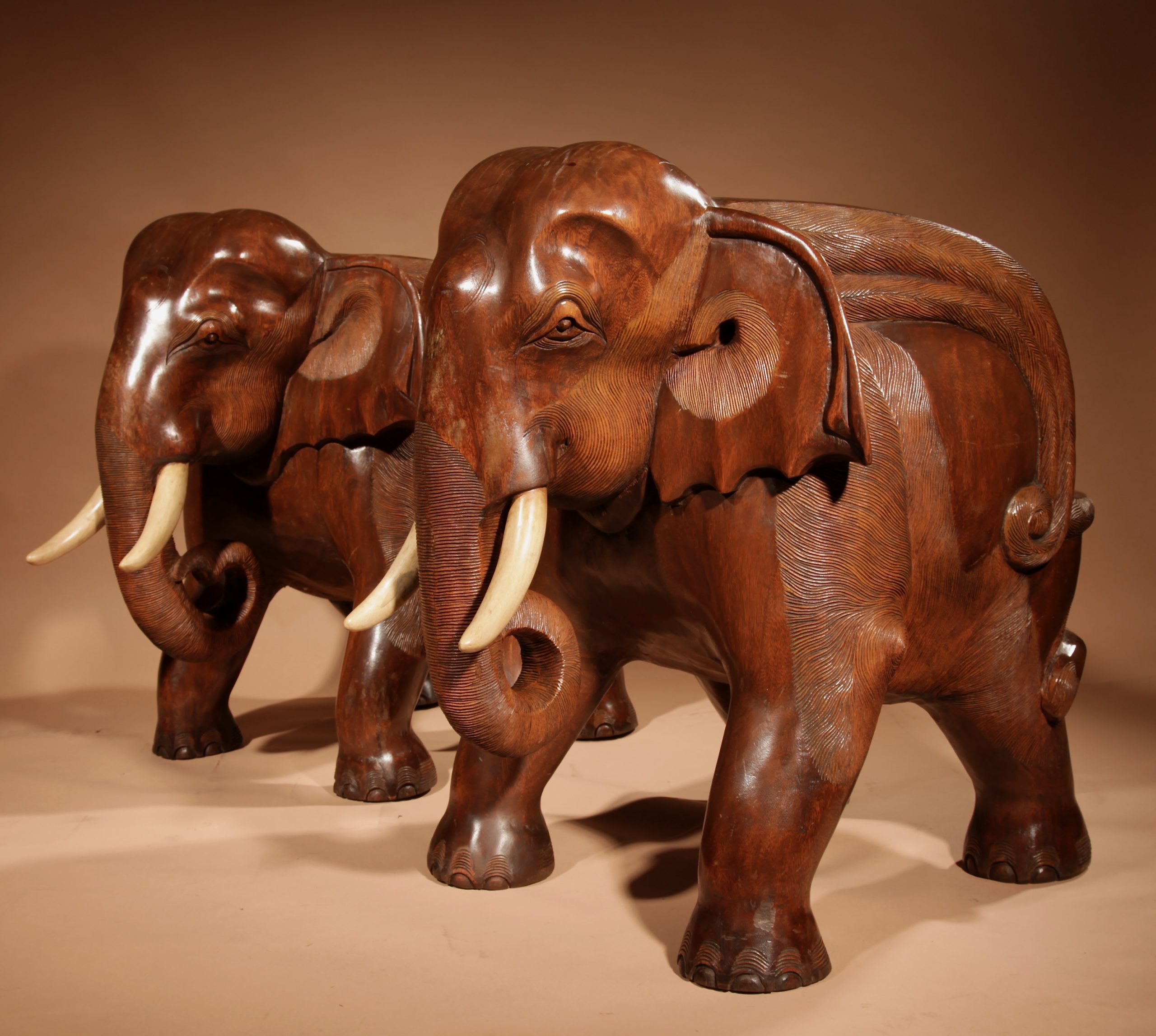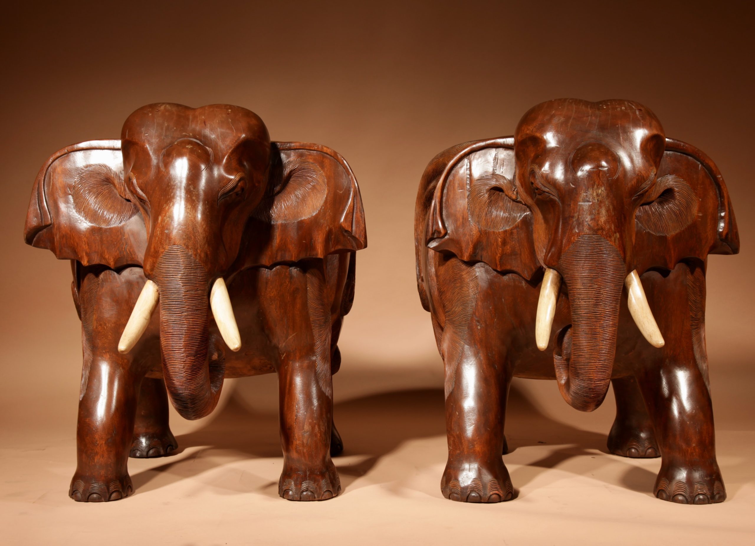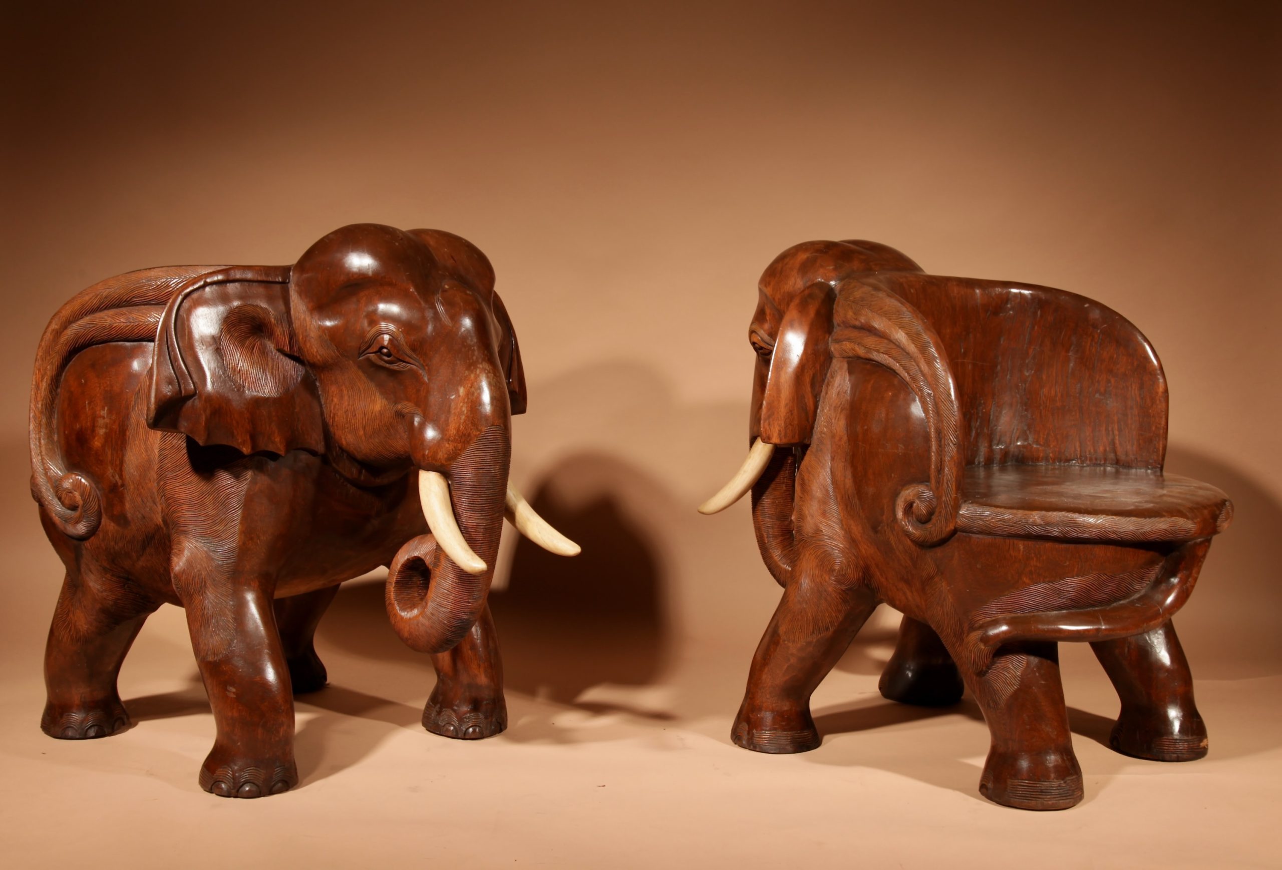 Art Deco Period Dugout Real Pair Of Impressive Elephant Arm Chairs.