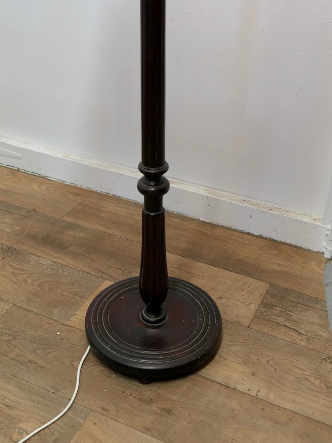 Art Deco Standard or Floor Lamp This is an attractive piece, the round base of the lamp supports a turned upright The lamp is in good condition, working and is shown with a lampshade, this can be included if requested The lamp is 55” tall and the base is 13” in diameter SW328 Manufacture Date : 1930 Materials : Sapele-wood