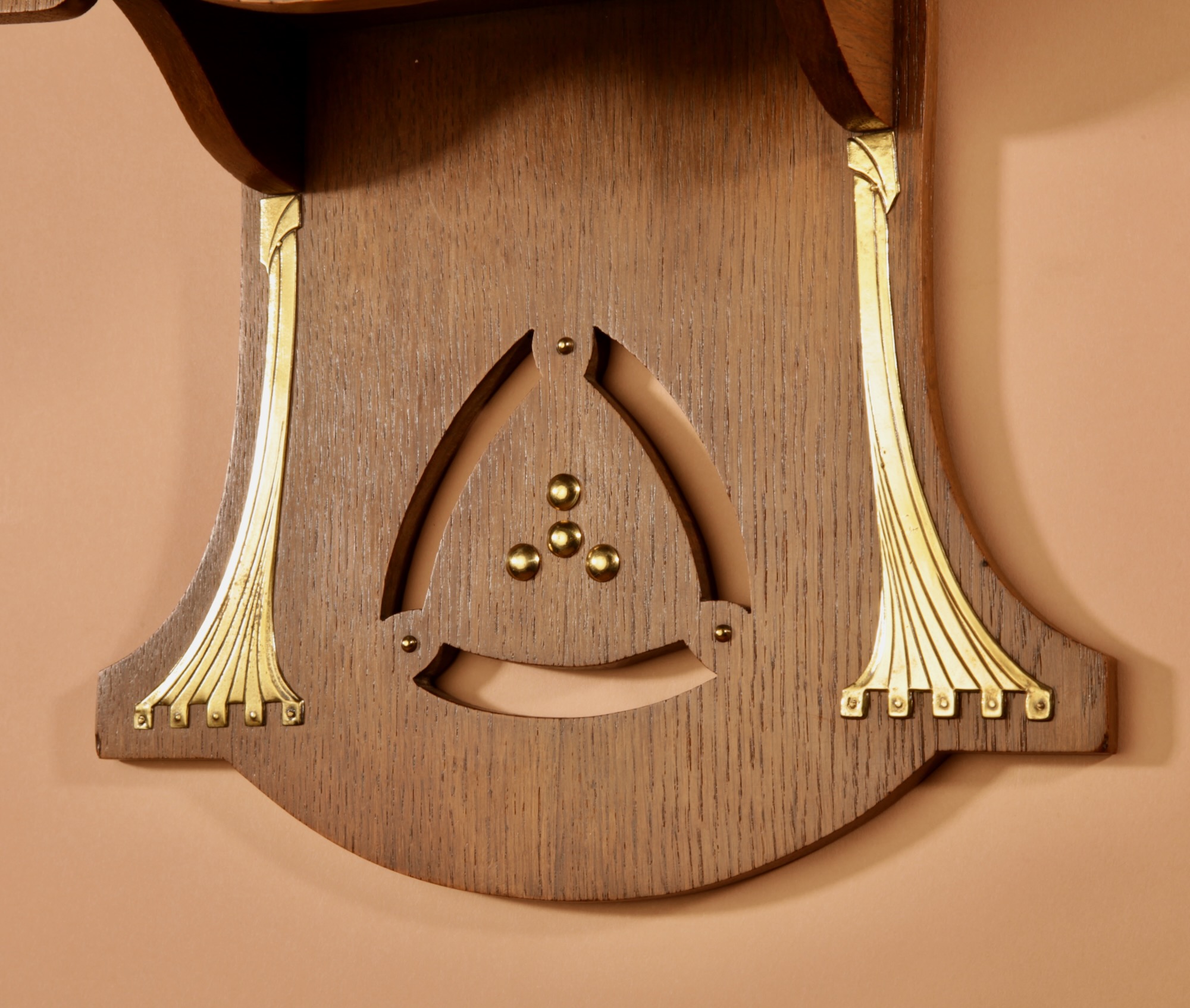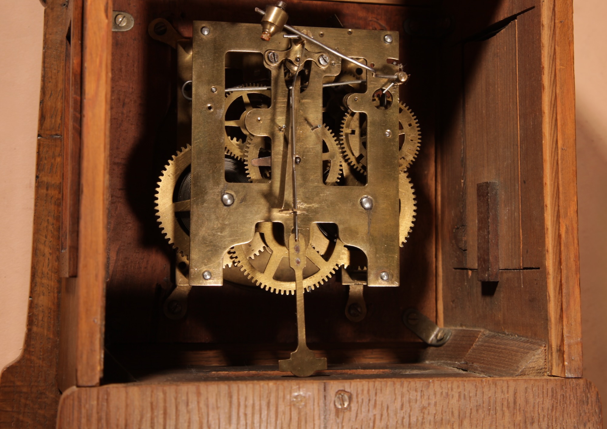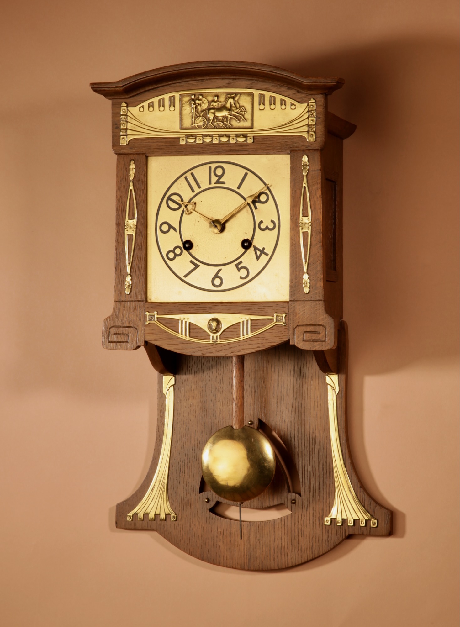 Art Nouveau Philipp Haas Black Forest Very Stylish Blond Oak Wall Clock Circa 1900.