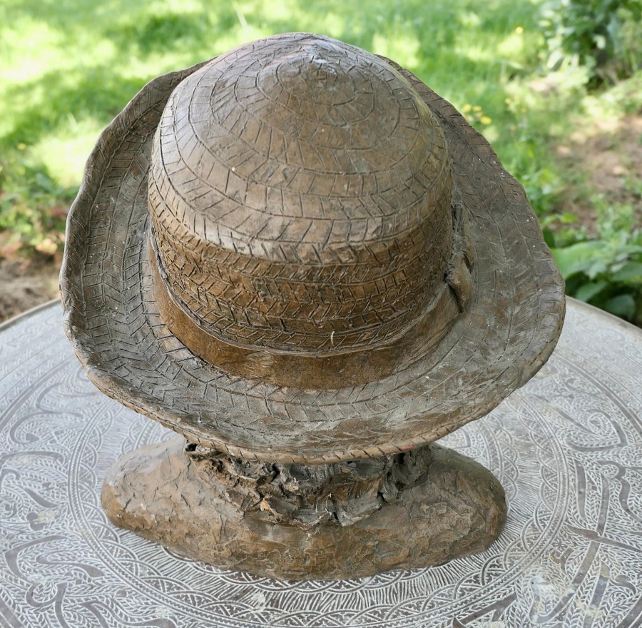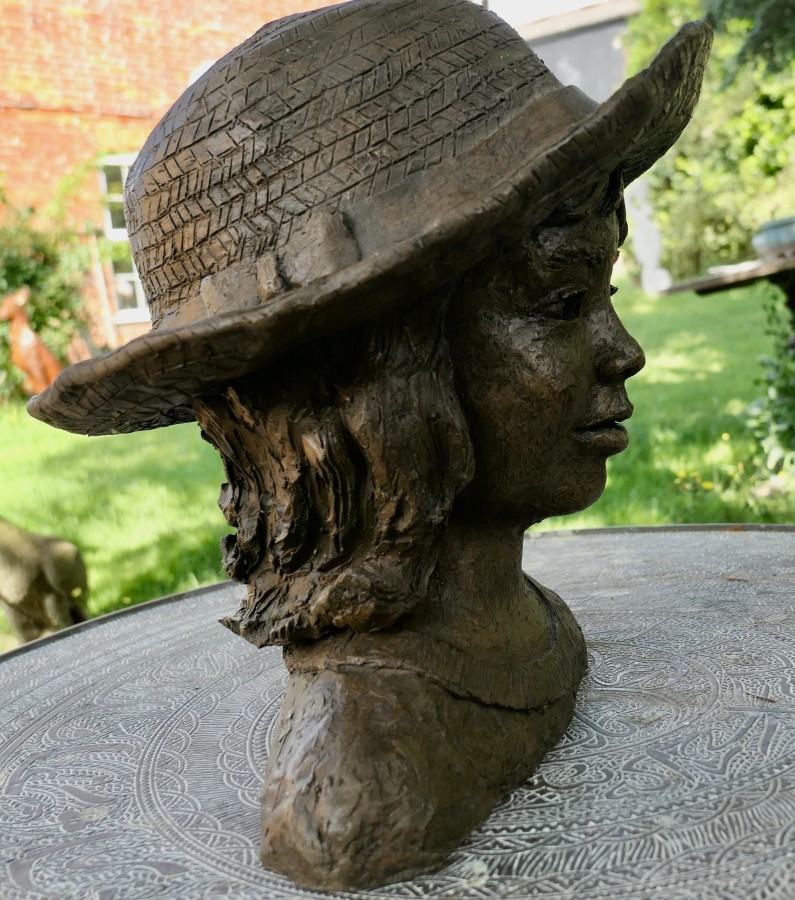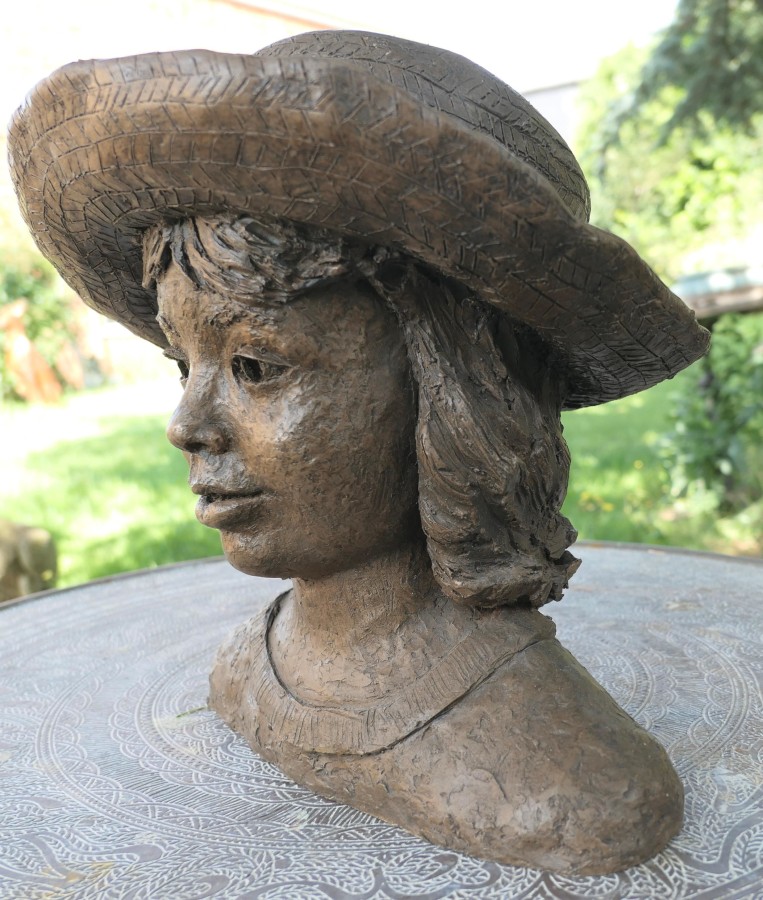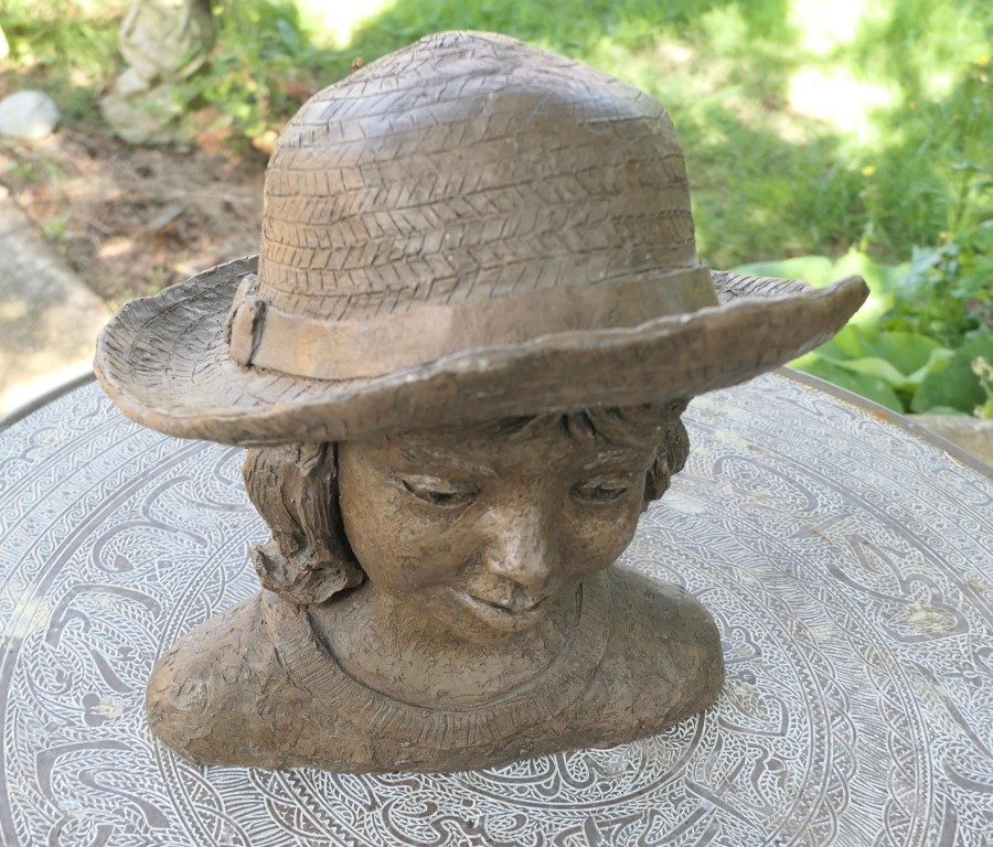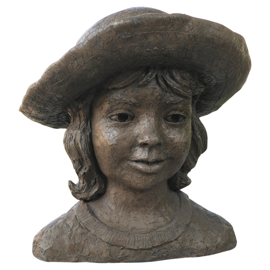 Artist’s Model Bust of a Young Girl in a Panama Hat, not signed This is a very attractive hand made piece dating from the middle of the 20th Century, it was discovered in an Art Studio during refurbishment It is a three dimensional head and shoulders made in clay with a bronzed finish The piece is 11” high, and 11” across and wide SW37 Manufacture Date : 1960 Materials : Clay