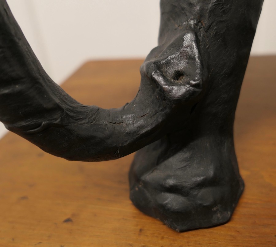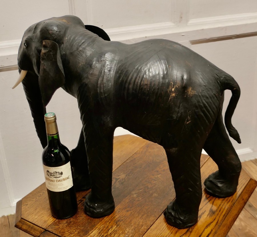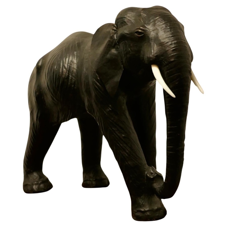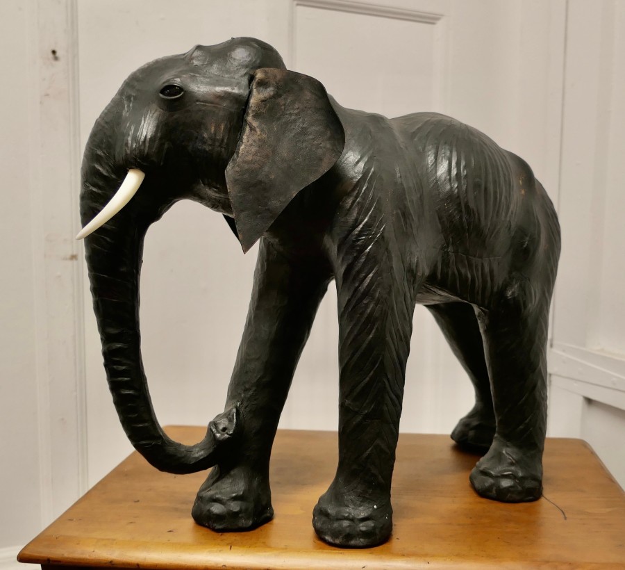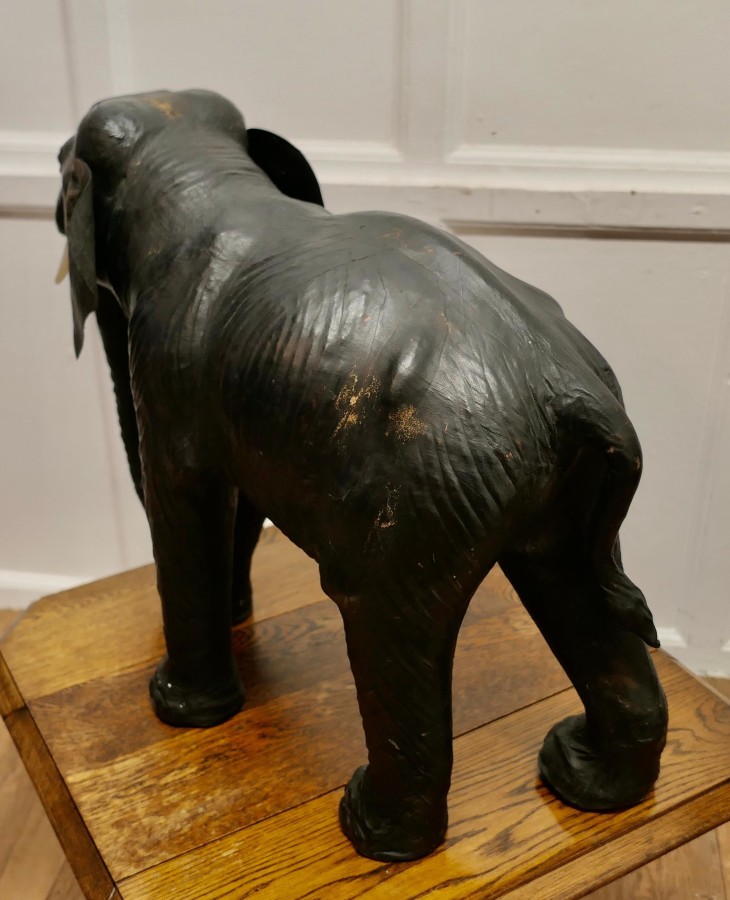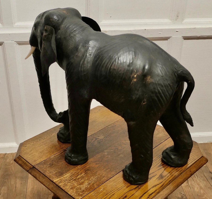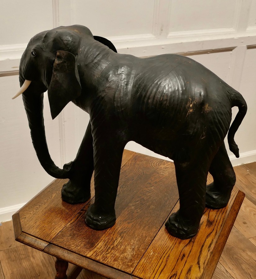 Arts and Crafts Leather Model of a Bull Elephant This is a beautiful find from the early part of the 20th Century, it was made for Liberty and is known as “ The Bull Elephant ” This handsome beast is free standing, he is made in Leather, the tusks are not made in Ivory they have been replaced with a “look alike” material The main body’s condition is entirely original This lovely piece is in good all round condition The Handsome Bull is 20” high, 24” long and 11” wide TSC172 Manufacture Date : 1930 Materials : Leather