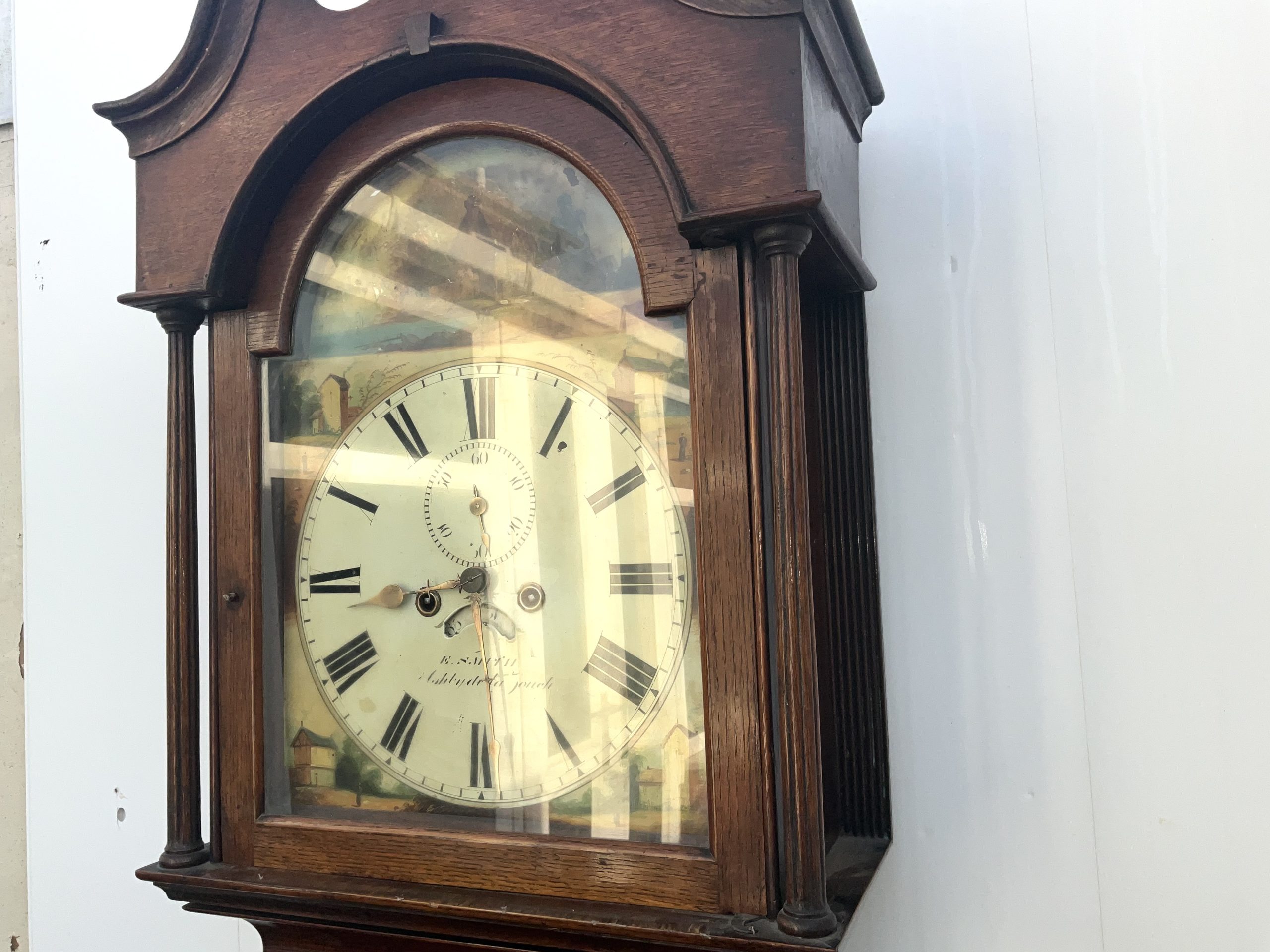 Ashby-de-la-Zouch clock. Ashby, is a market town and civil parish in the North West Leicestershire district of Leicestershire, England, borders Derbyshire and Staffordshire. Movements been fully restored, nice quality oak and mahogany case in good condition, standing 88 inches tall width at base 21 inches depth 24 inches dials 13 inches comes with weights pendulum and key, offering free UK Delivery with set up. Tel: +44 7505 165 843 We accept online payments for all our items listed: Bank transfer cash on collection or if wishing over the phone using your debit or credit cards, also doing layby payments plan, or email giving your address details & contact number and we shall send you your items invoice to make payment with your card. Send your request to – john.strong2@gmail.com