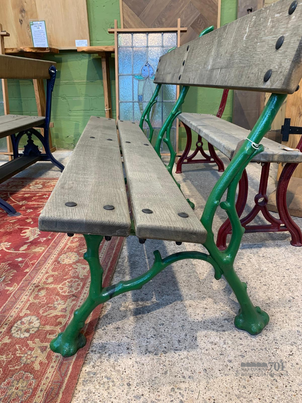 This authentic cast-iron bench features the highly sought-after ‘branch’ pattern, a wonderfully decorative design that mimics the natural form of intertwined limbs and foliage. Its sculptural backrest and supports create a striking silhouette, combining Victorian-era artistry with the strength and durability of traditional foundry work. The generously curved seat and gracefully shaped legs give it both presence and practicality, making it as pleasing to use as it is to admire. Ideal for a garden, courtyard or period setting, this impressive bench offers a blend of character, craftsmanship and enduring charm that only genuine cast iron can provide.