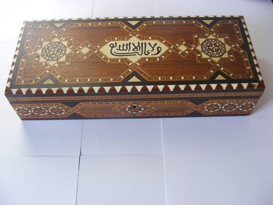 As a sign of quality, the interior of the lid has also been inlaid with an intricate geometric design.