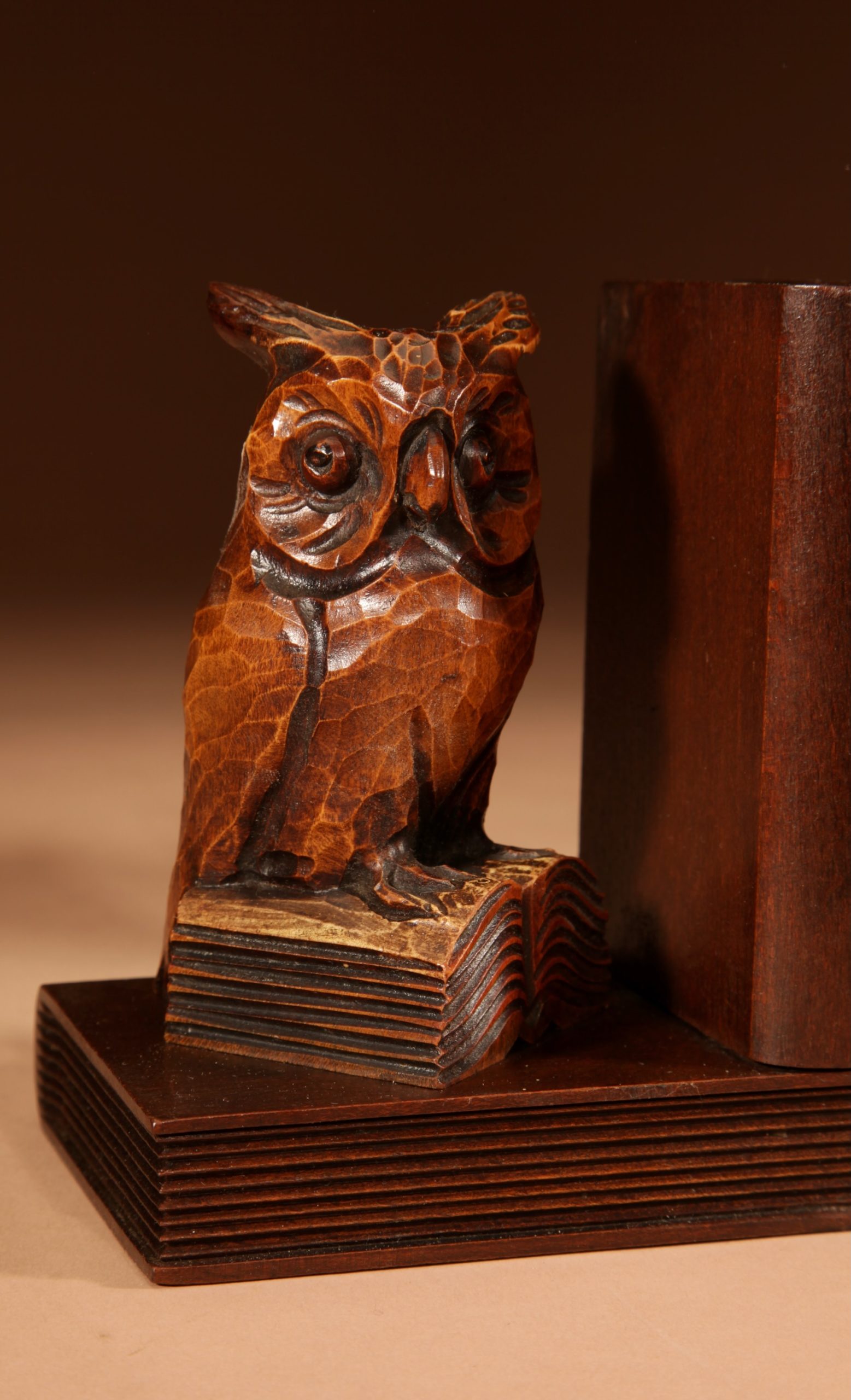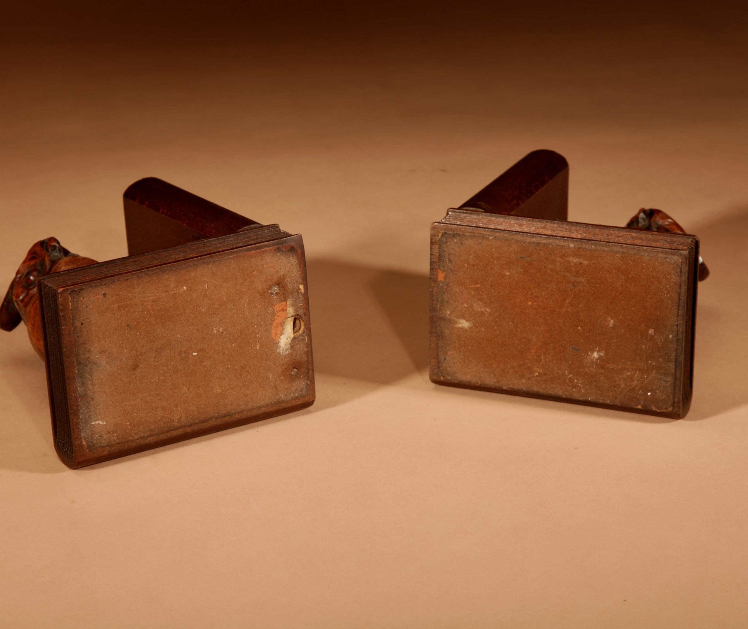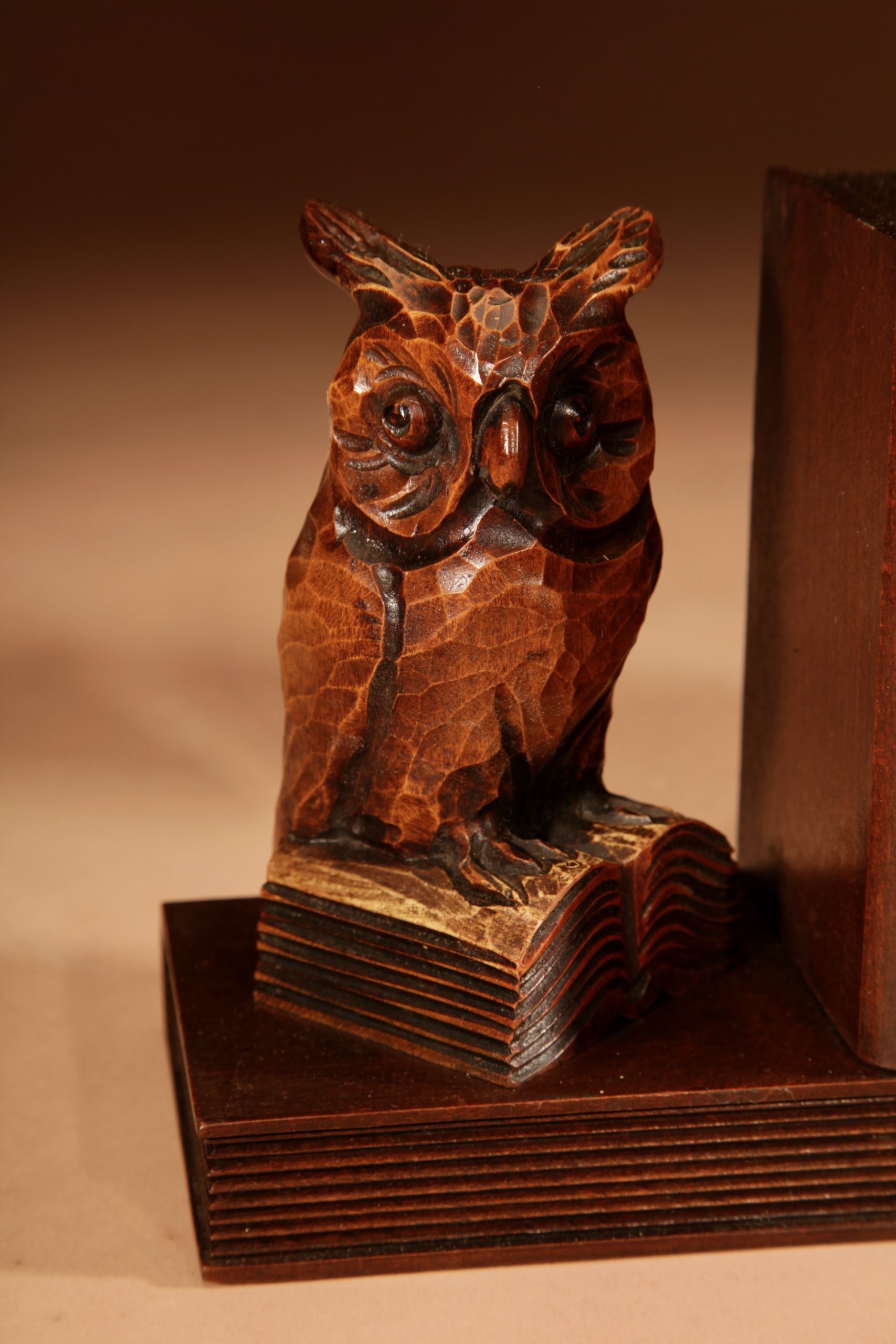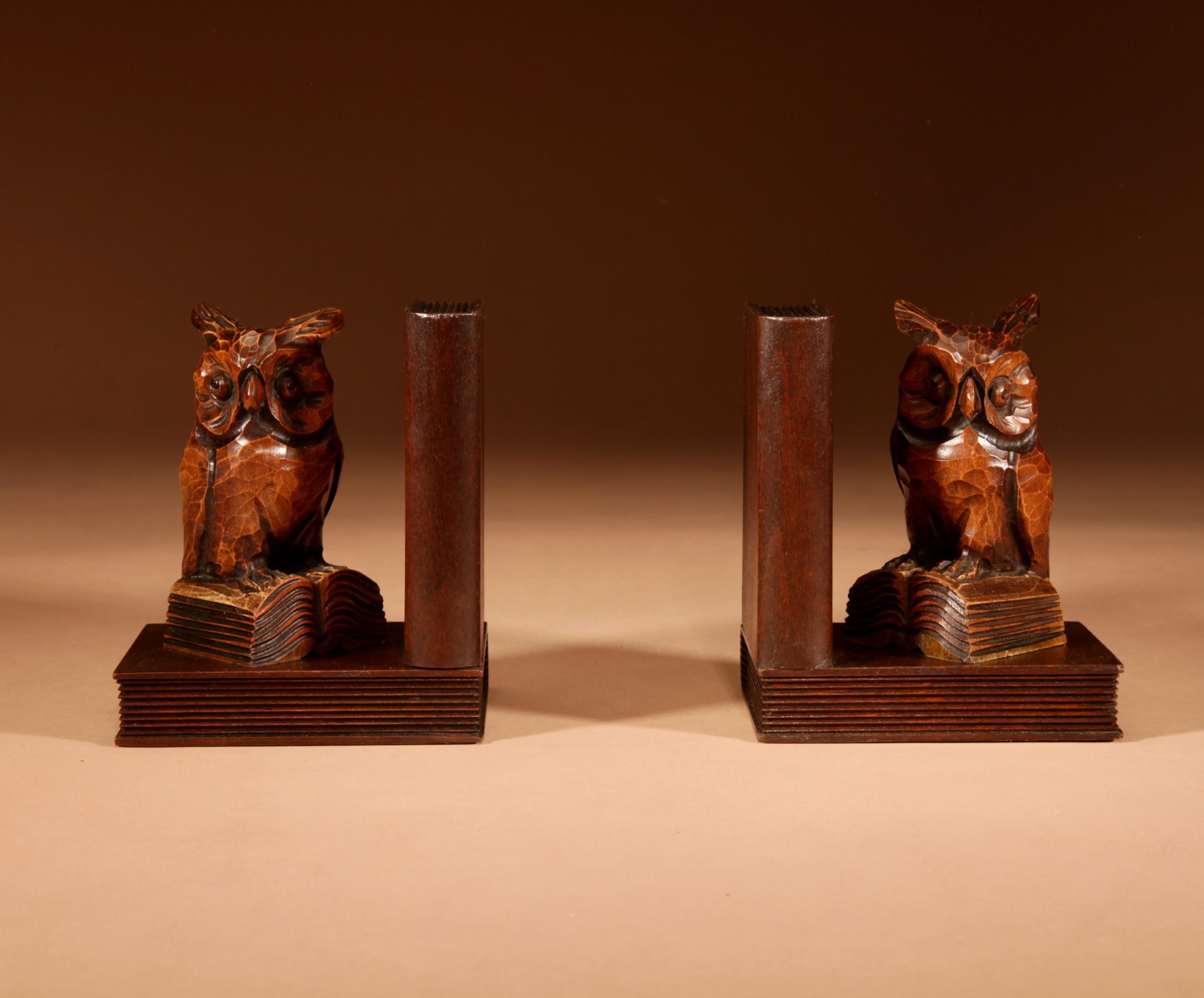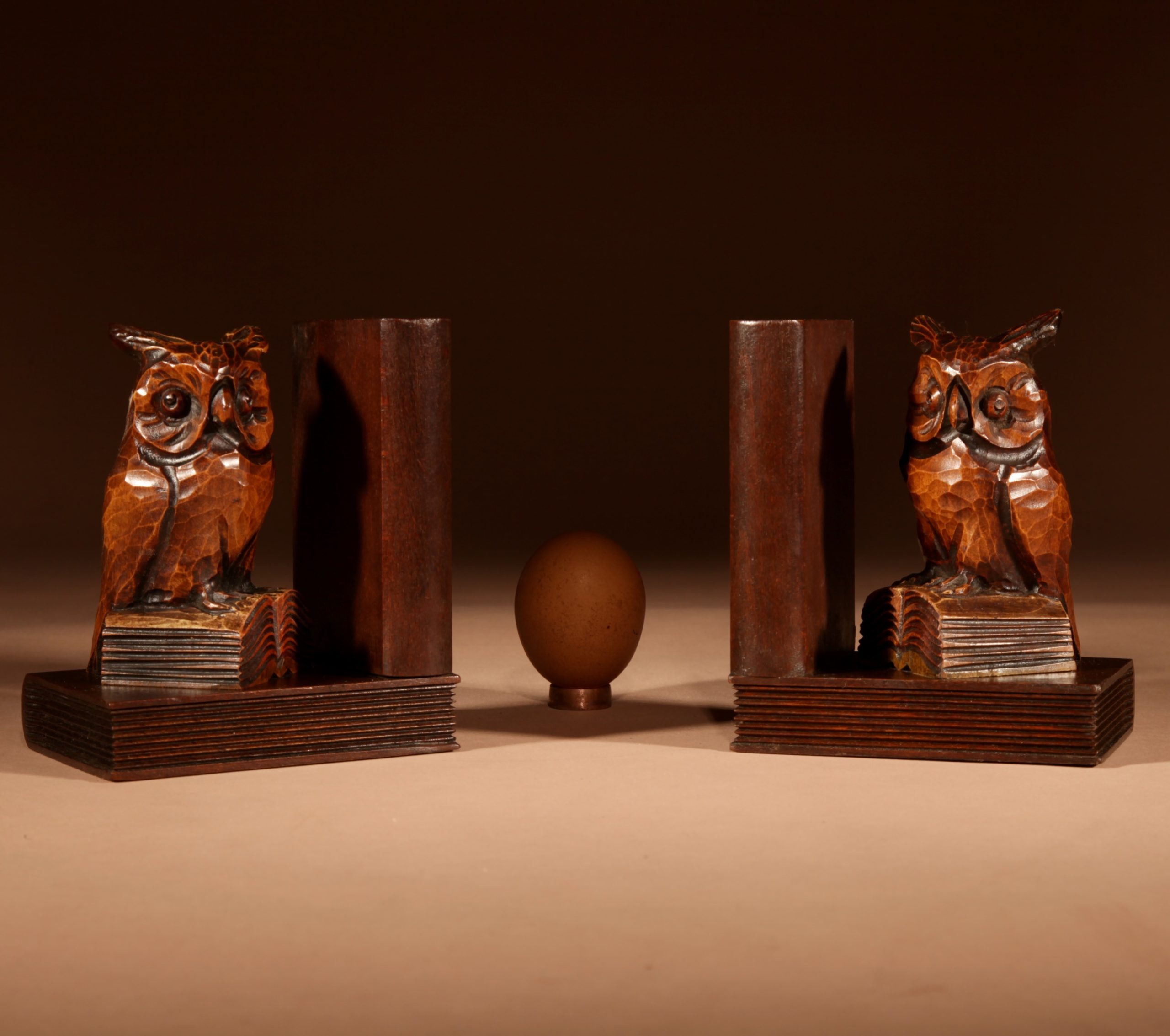 Black Forest Amusing Pair Of Owl Carved Bookends Circa 1900-20.