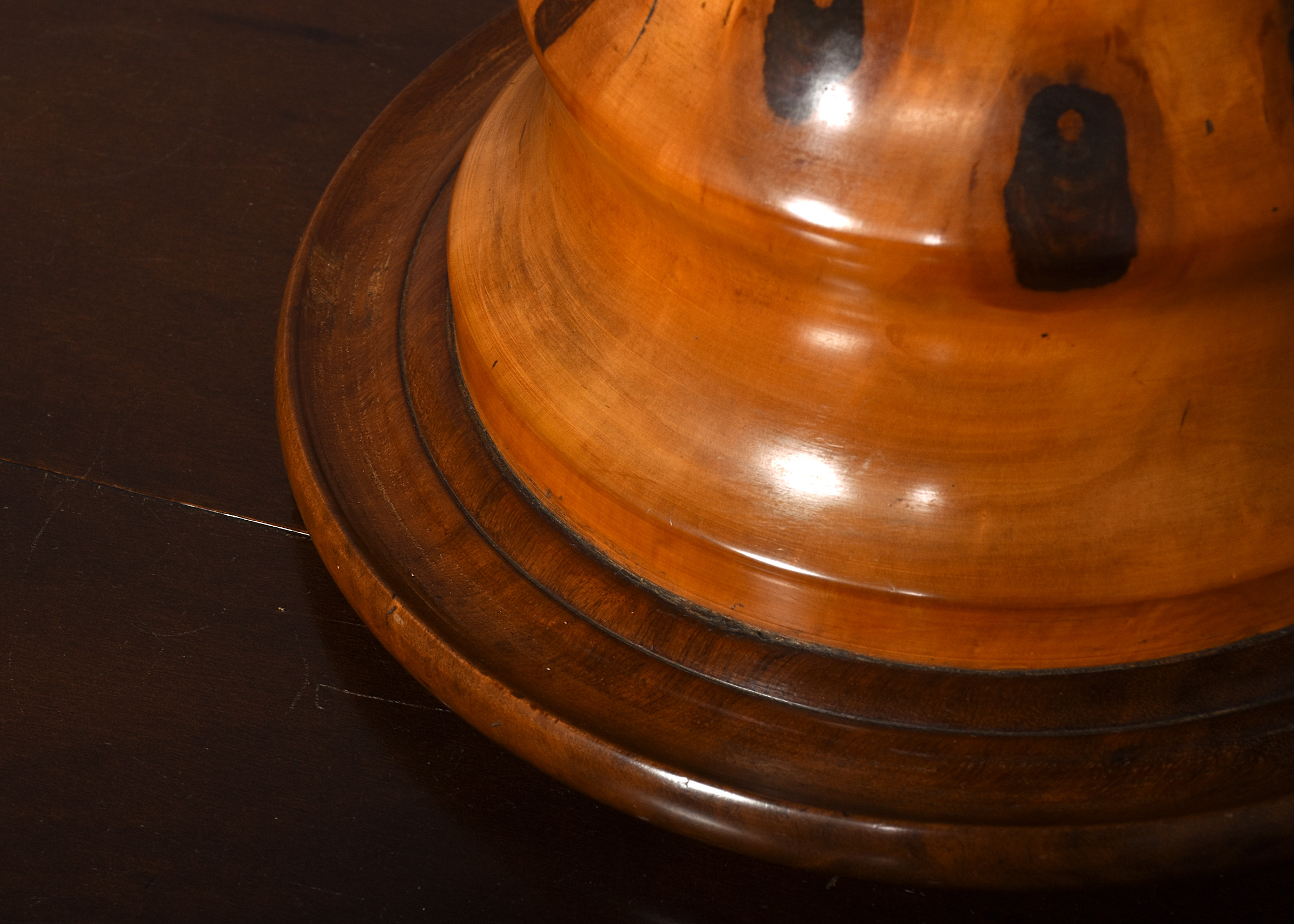 Circa 1920s. A rare and unusual Brazilian monkey puzzle tree wood two-part table lamp, the domed top with wonderful panels resembling oysters, with the shade held in place by wooden arms, resting on a stylish tapering stem finishing with a flared rim.