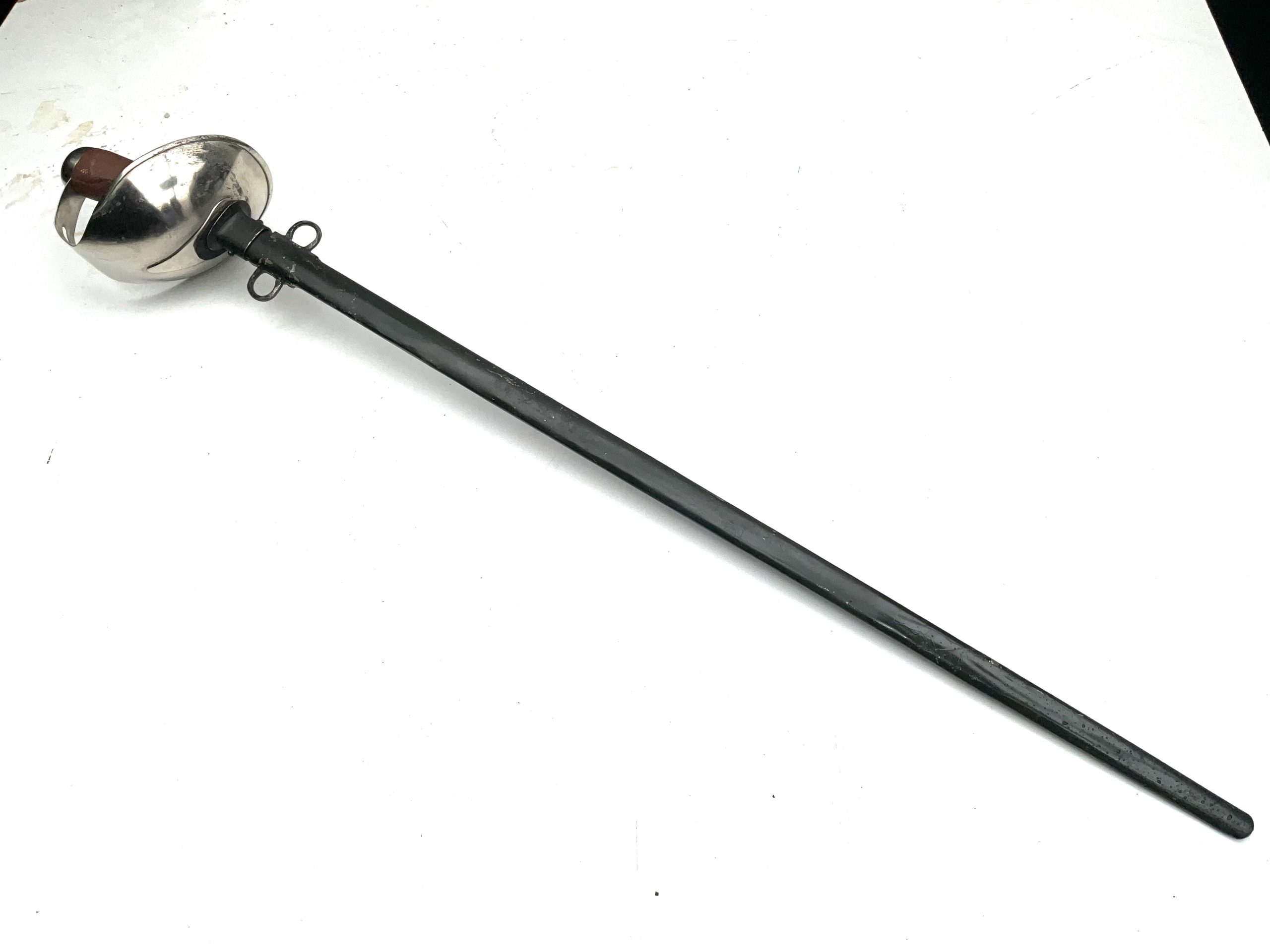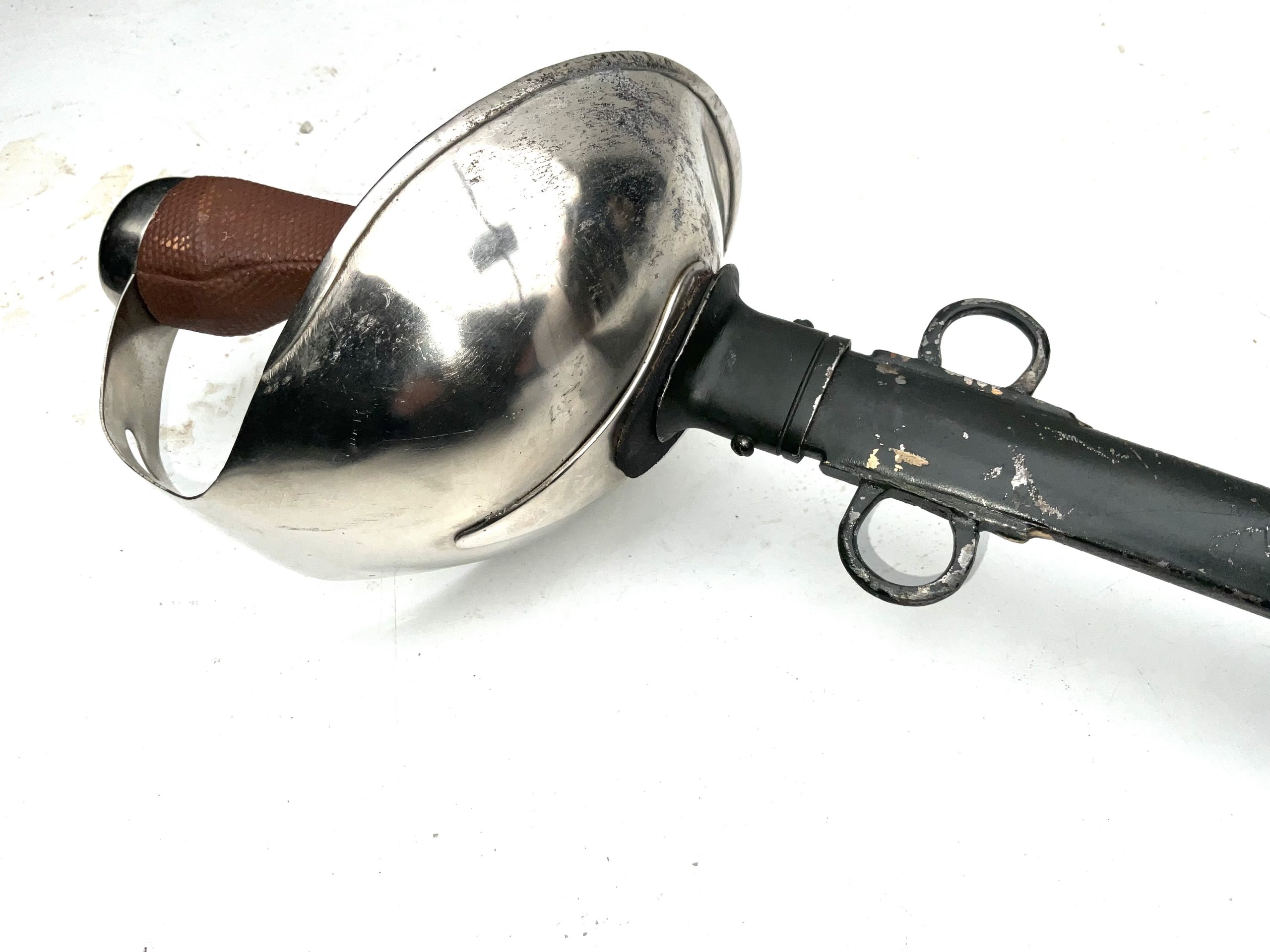 The 1908 Pattern Cavalry Trooper’s Sword was the last service sword issued to the cavalry of the British Army. It is widely considered the most effective cavalry sword ever designed, although ironically its introduction occurred as swords finally became obsolete as military weapons. This ones in good clean condition as is scabbard the total length of 114 cm height across guards 18 cm depth being 14 cm, offering free UK delivery, reference DBSD2  Tel: +44 7505 165 843 We accept online payments for all our items listed: Bank transfer cash on collection  or if wishing over the phone using your debit or credit cards, also doing layby payments plan, or email giving your address details & contact number and we shall send you your items invoice to make payment with your card. Send your request to – john.strong2@gmail.com